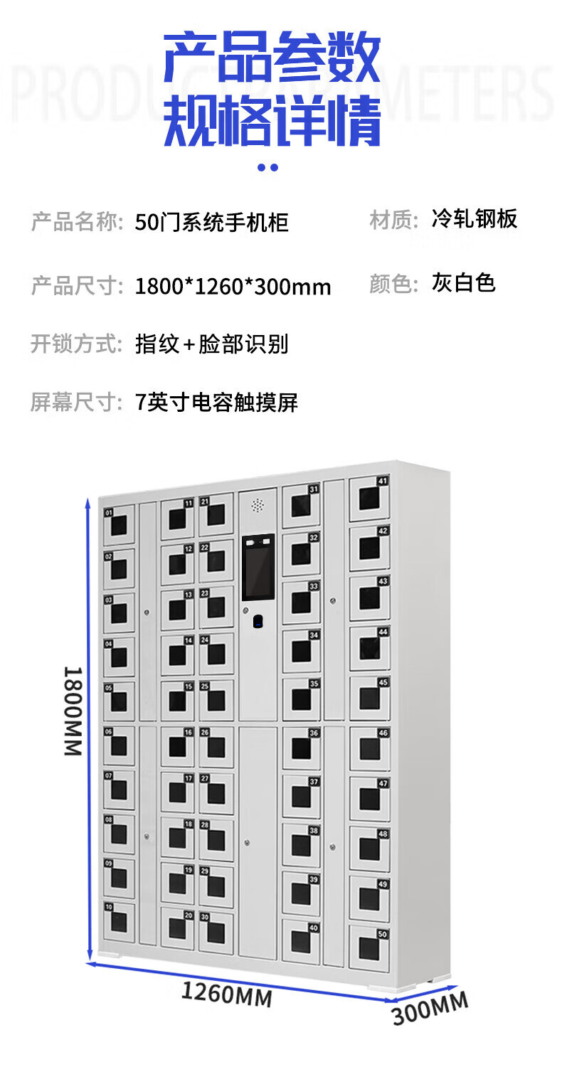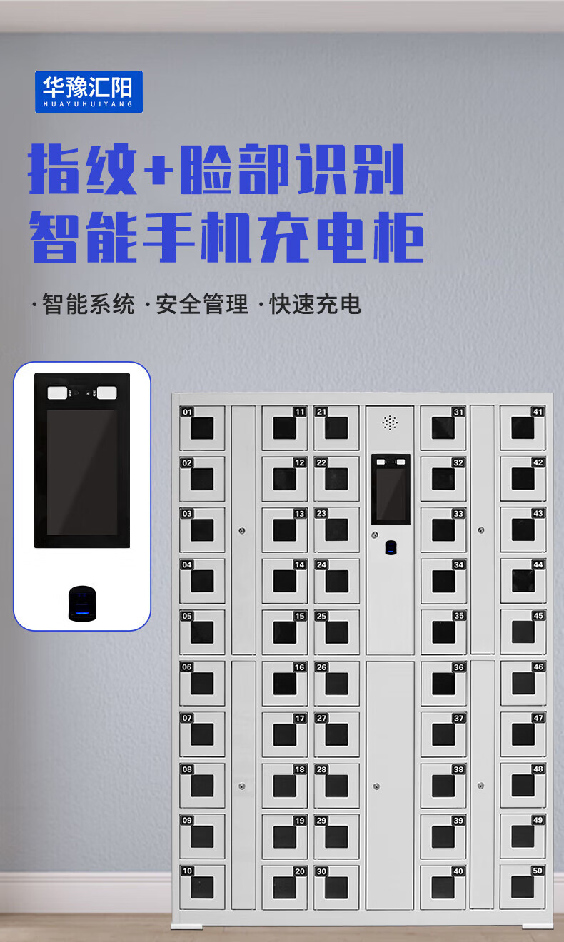 Huayu Huiyang 50-door system mobile phone cabinet shift cabinet intelligent dual authentication time management charging cabinet face recognition + fingerprint infrared presence detection model HY-HSJG18