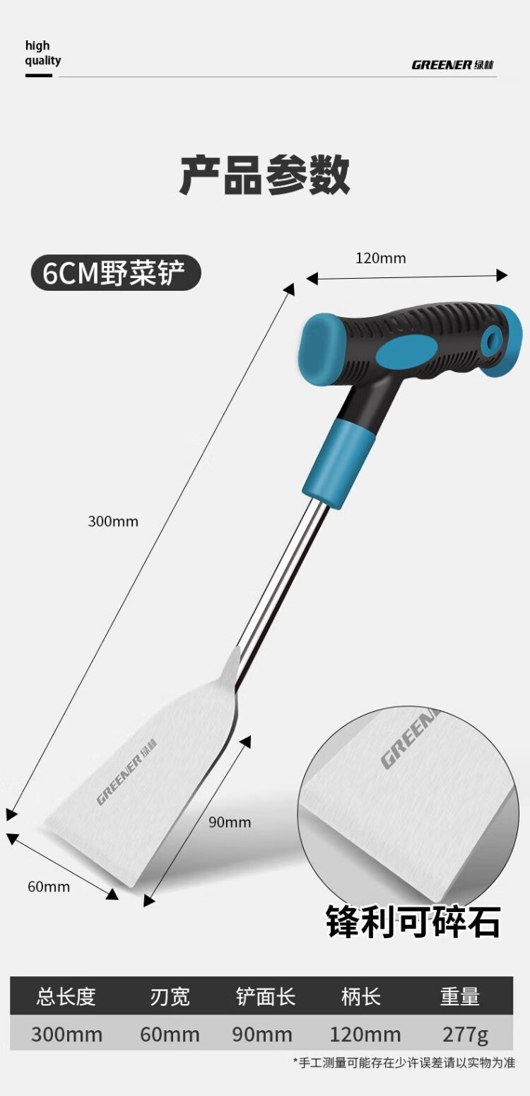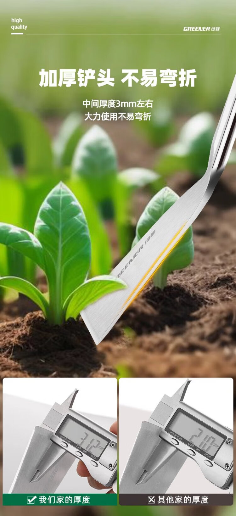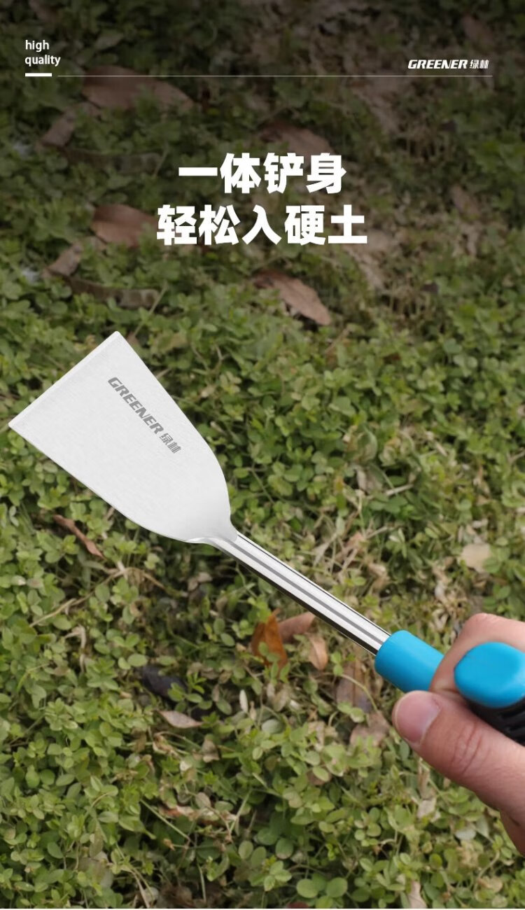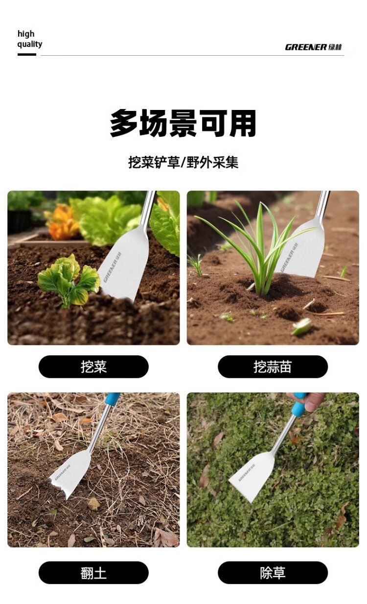 GREENER's artifact for digging wild vegetables and garlic seedlings, household digging, seedling raising and weeding, outdoor gardening shovel, stainless steel weeding tool, double
