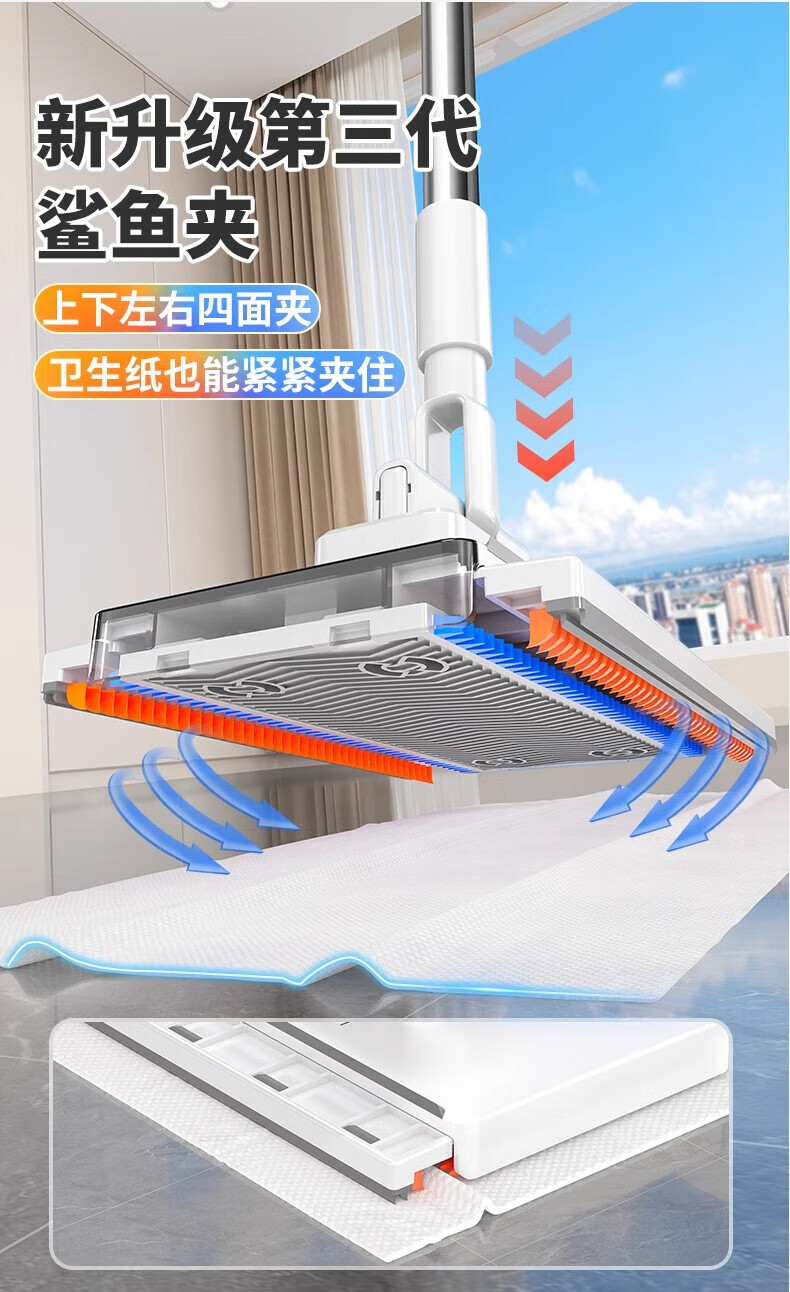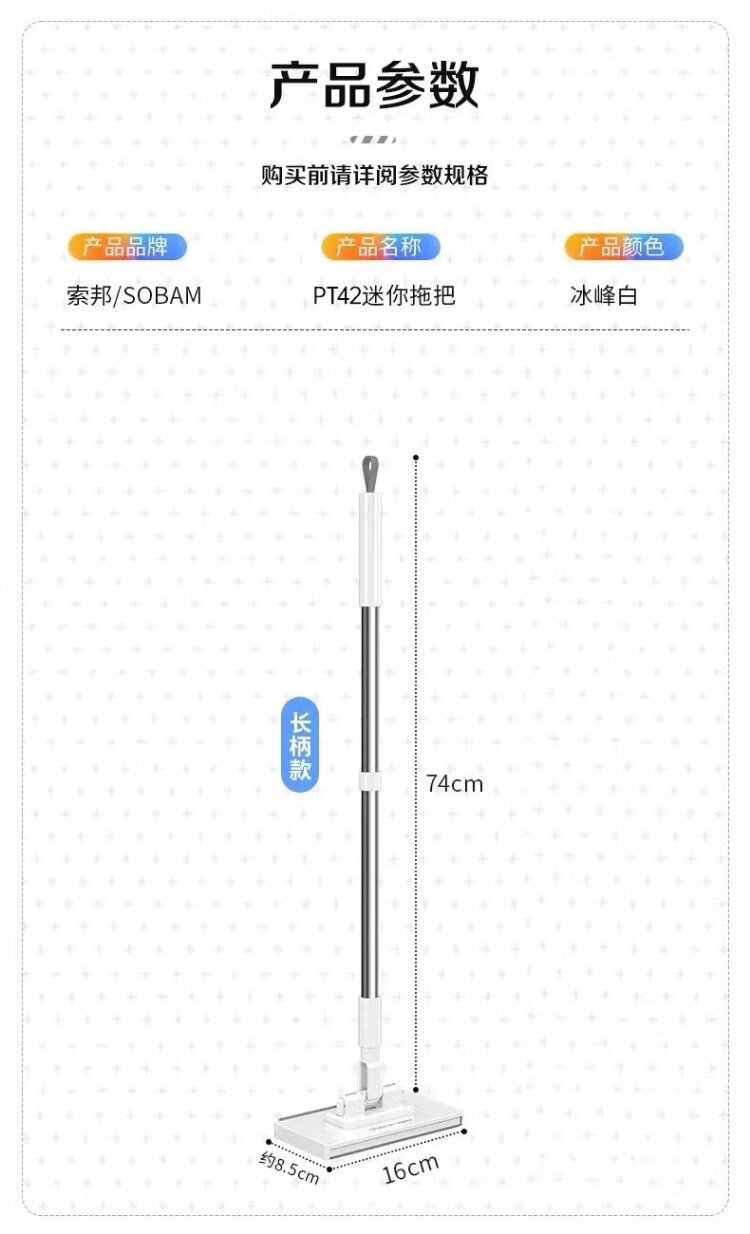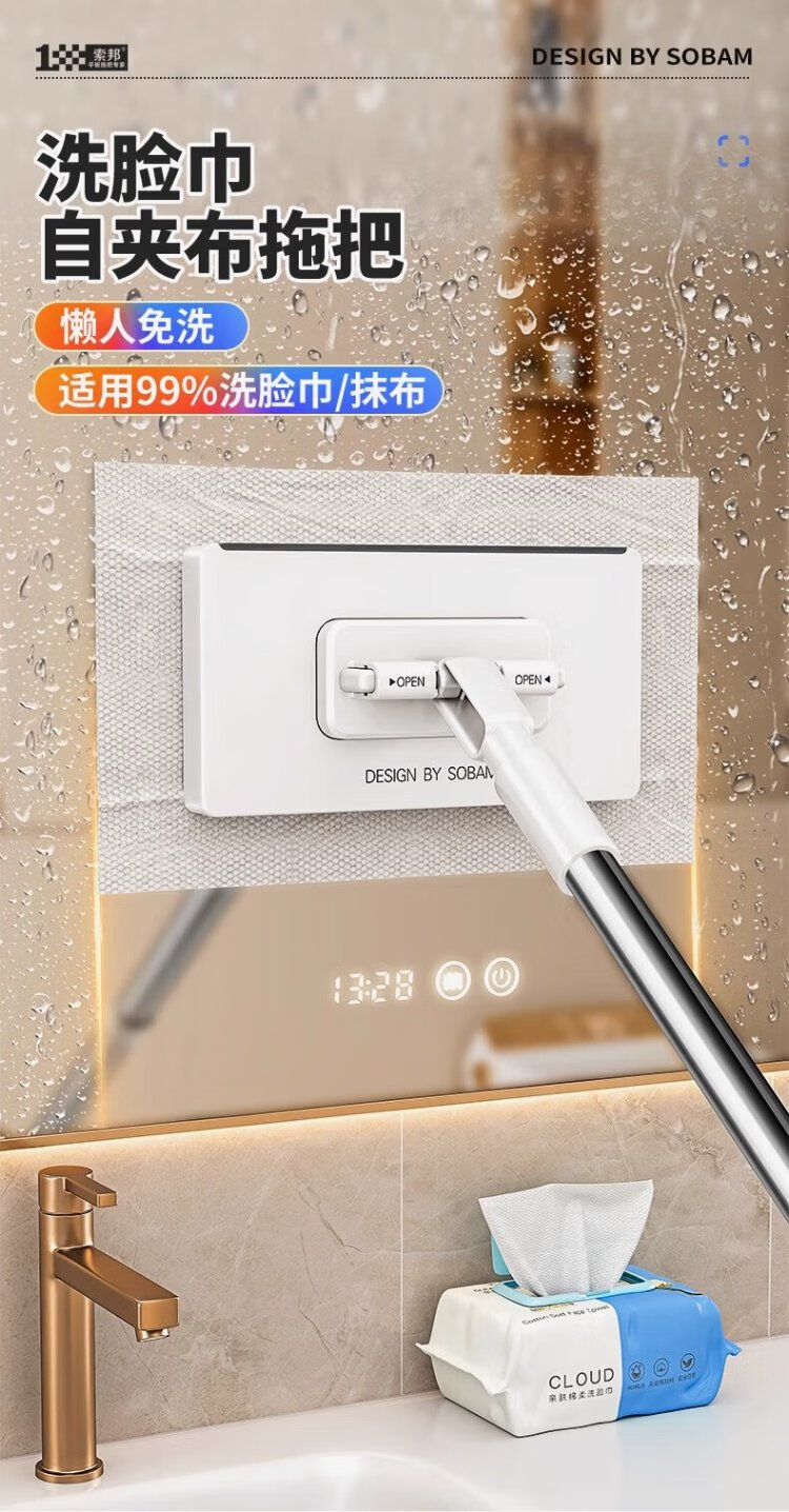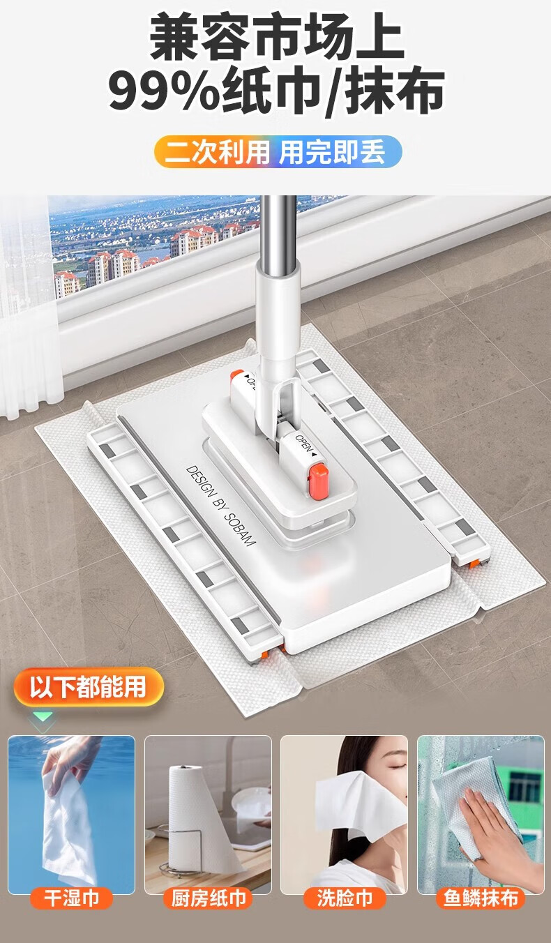 Sorbonne face towel flat mop 16cm household hand-free lazy mopping artifact electrostatic dust removal paper clip cloth small mop