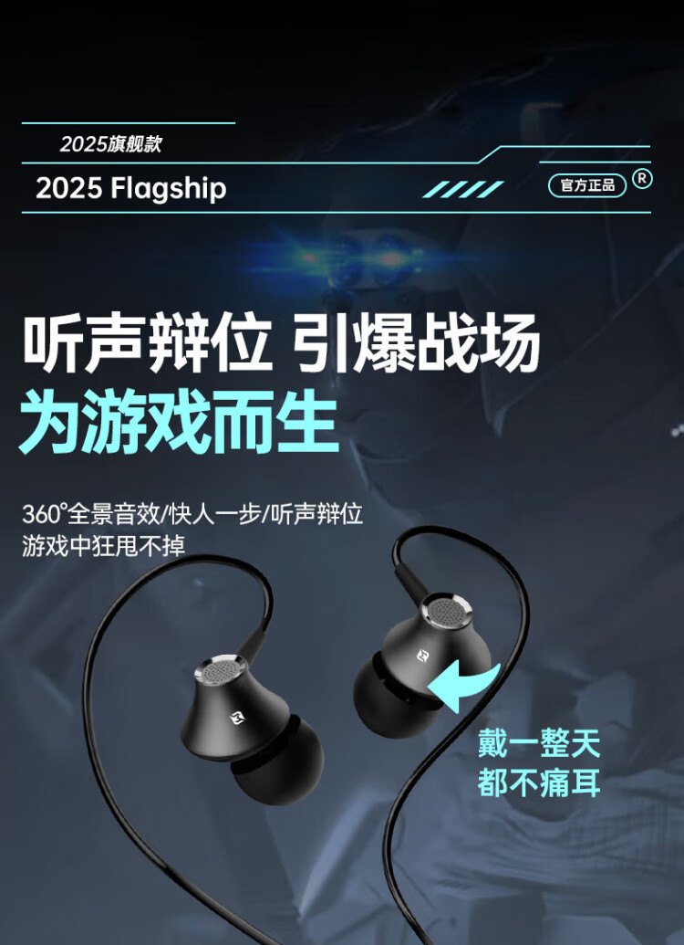 Viken decisive peak genuine co-branded e-sports dedicated game wired headphones in-ear wire control type-c2025 latest dynamic high-quality mobile phone music earbuds