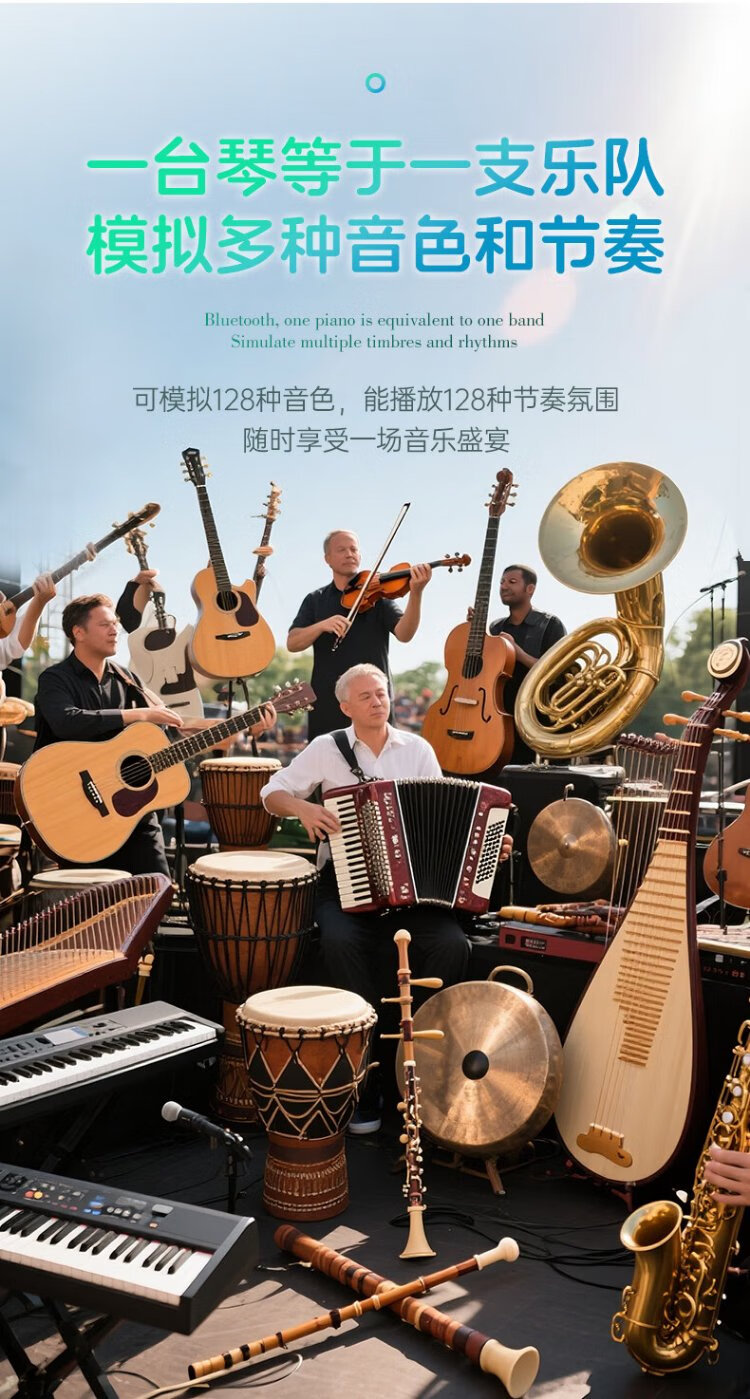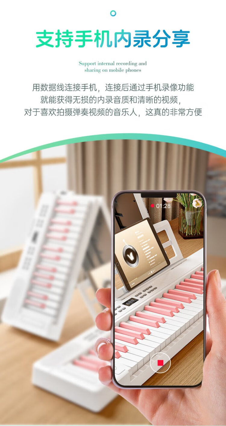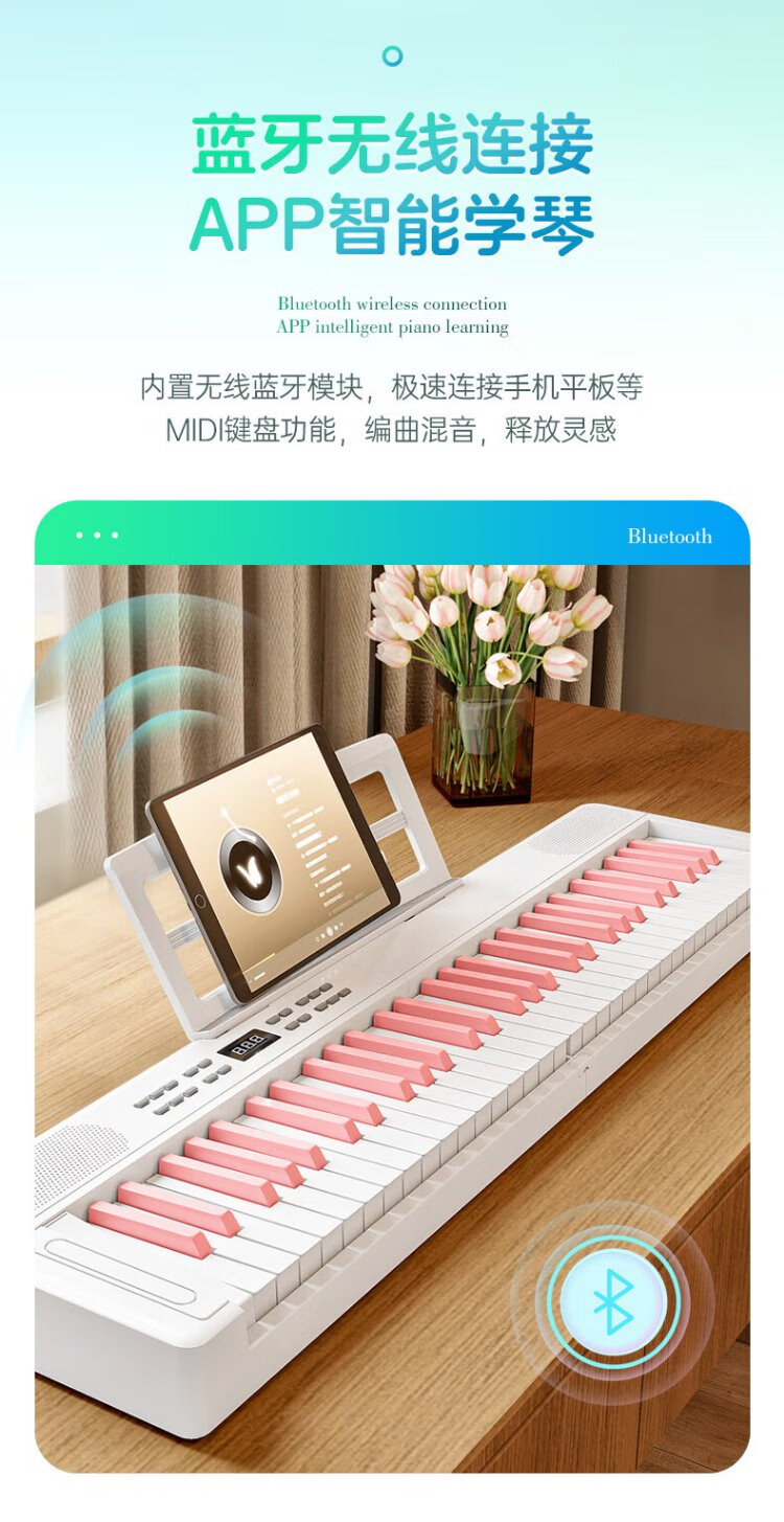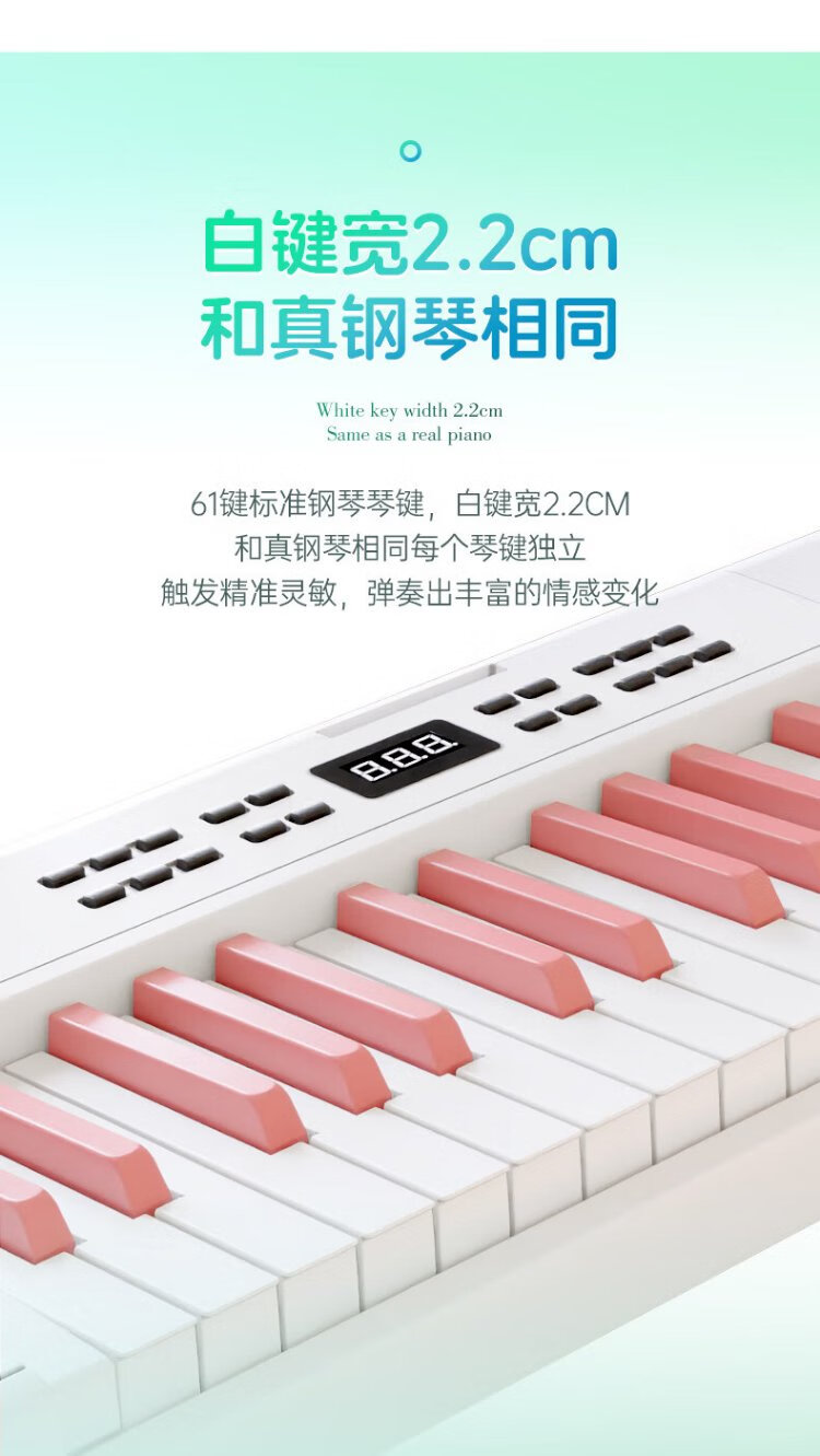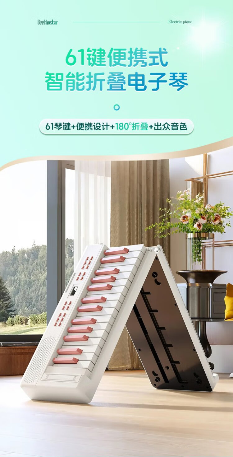 Beethostar Foldable Electric Piano 61 Keys Velocity Key Electronic Piano Portable Adult Children Kindergarten Teacher Performance Professional Piano