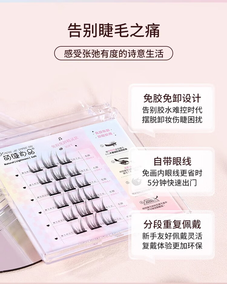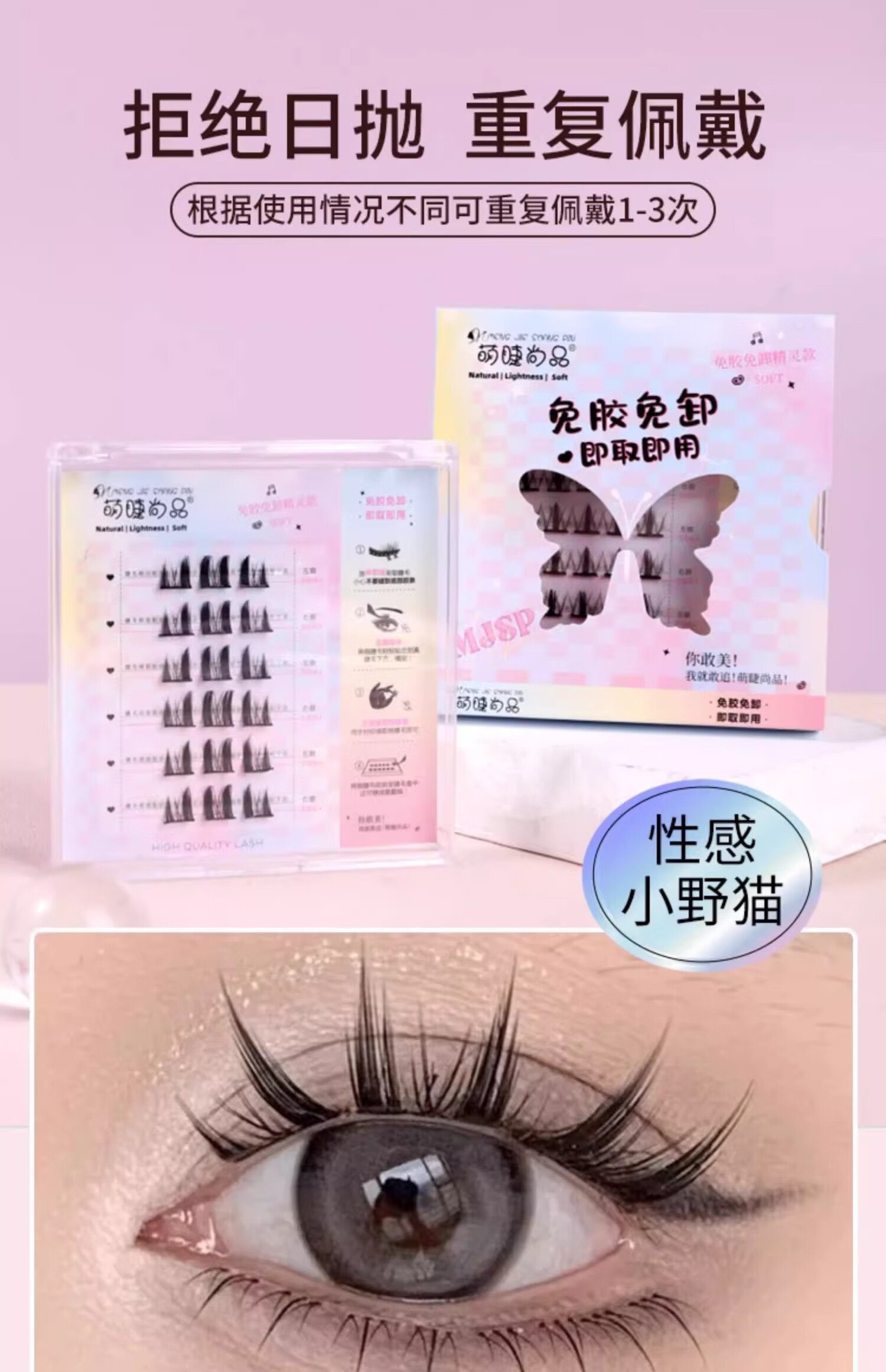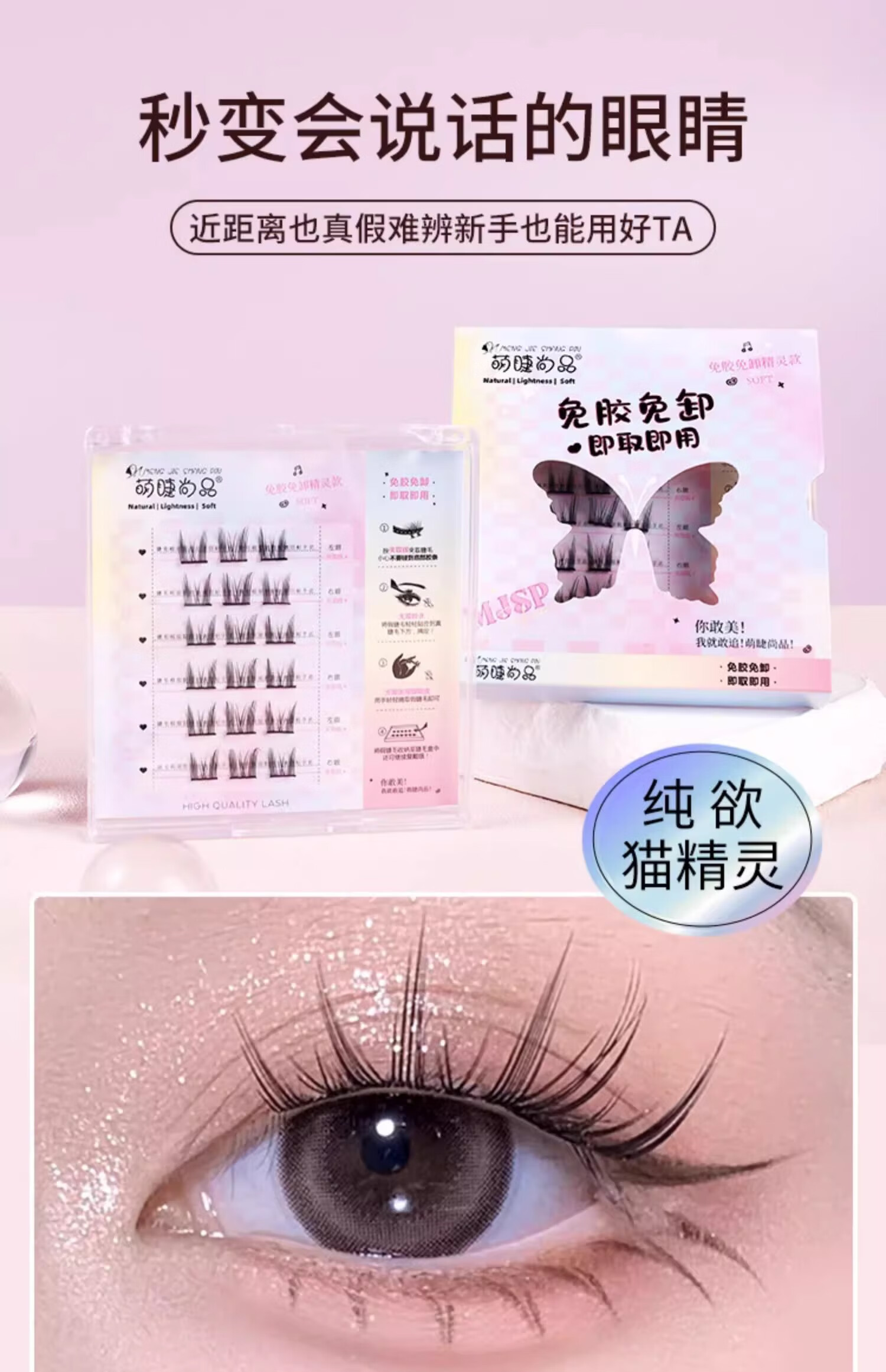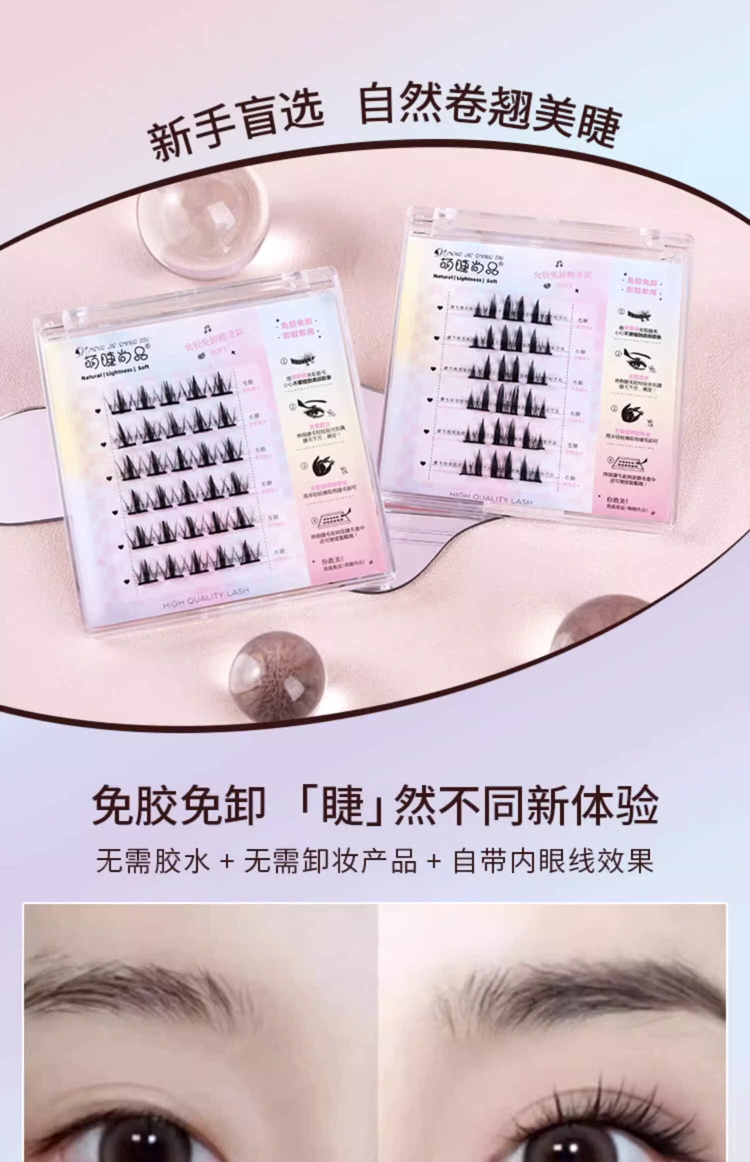 Cute Eyelashes Shangpin False Eyelashes Sunflower Natural Novice Self-Adhesive Single Cluster Glue-Free Segmented Simulation Lazy Trilogy