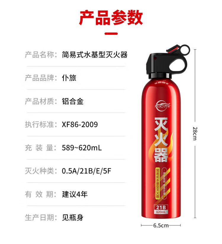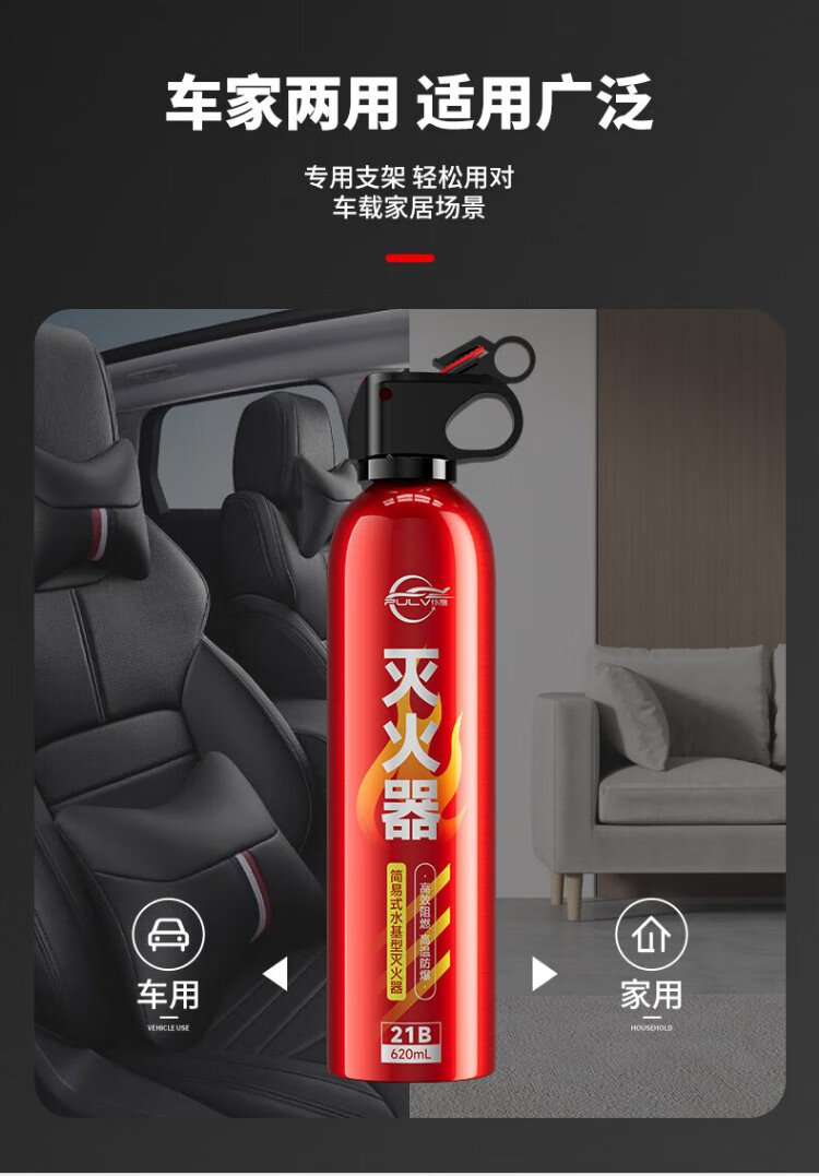 Pulu car-mounted fire extinguisher water-based high temperature resistant and explosion-proof small portable 3c certified private car 620ml*2 bottles