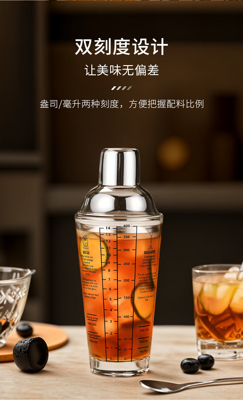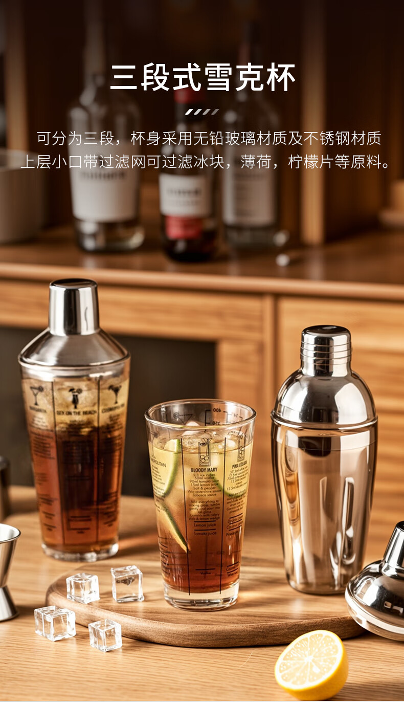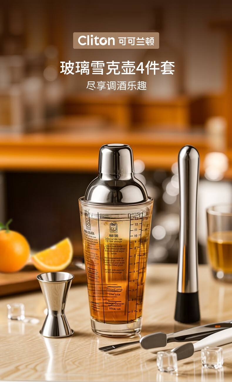 CLITON glass shaker shaker, milk tea shop hand-made lemon artifact cocktail hand-shake shaker cup and pot 4-piece set