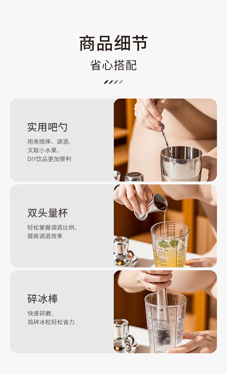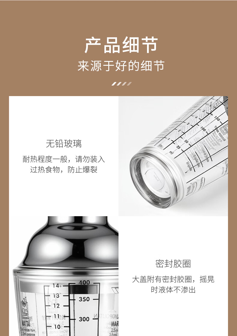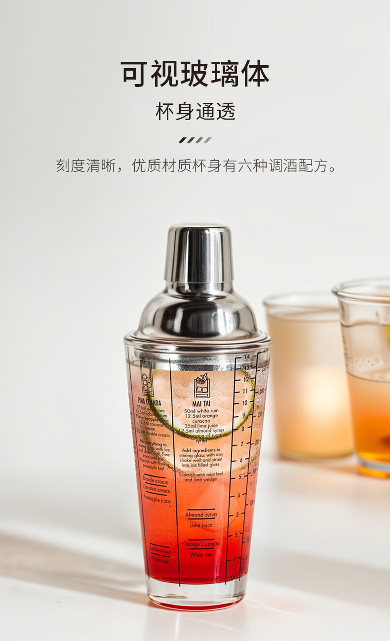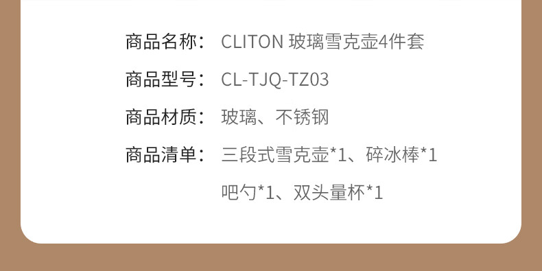 CLITON glass shaker shaker, milk tea shop hand-made lemon artifact cocktail hand-shake shaker cup and pot 4-piece set
