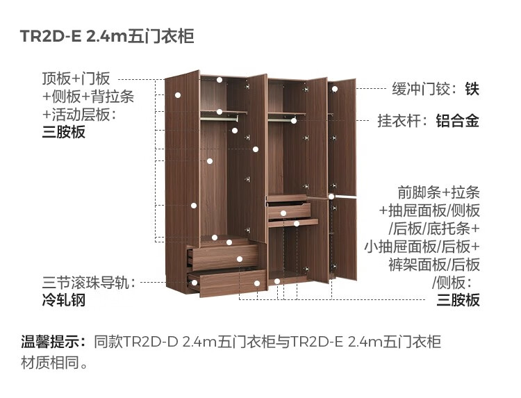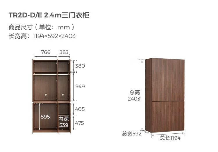 Lin's home large wardrobe bedroom home medieval style finished hanging wardrobe segmented to the top 2025 new TR2D