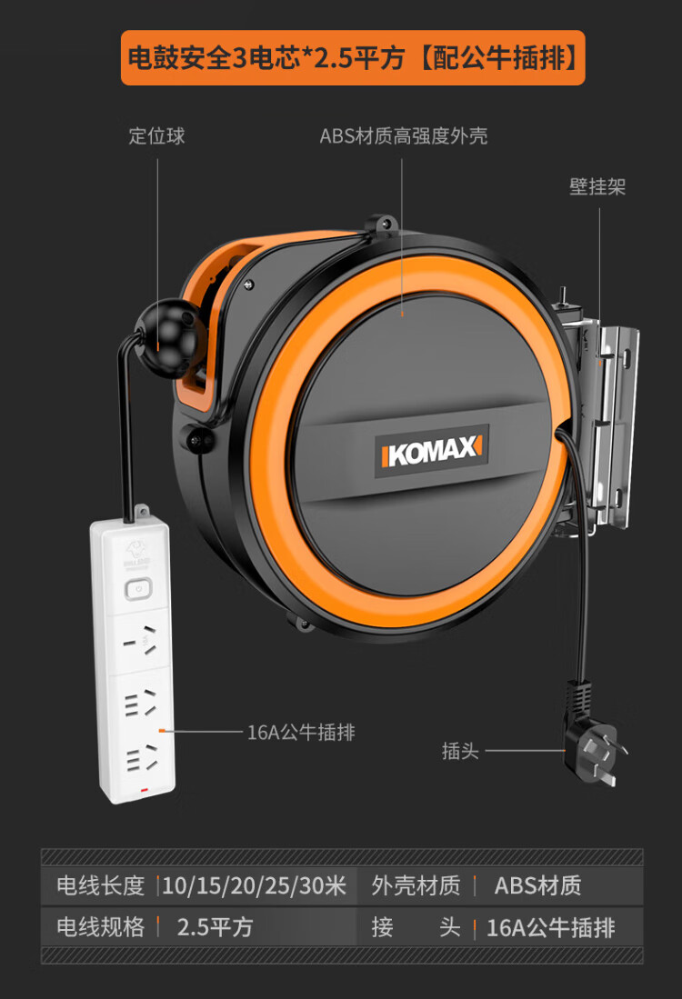 Komax air drum automatic telescopic recycling hose reel electric drum auto repair beauty car wash pneumatic tool 1.5 square meters * 10 meters
