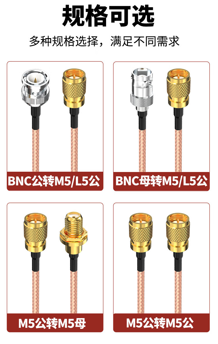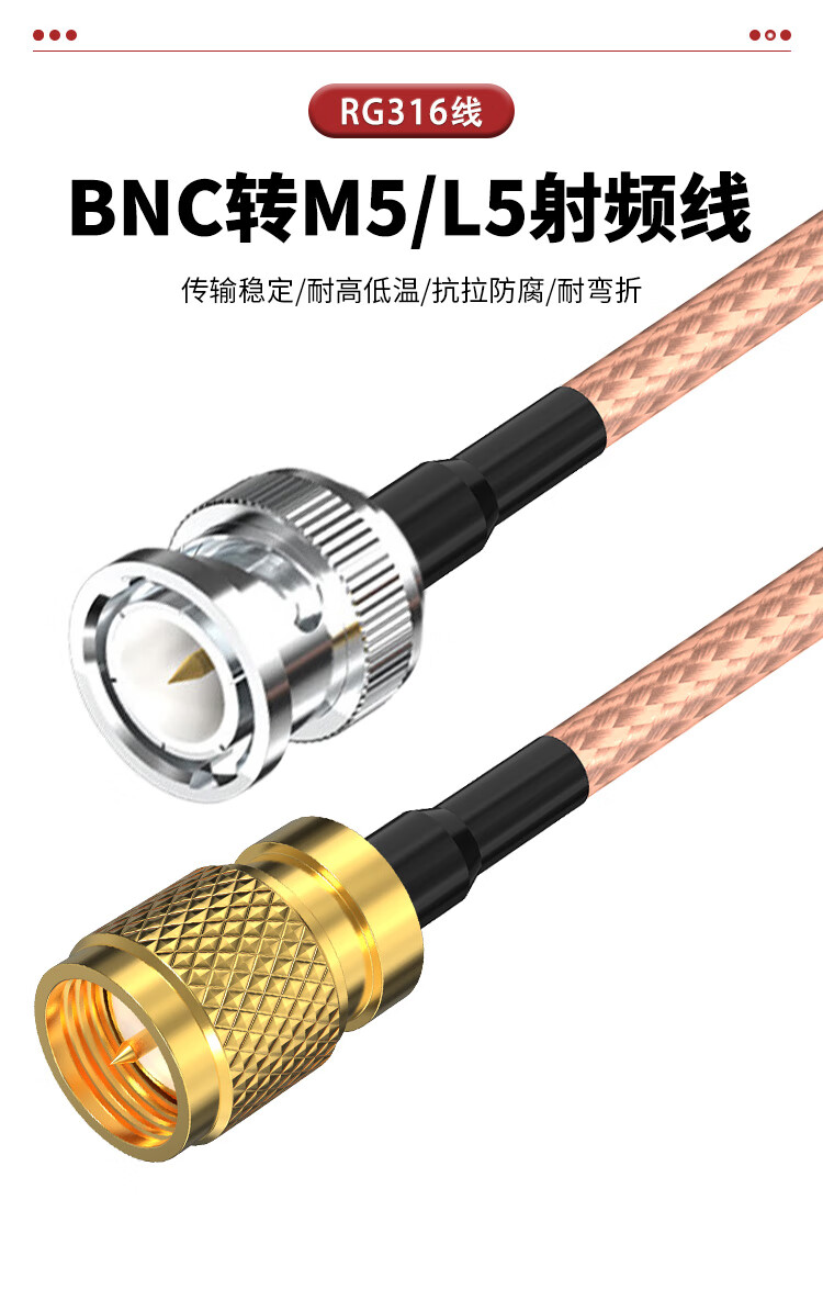 When needed, BNC female to M5/L5 male RF connection cable RG316 coaxial line sensor vibration test cable 5 meters SX-BNC/M5-KJ5
