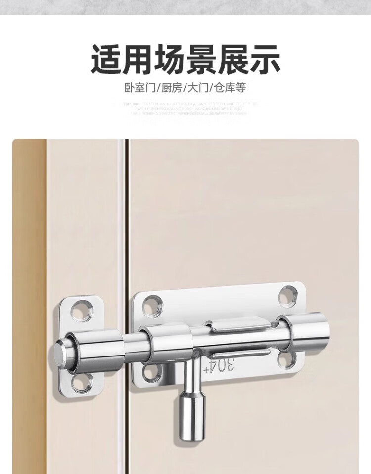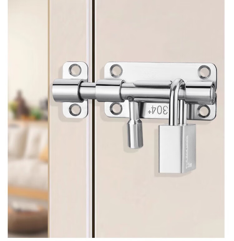 Chuke punch-free 304 stainless steel bolt door bolt anti-theft door bathroom plug lock thickened door lock buckle bolt with keyhole and padlock