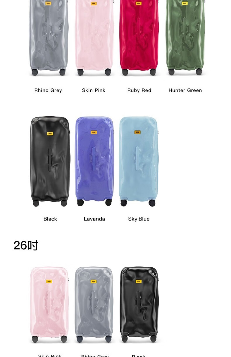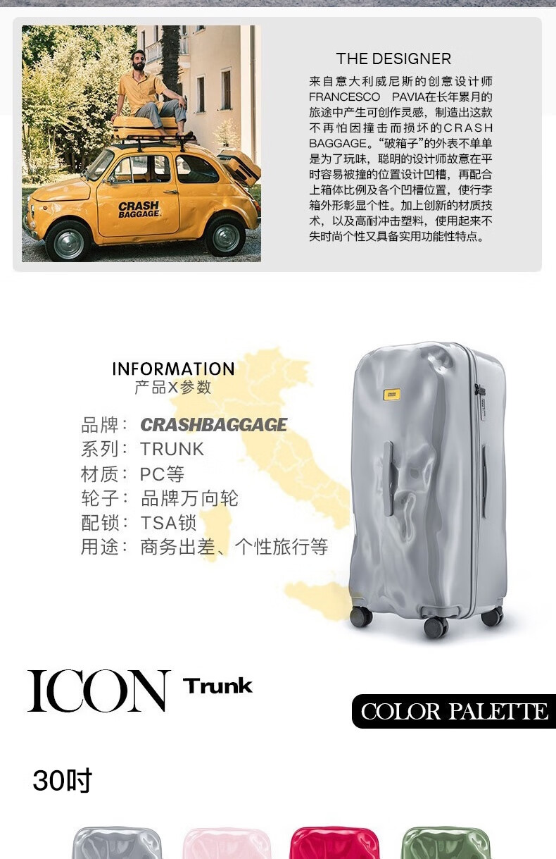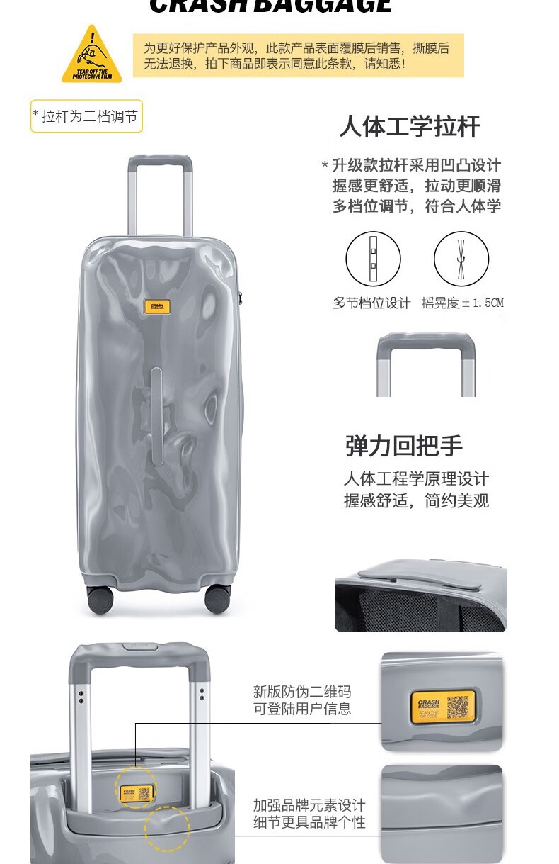 CRASH BAGGAGE Italian concave and convex suitcases, boarding cases, trolley cases for men and women, Trunk series, glossy gray 26 inches