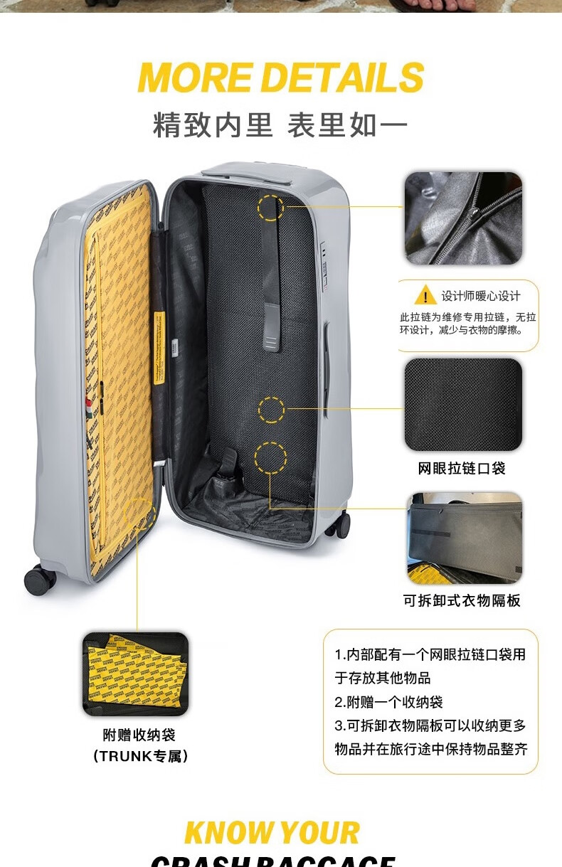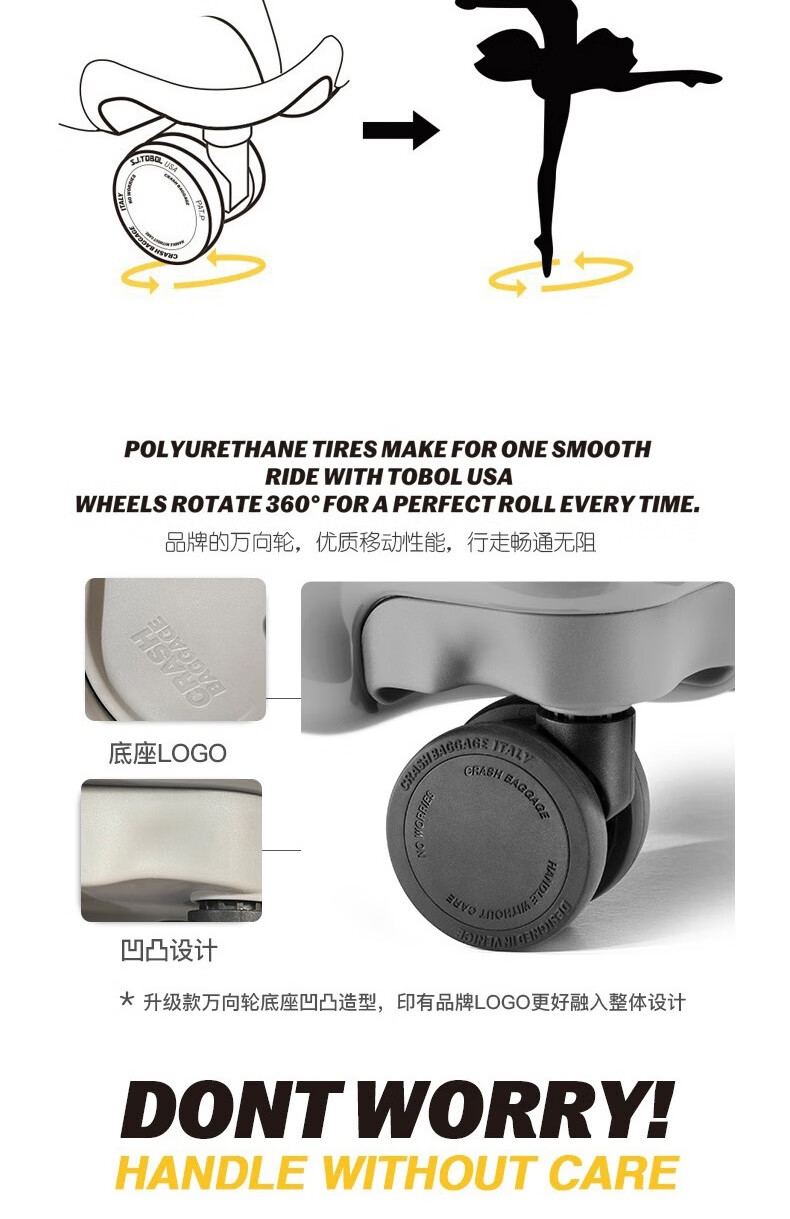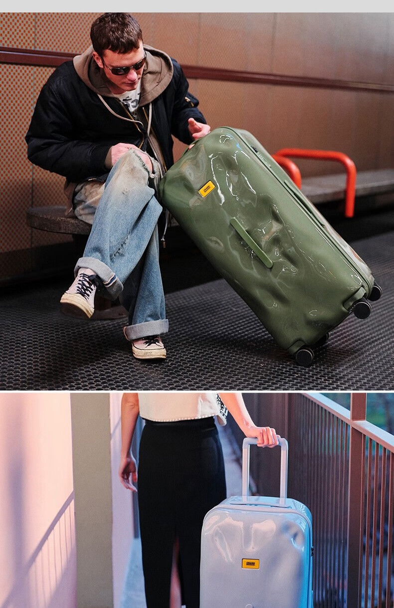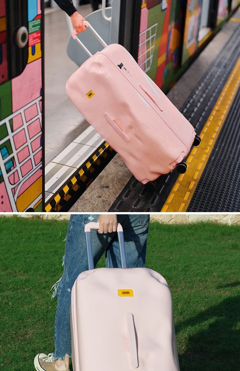 CRASH BAGGAGE Italian concave and convex suitcases, boarding cases, trolley cases for men and women, Trunk series, glossy gray 26 inches