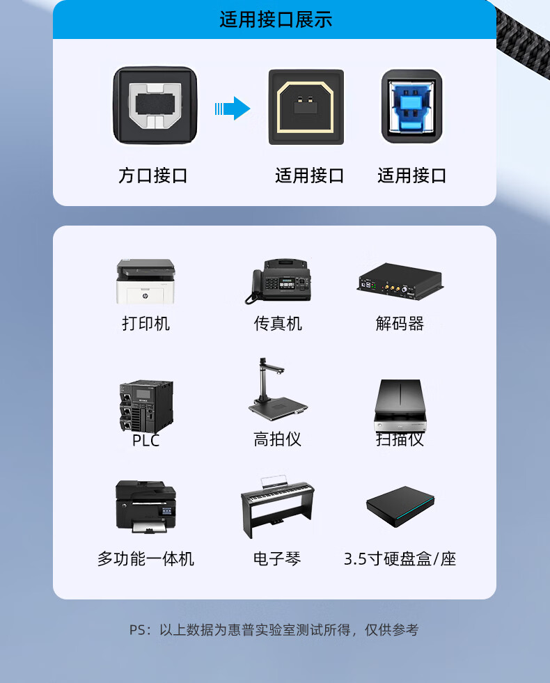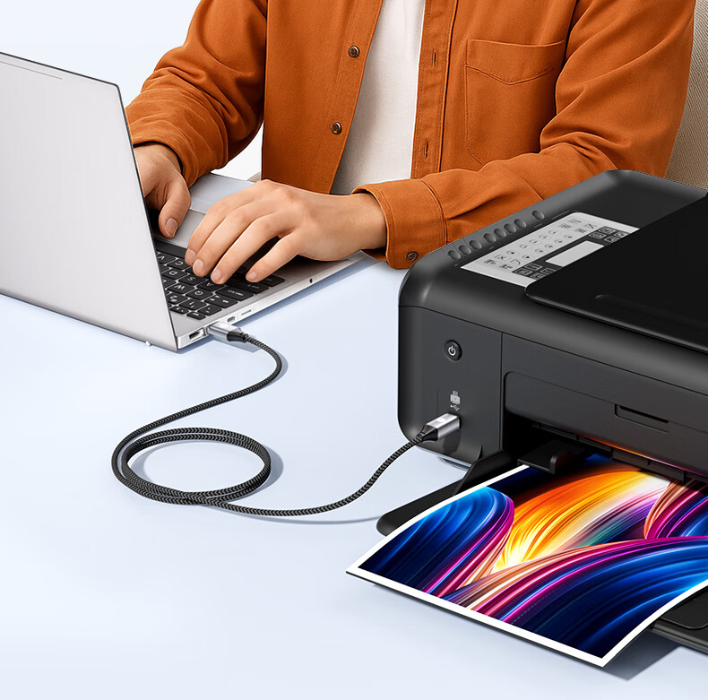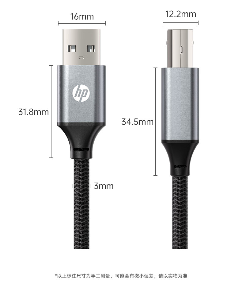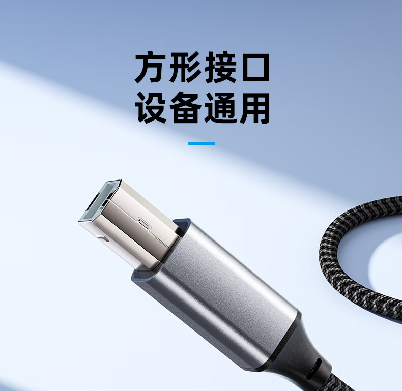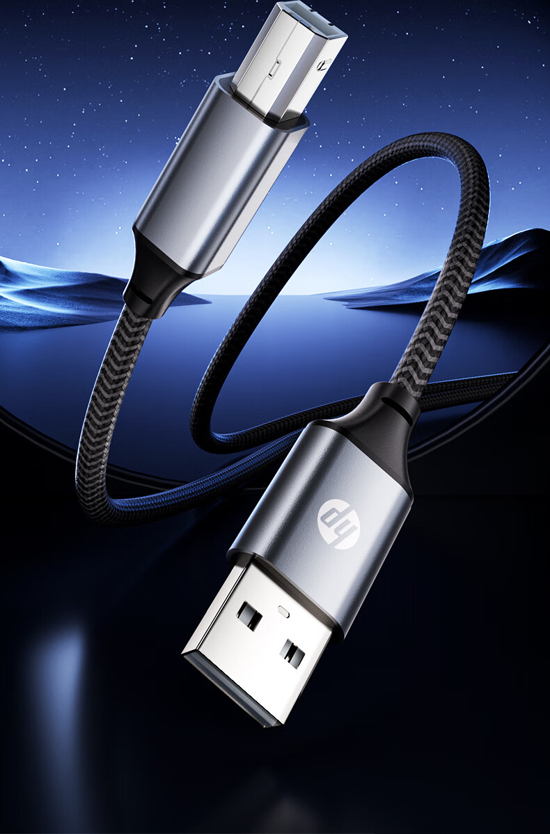 HP printer cable official original printer data connection cable square connector suitable for HP Canon Epson printer fax machine scanner braided cable 1 meter