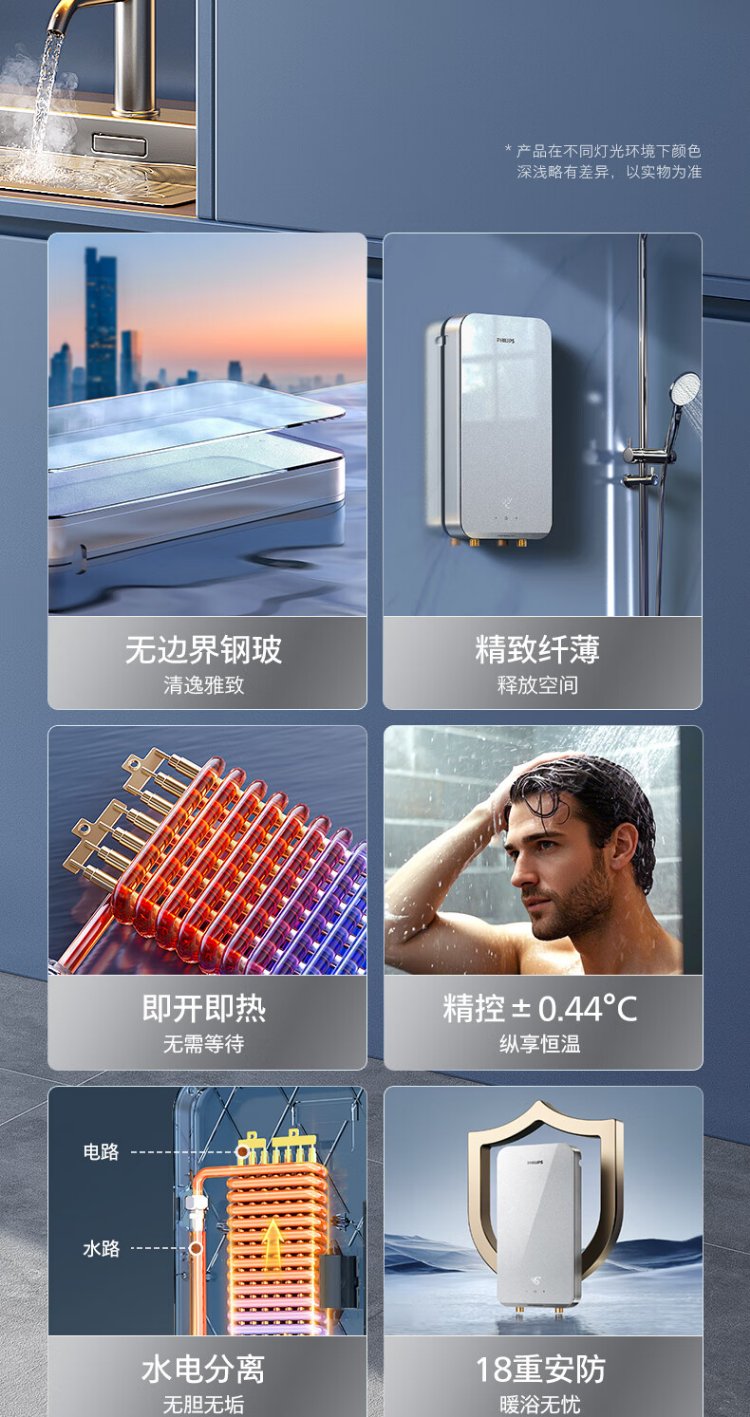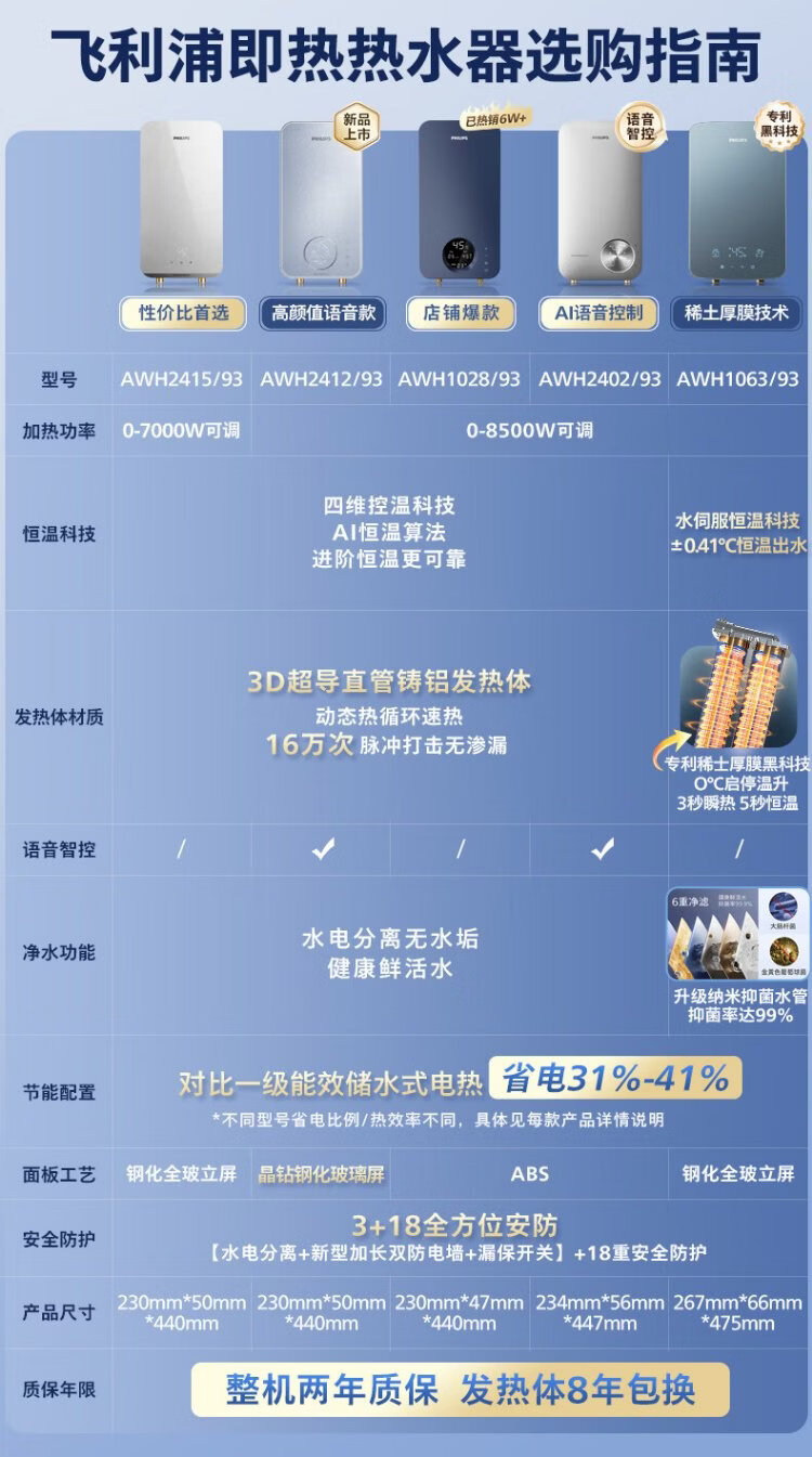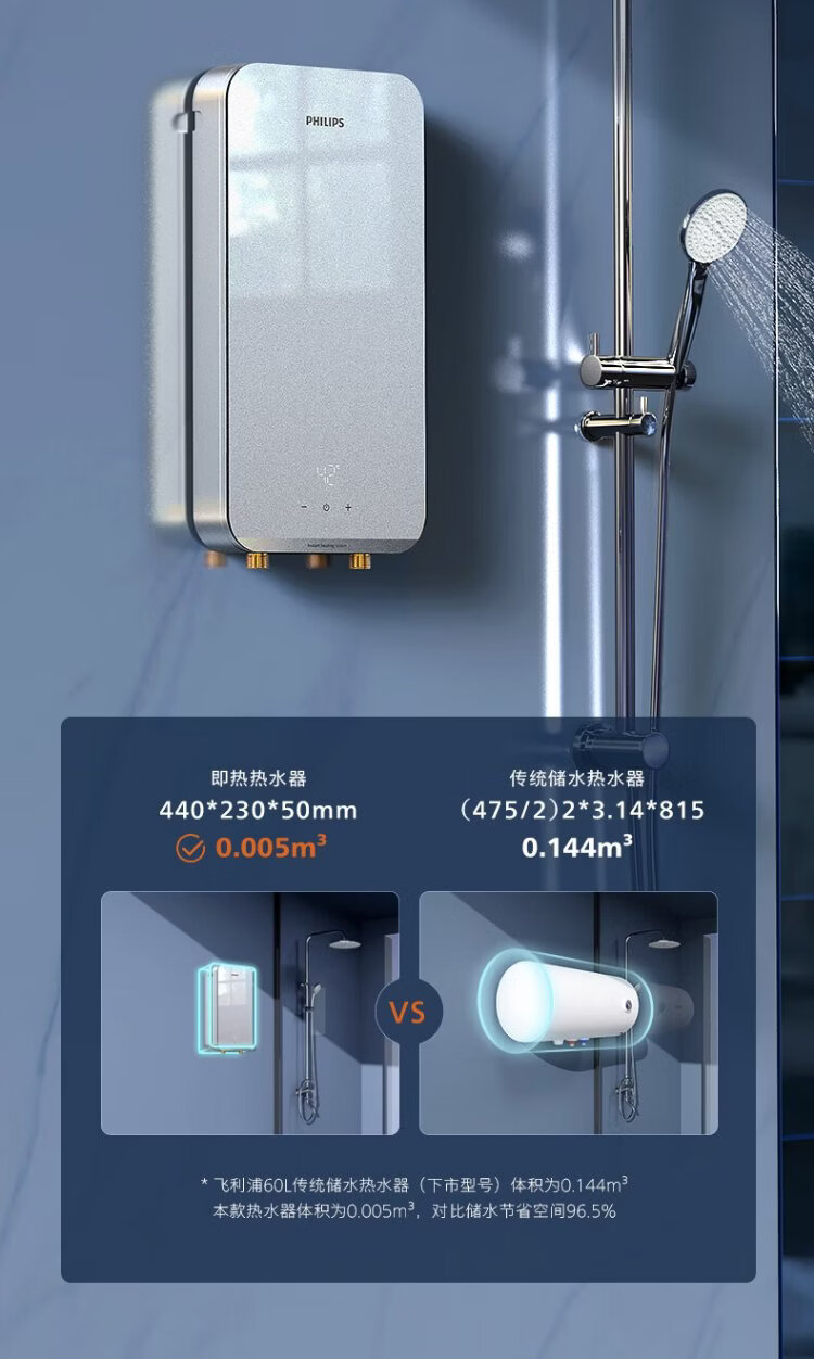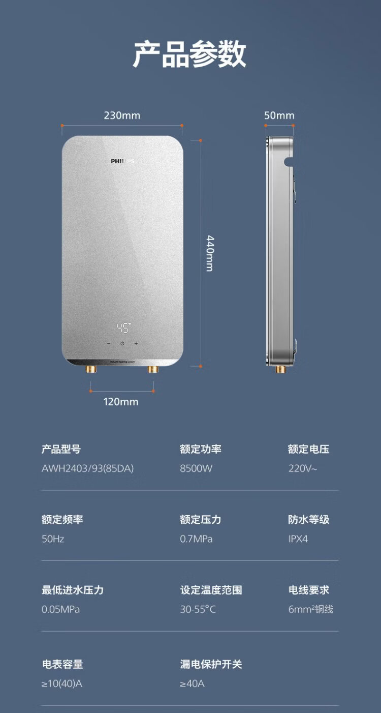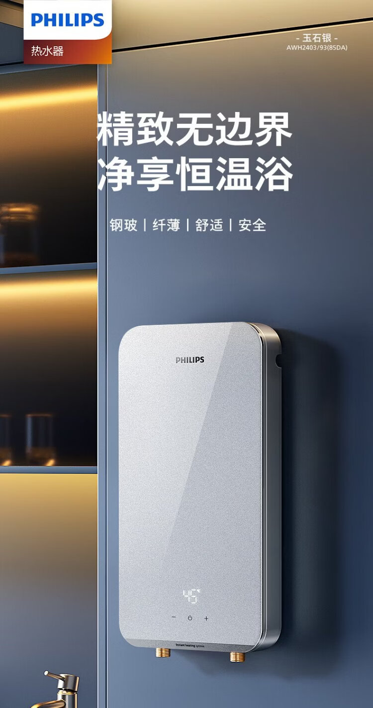 Philips (PHILIPS) instant electric water heater 8500W fast heating AI four-season constant temperature glass panel without water storage stepless frequency conversion AWH2403/93 (85DA)