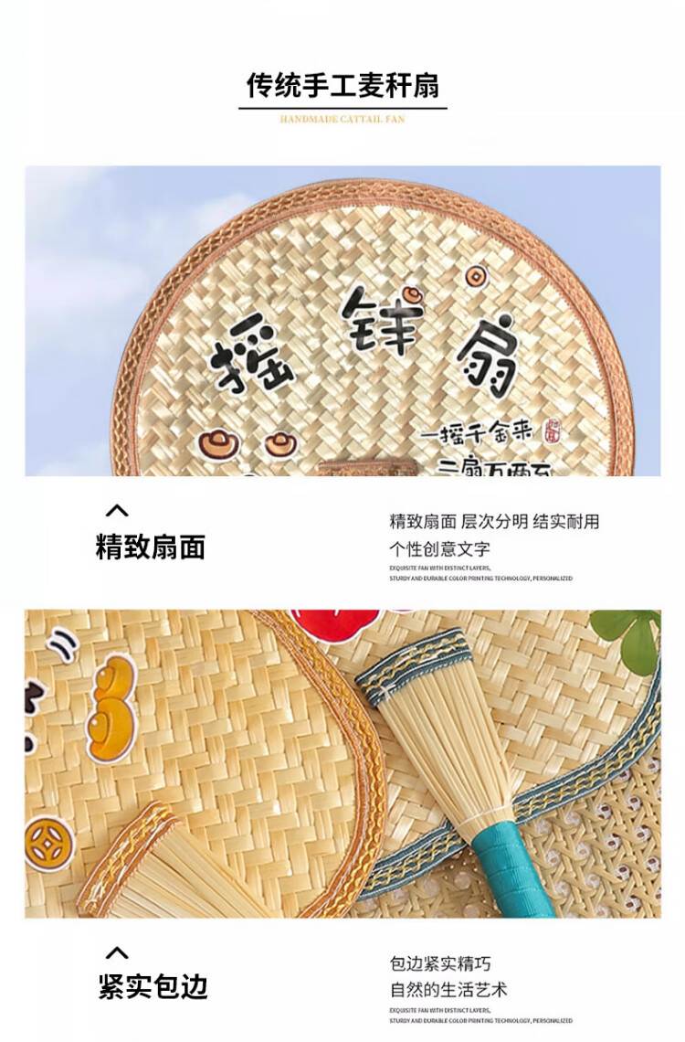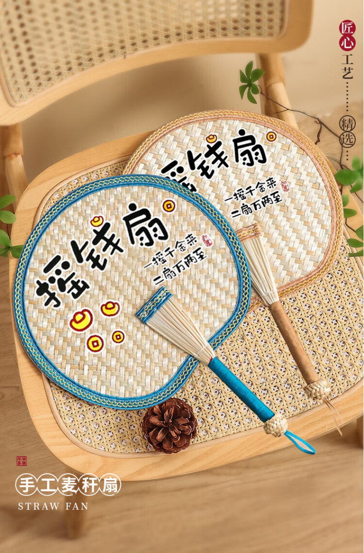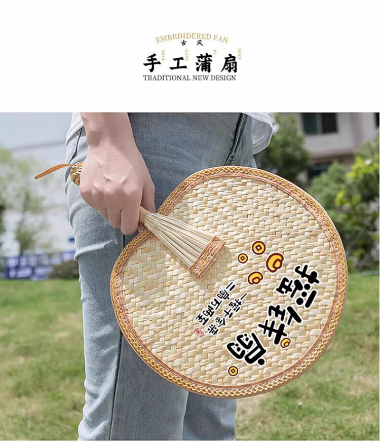 Jingxun Fan Summer Durable Big Cattail Fan Wheat Straw Money Fan Handmade Woven Baby Household Old-fashioned Hand Fan Brown