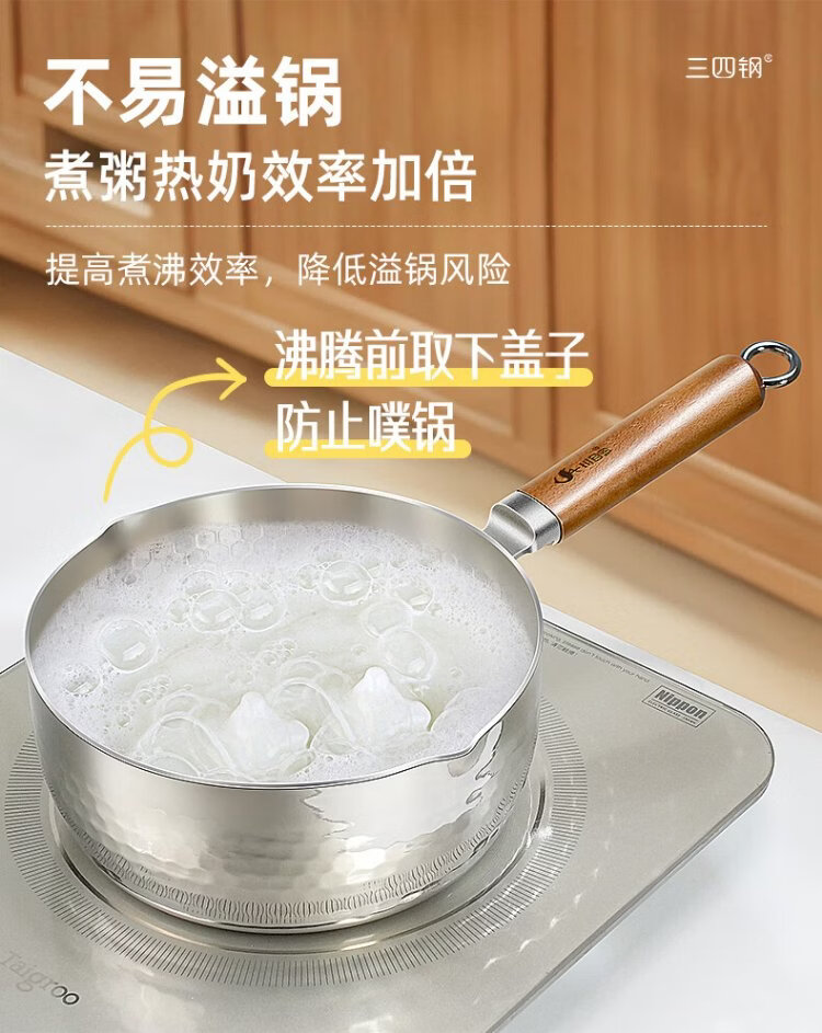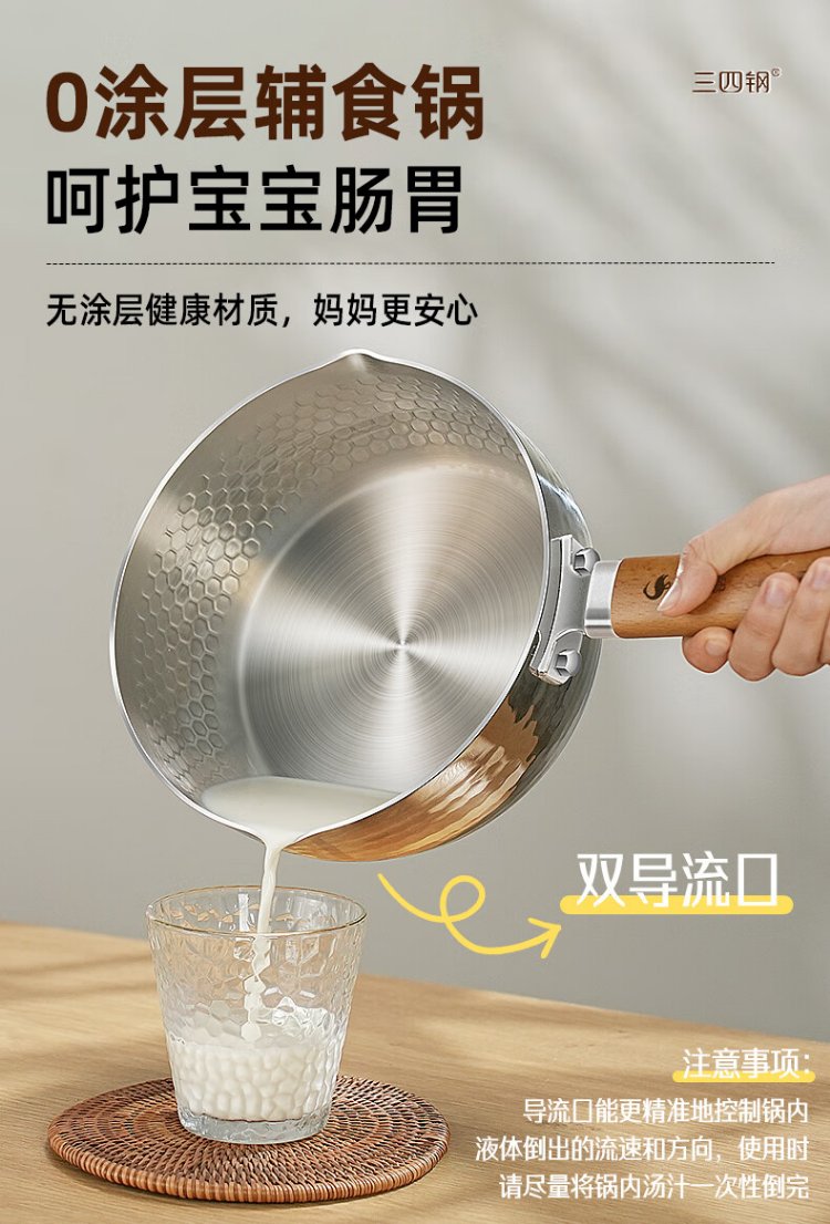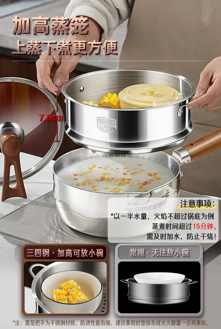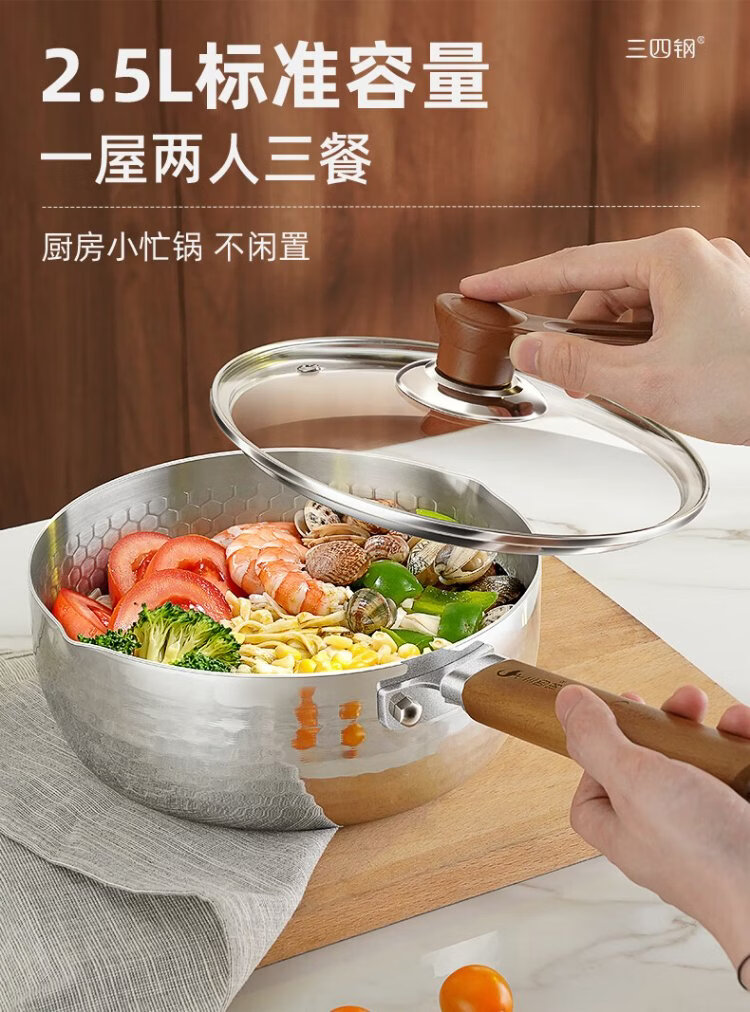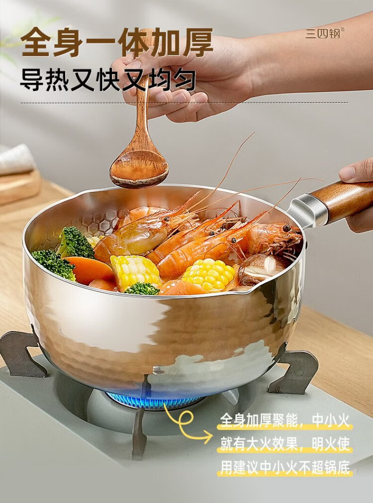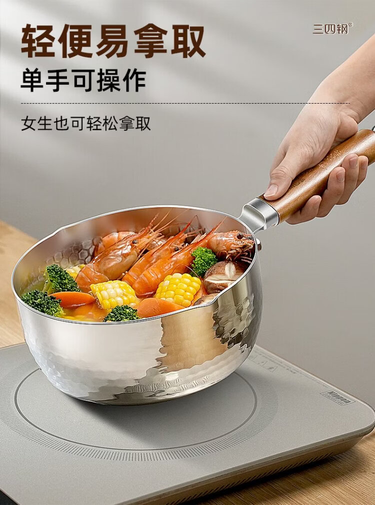 Sansi Steel Snow Ping Pan inner layer 316L stainless steel milk pot food supplement small soup pot instant noodle cooking pot 20cm food grade one-piece molding