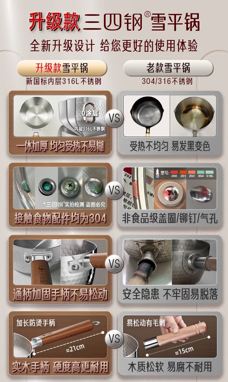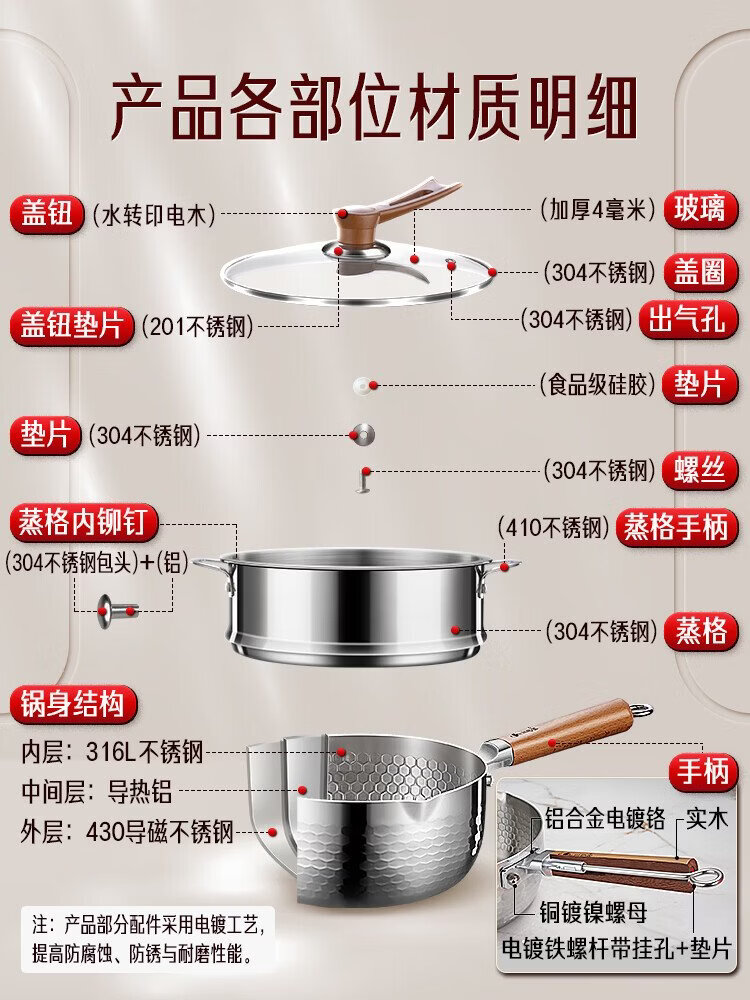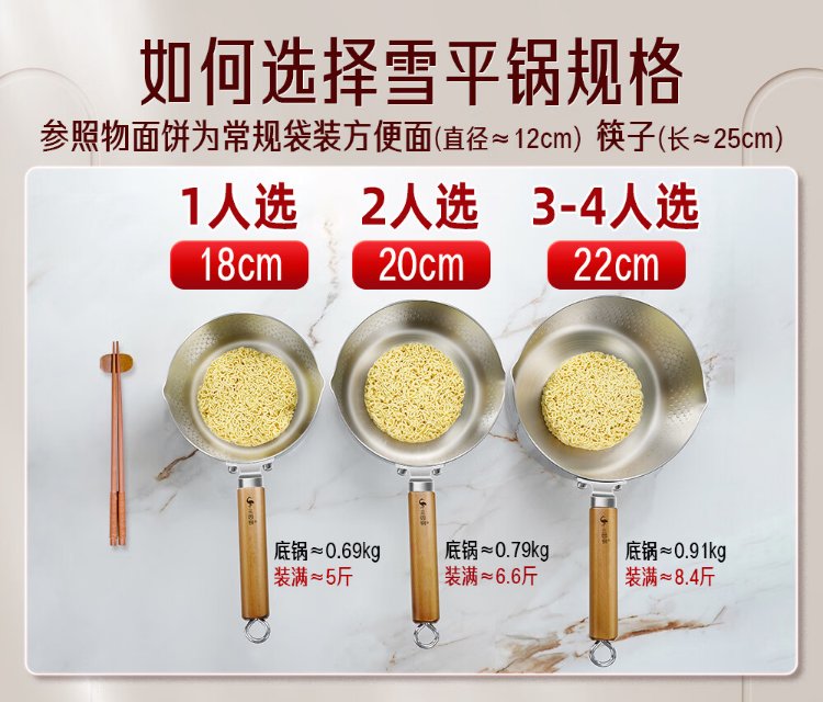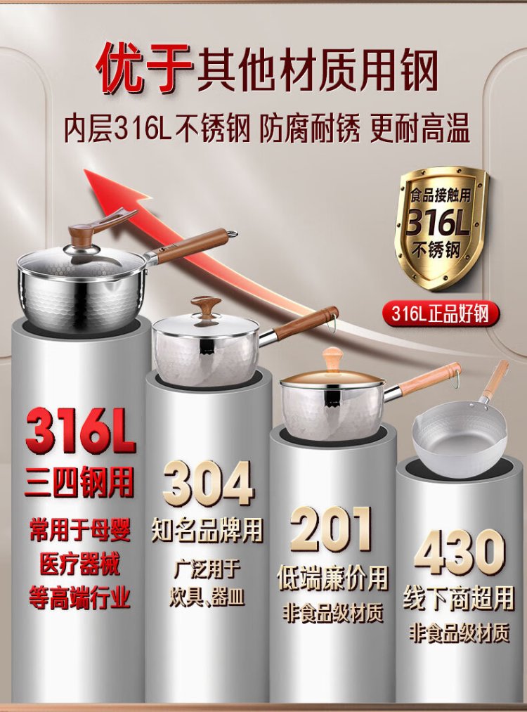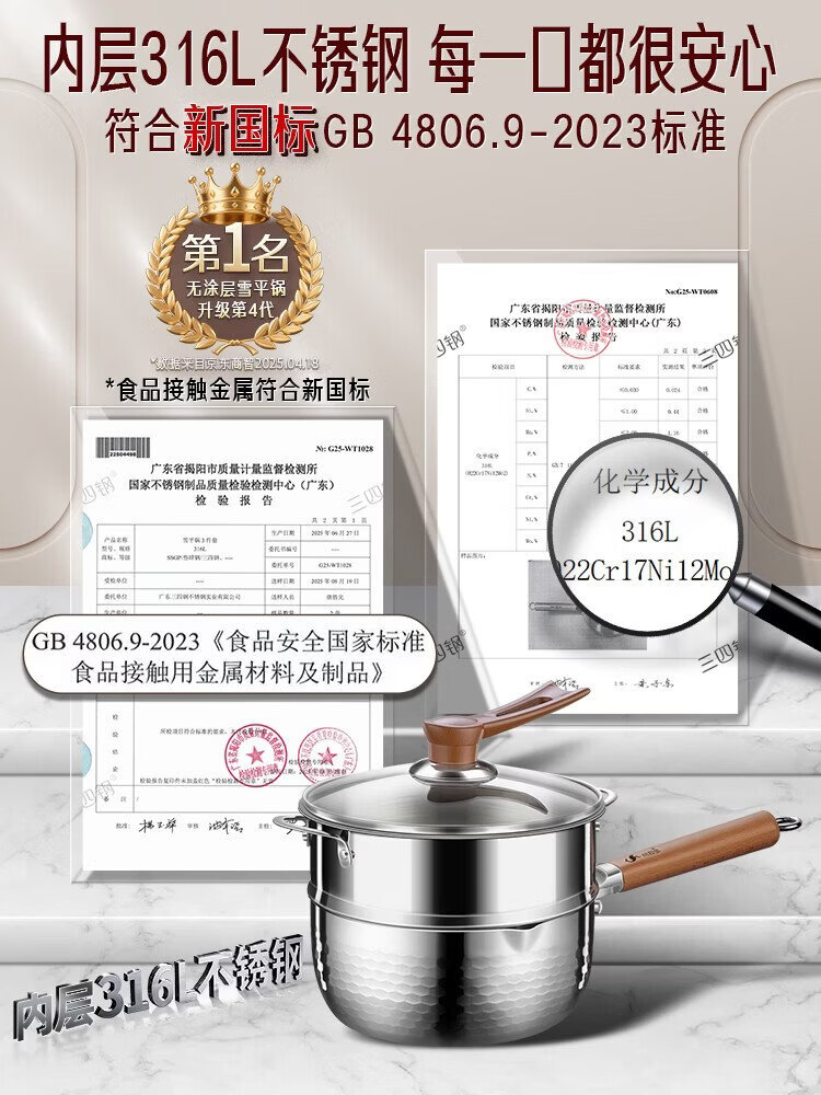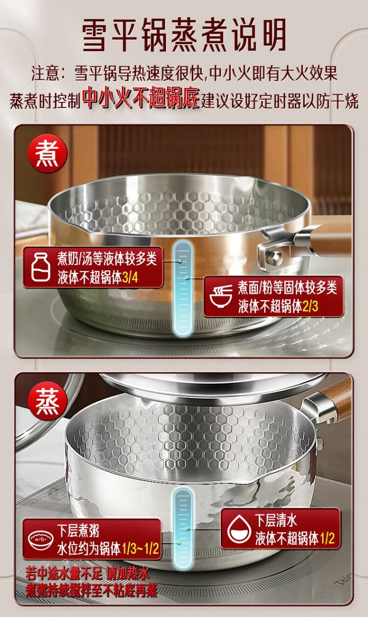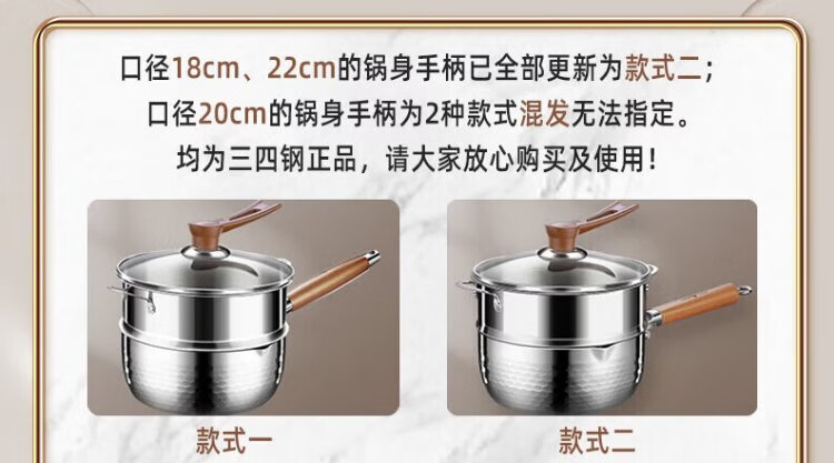 Sansi Steel Snow Ping Pan inner layer 316L stainless steel milk pot food supplement small soup pot instant noodle cooking pot 20cm food grade one-piece molding