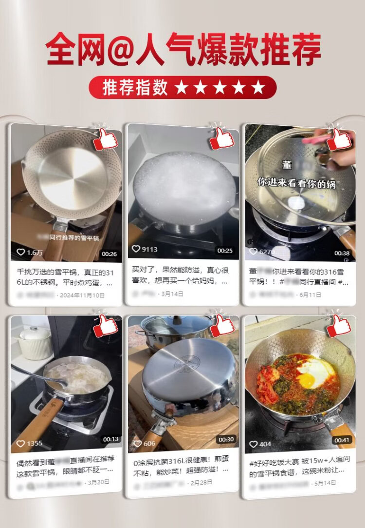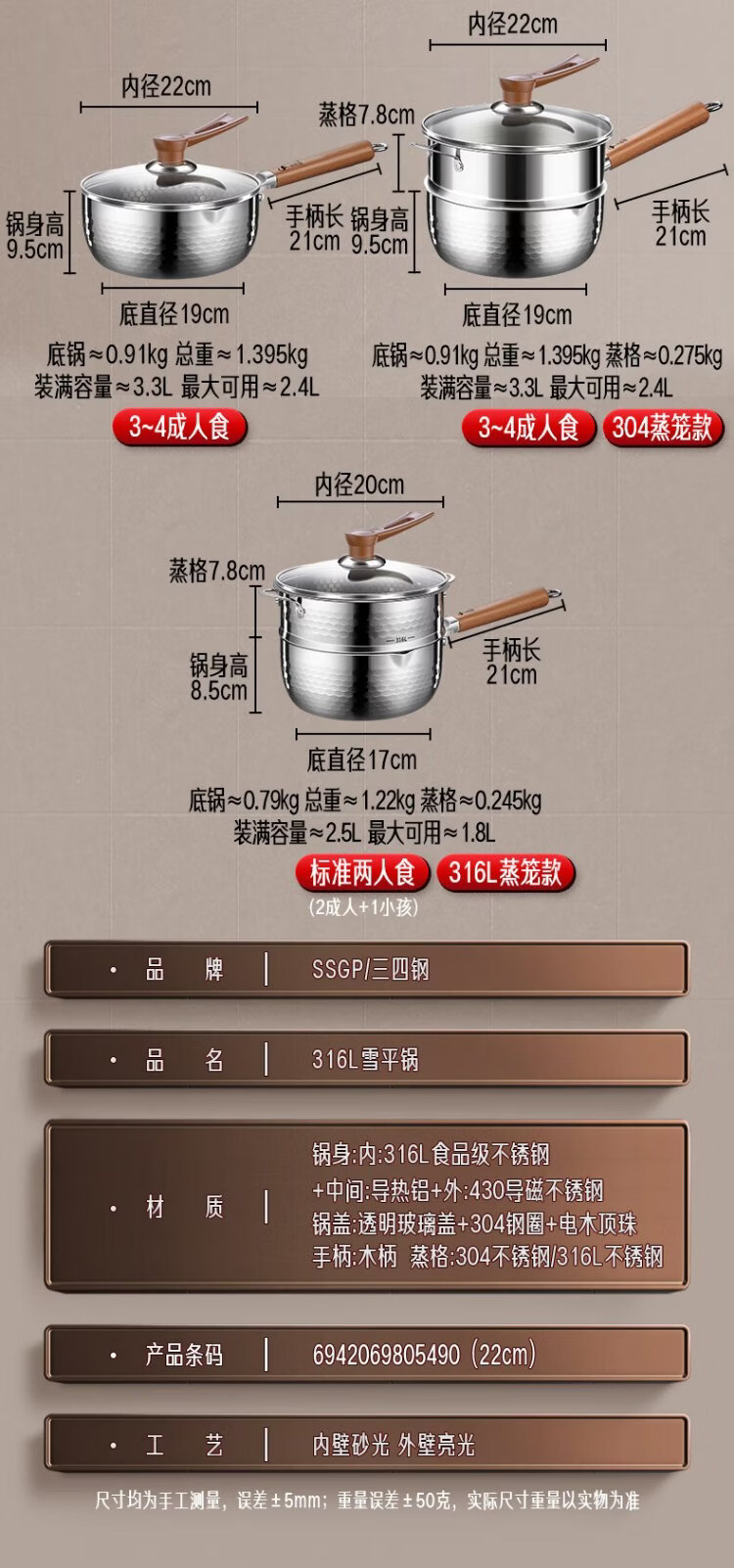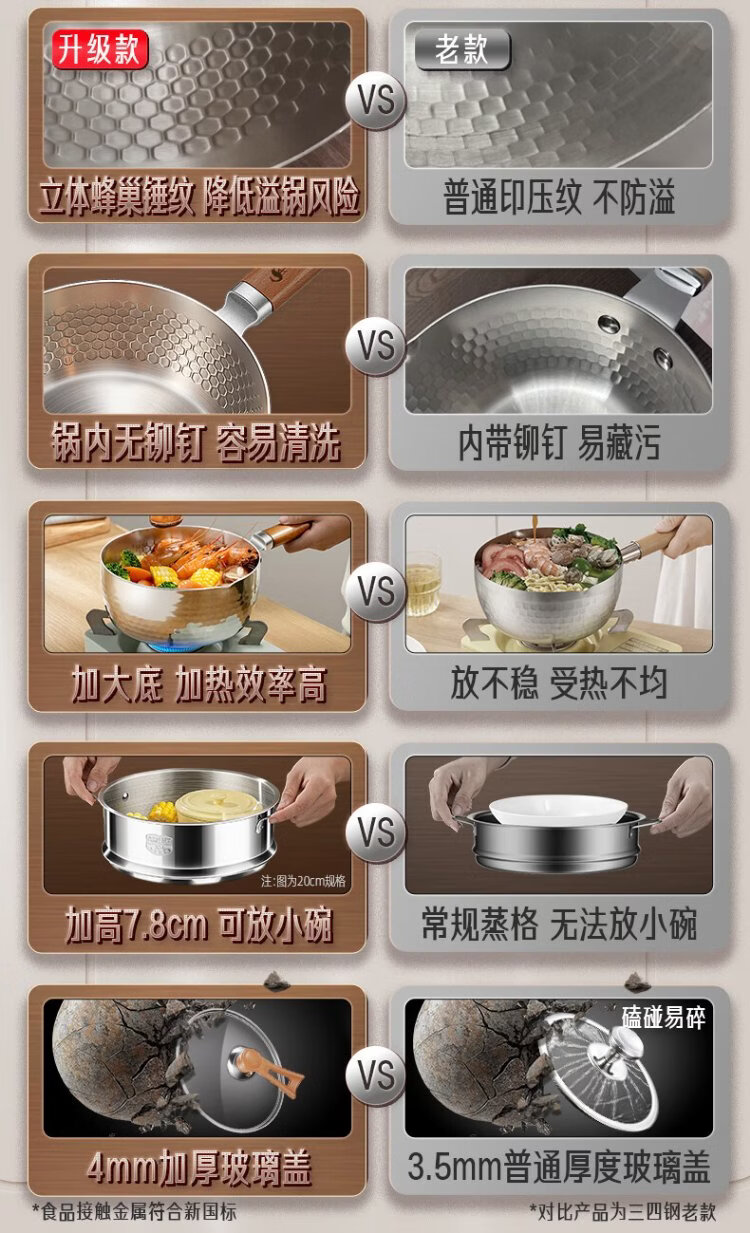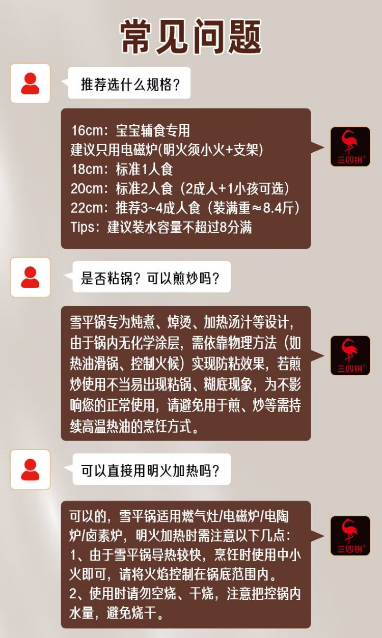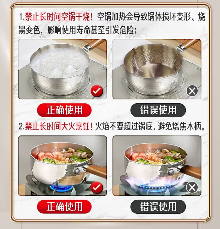 Sansi Steel Snow Ping Pan inner layer 316L stainless steel milk pot food supplement small soup pot instant noodle cooking pot 20cm food grade one-piece molding