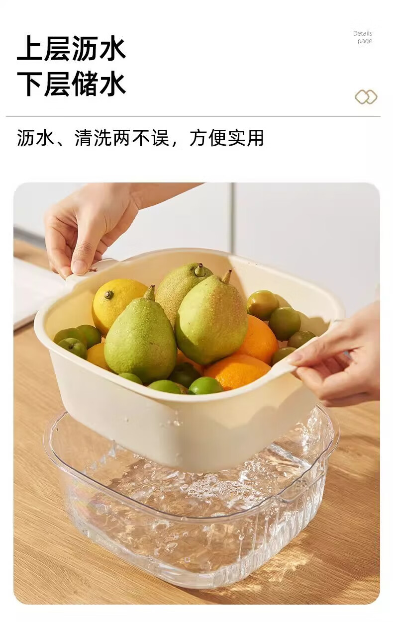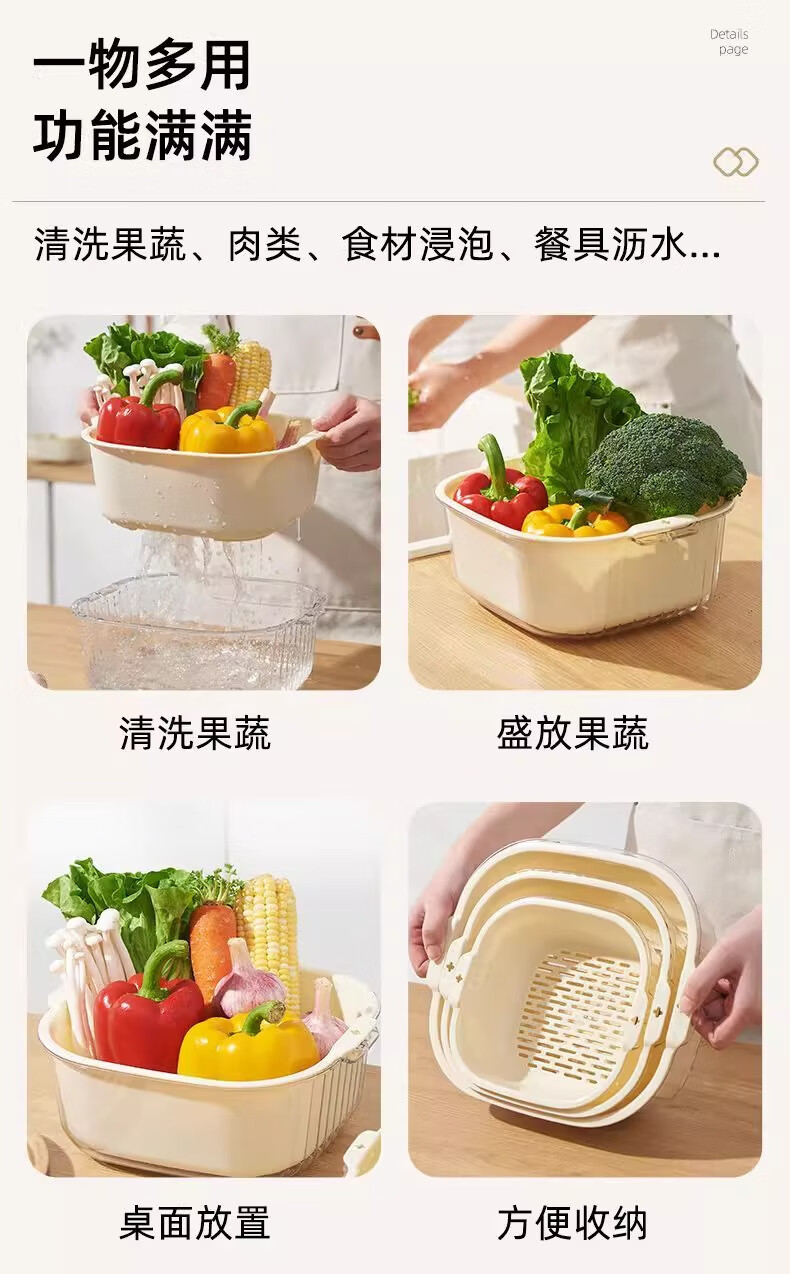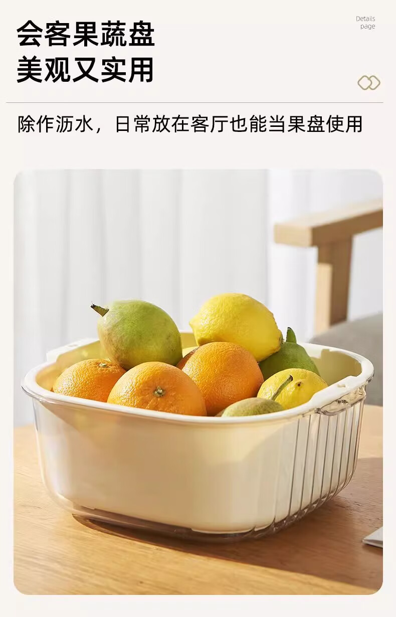 Added double-layered sink drain basket six-piece set for kitchen fruit plate living room household washing dish basin basket