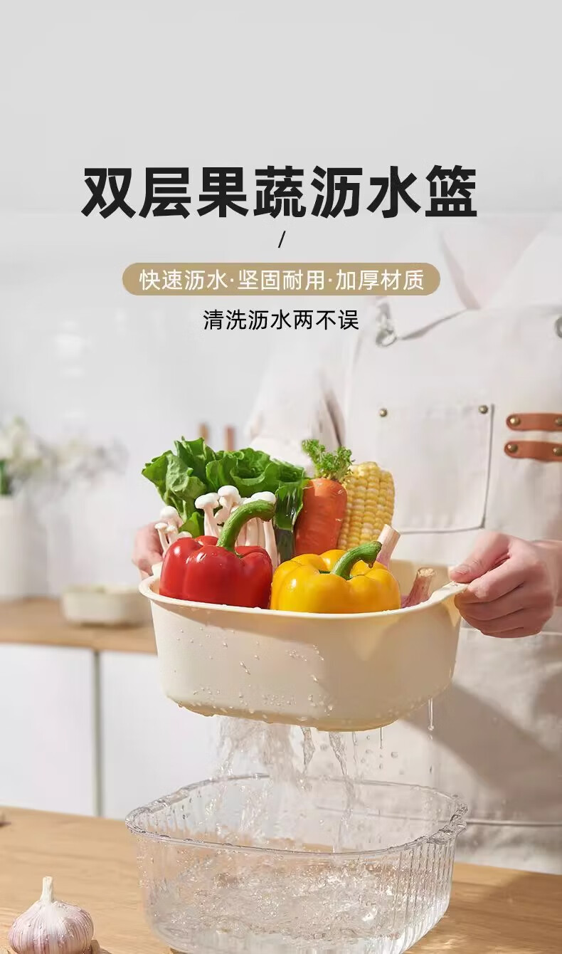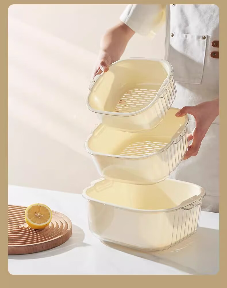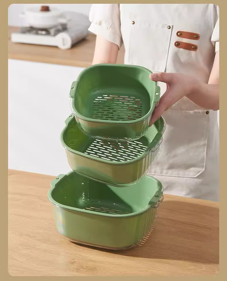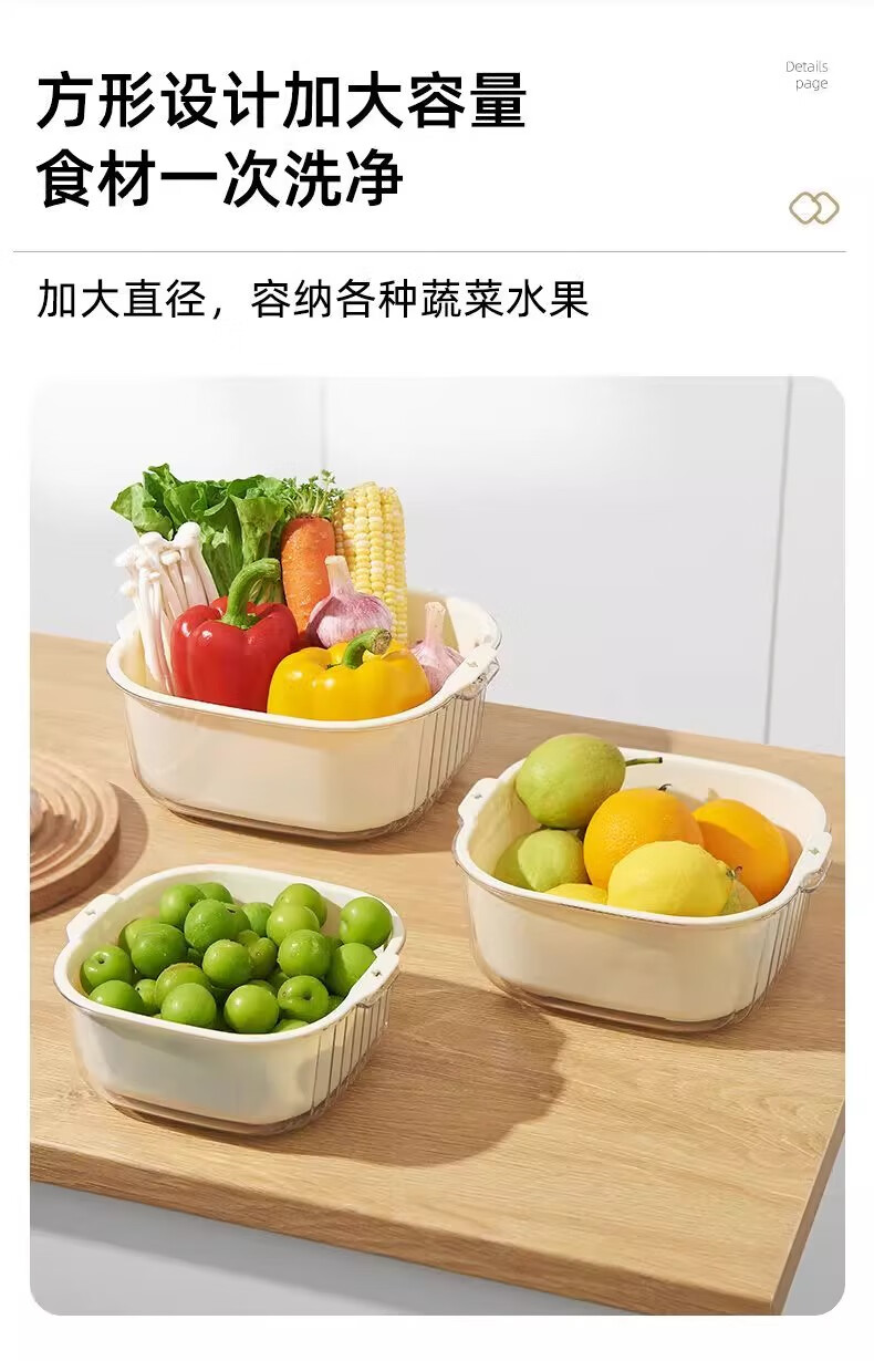 Added double-layered sink drain basket six-piece set for kitchen fruit plate living room household washing dish basin basket
