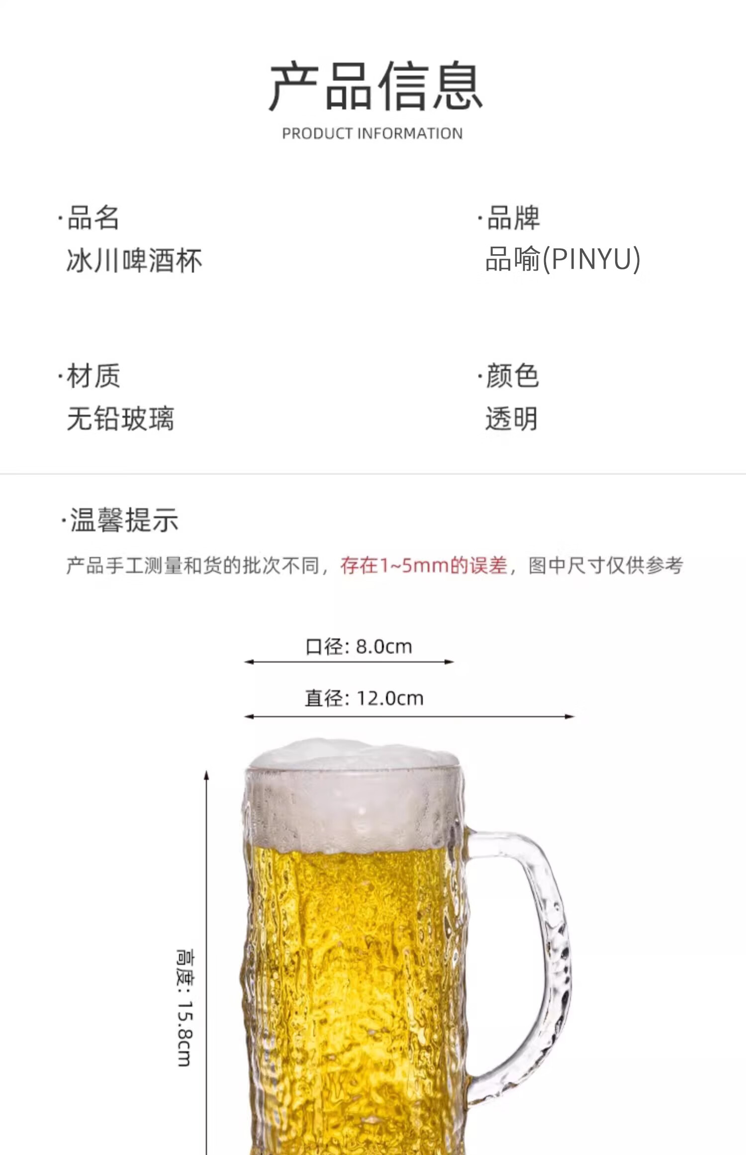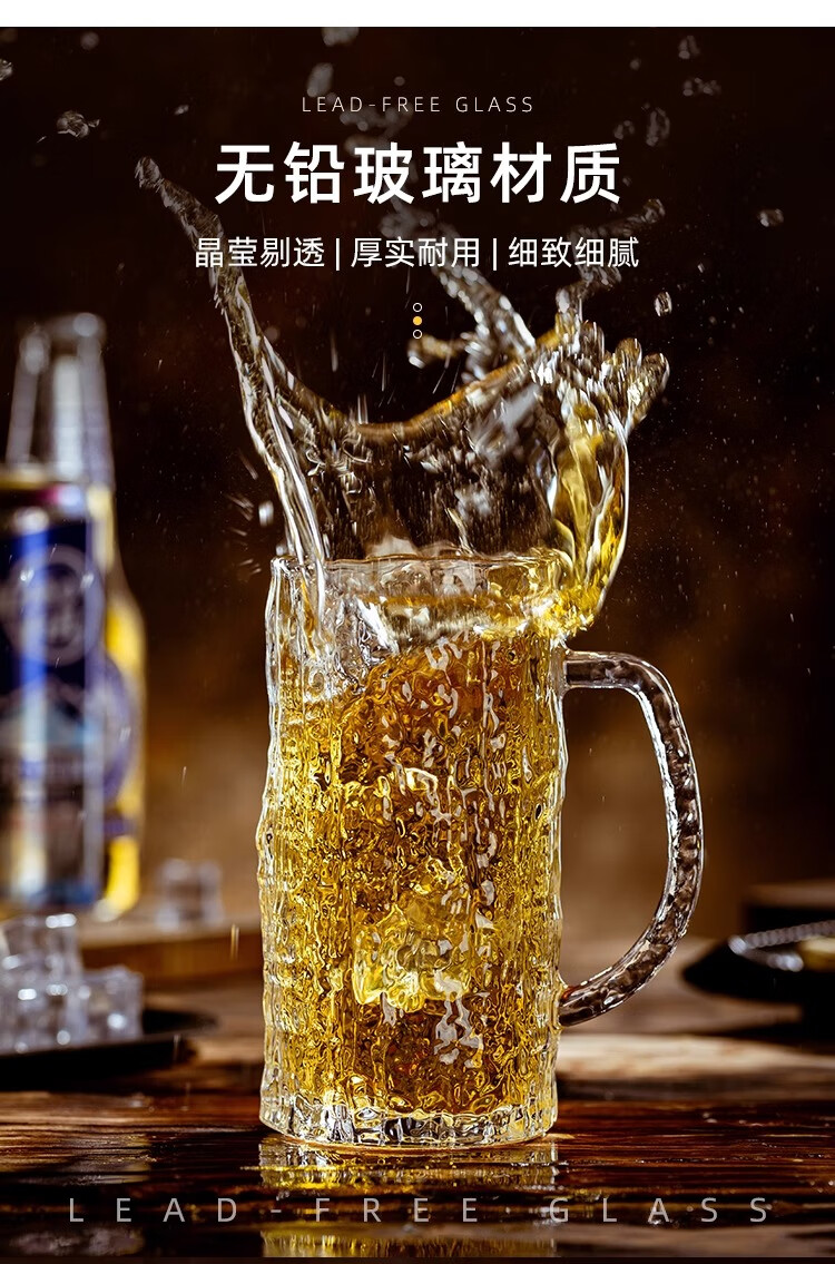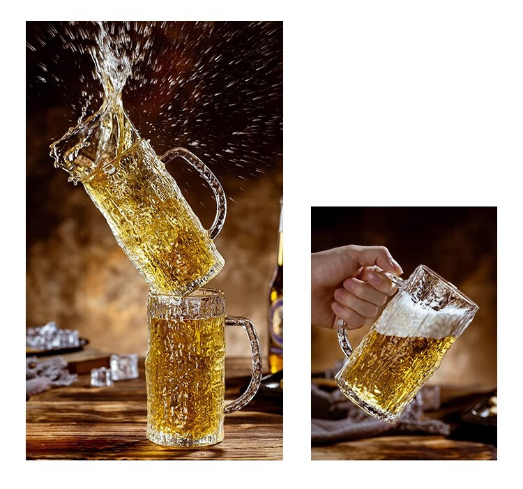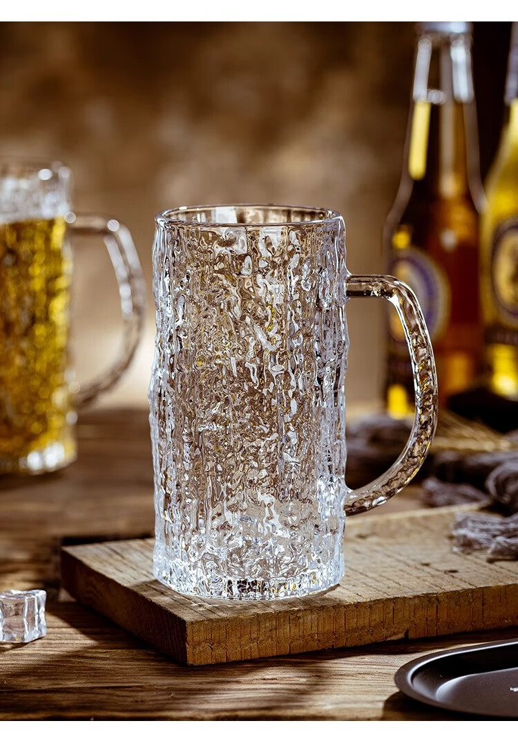 PINYU craft beer cup, high-end draft beer cup, Nordic style bar cup, high-looking glass cup with handle, 450ml 2 pieces