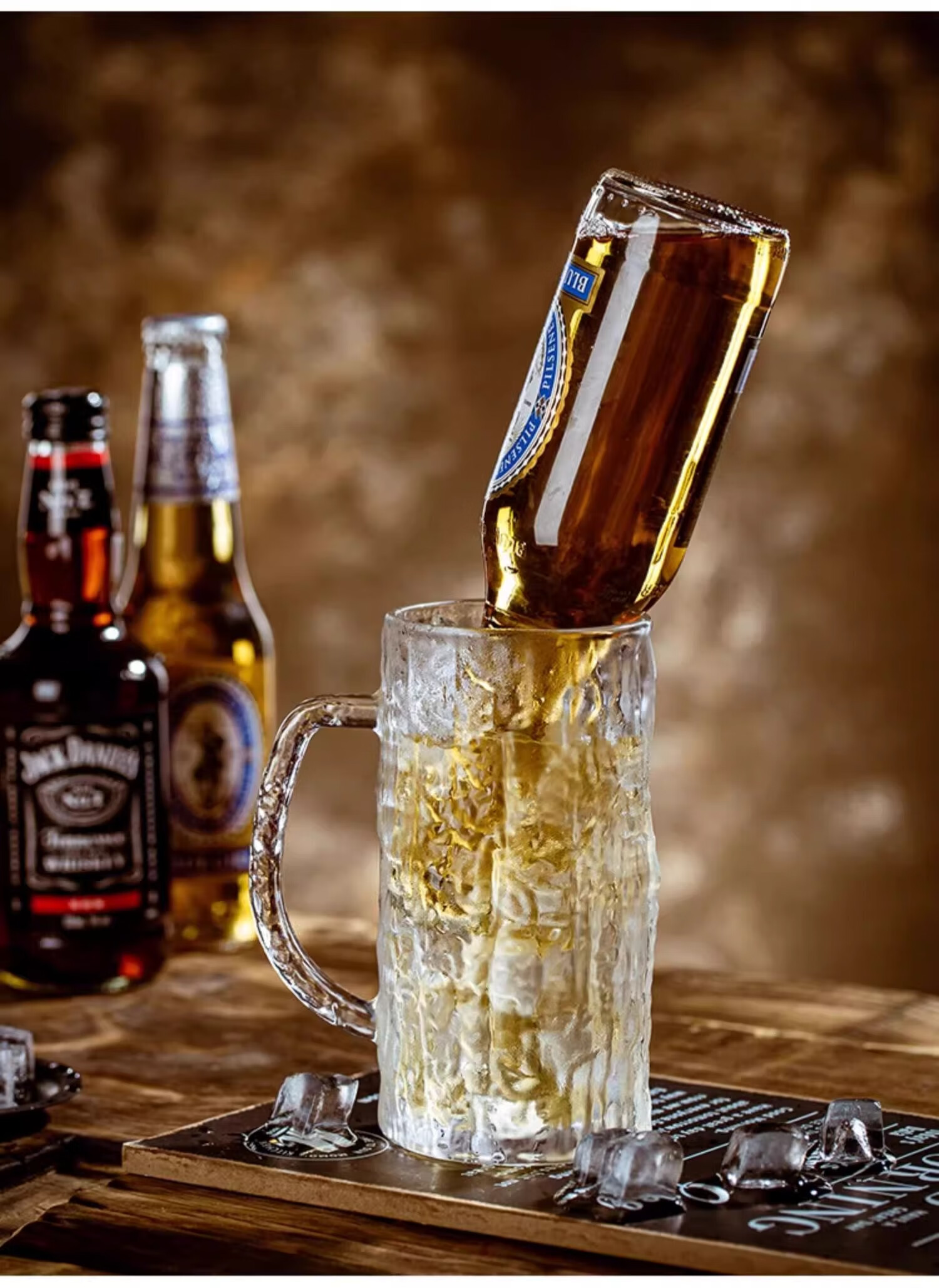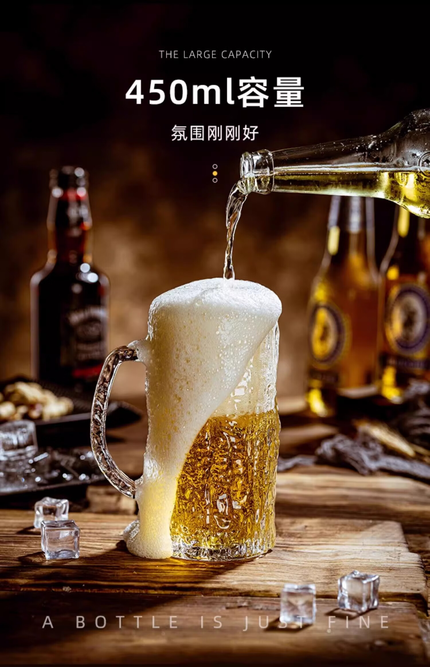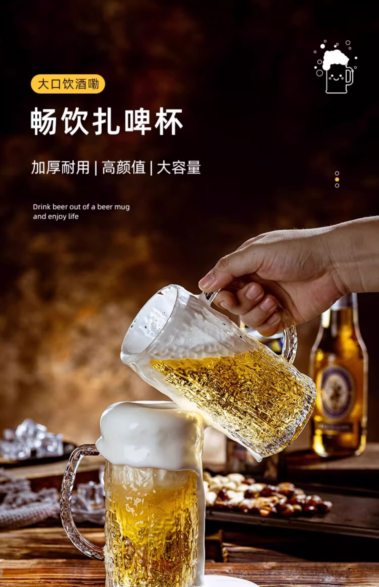 PINYU craft beer cup, high-end draft beer cup, Nordic style bar cup, high-looking glass cup with handle, 450ml 2 pieces