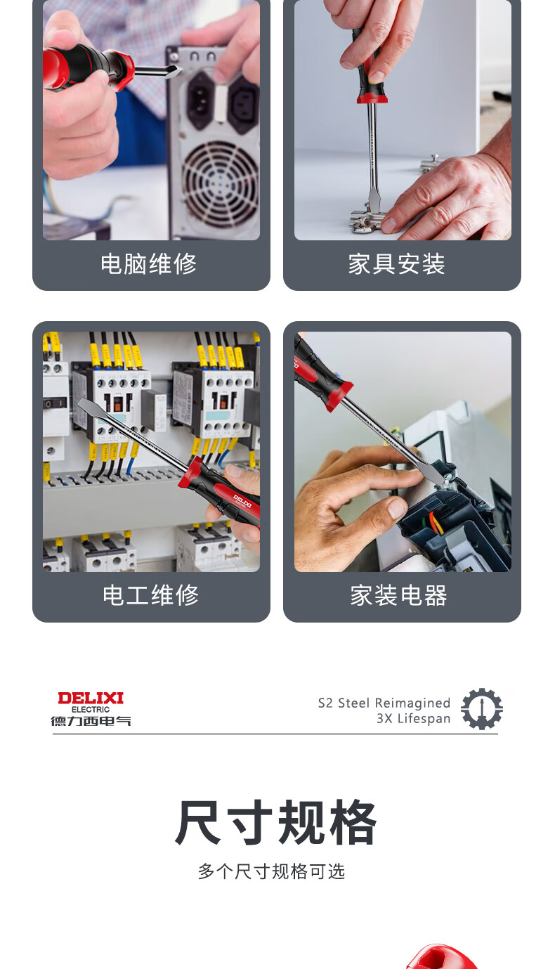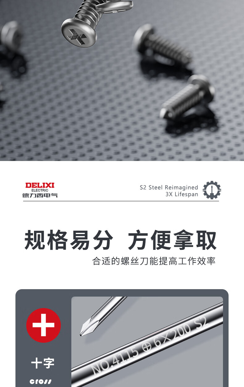 Delixi cross screwdriver set S2 flat mouth plum blossom tool repair small screwdriver 5mm 6-piece set