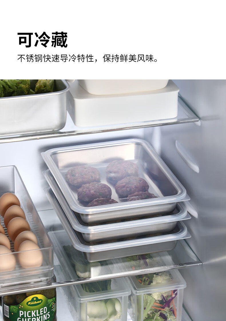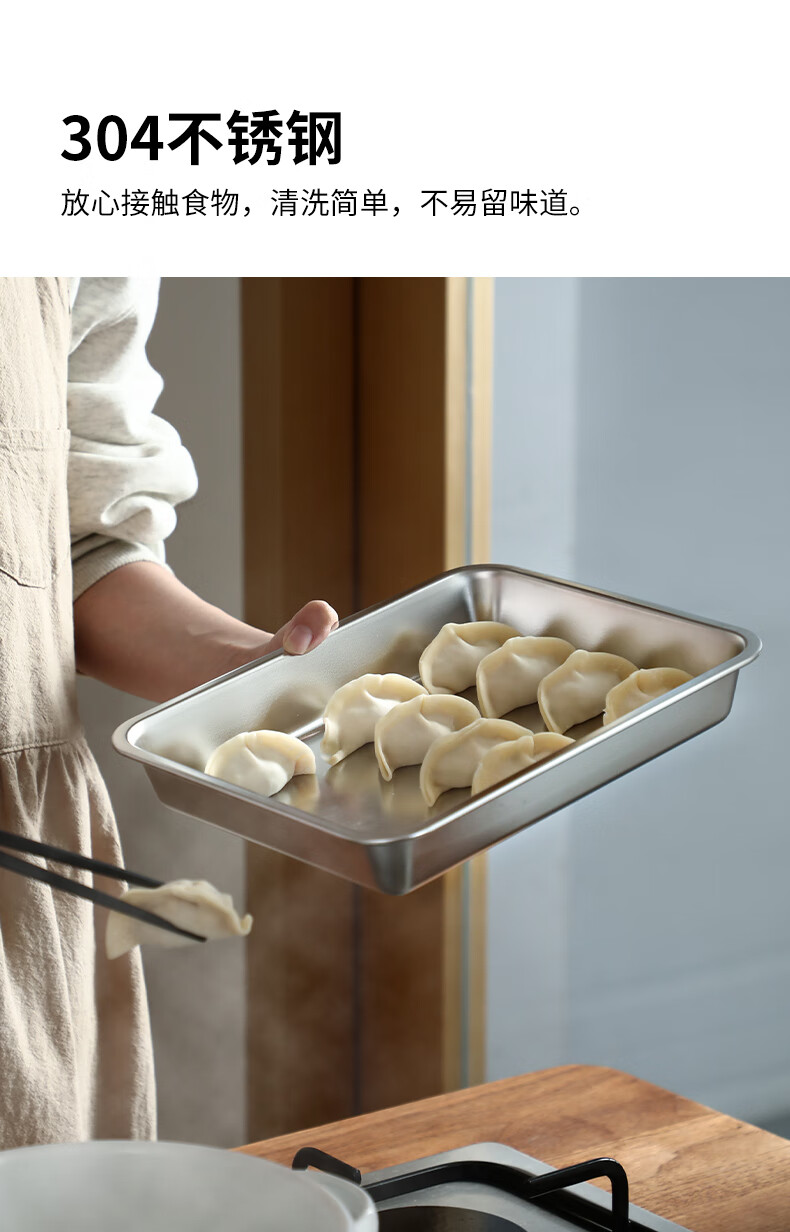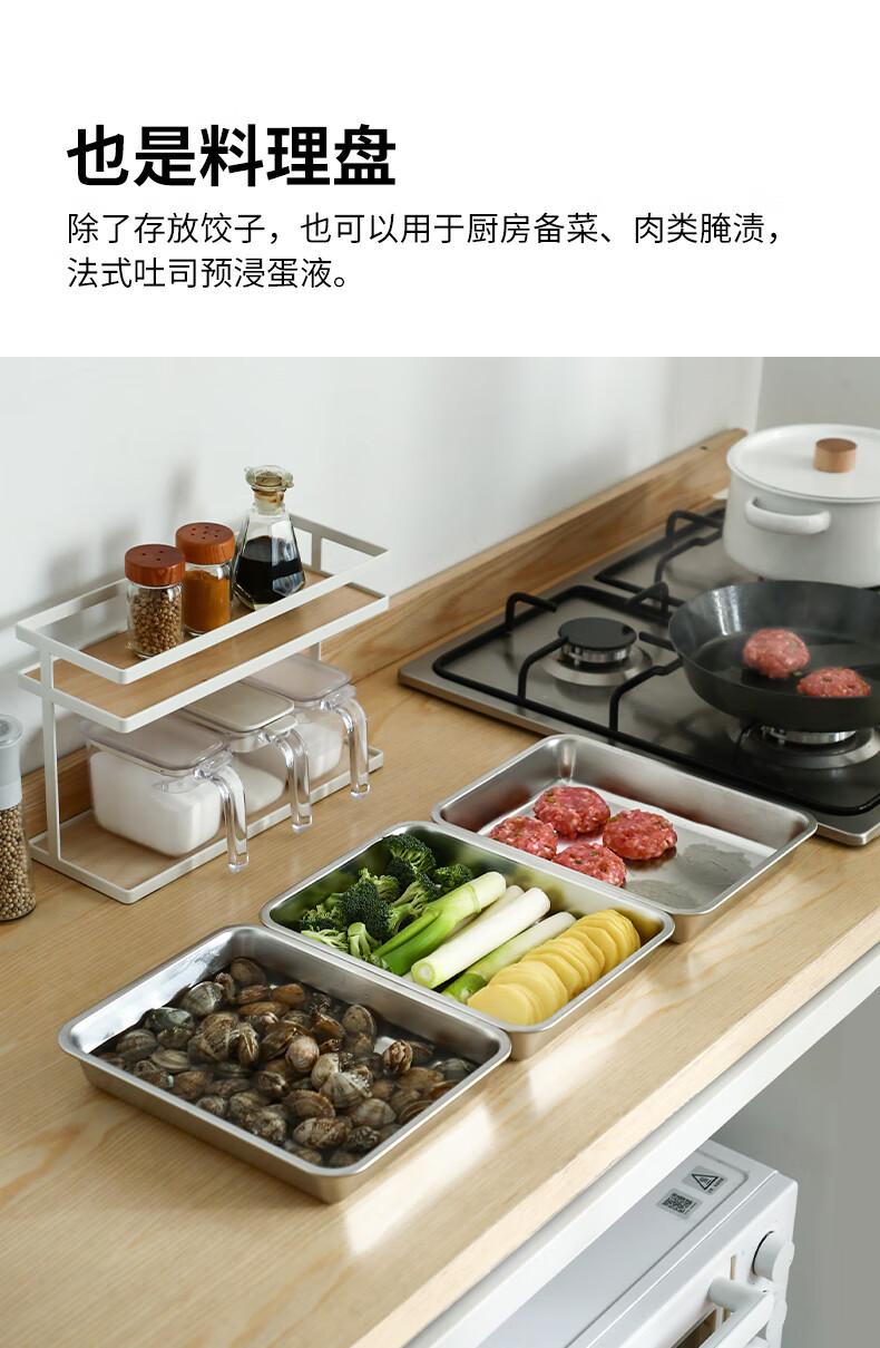 Shuangshan 304 stainless steel tray kitchen food preparation household wonton dumplings refrigerator frozen storage box with lid