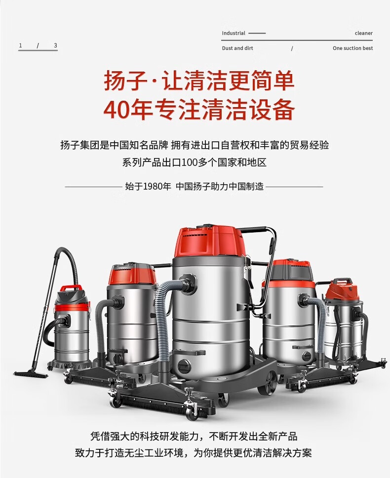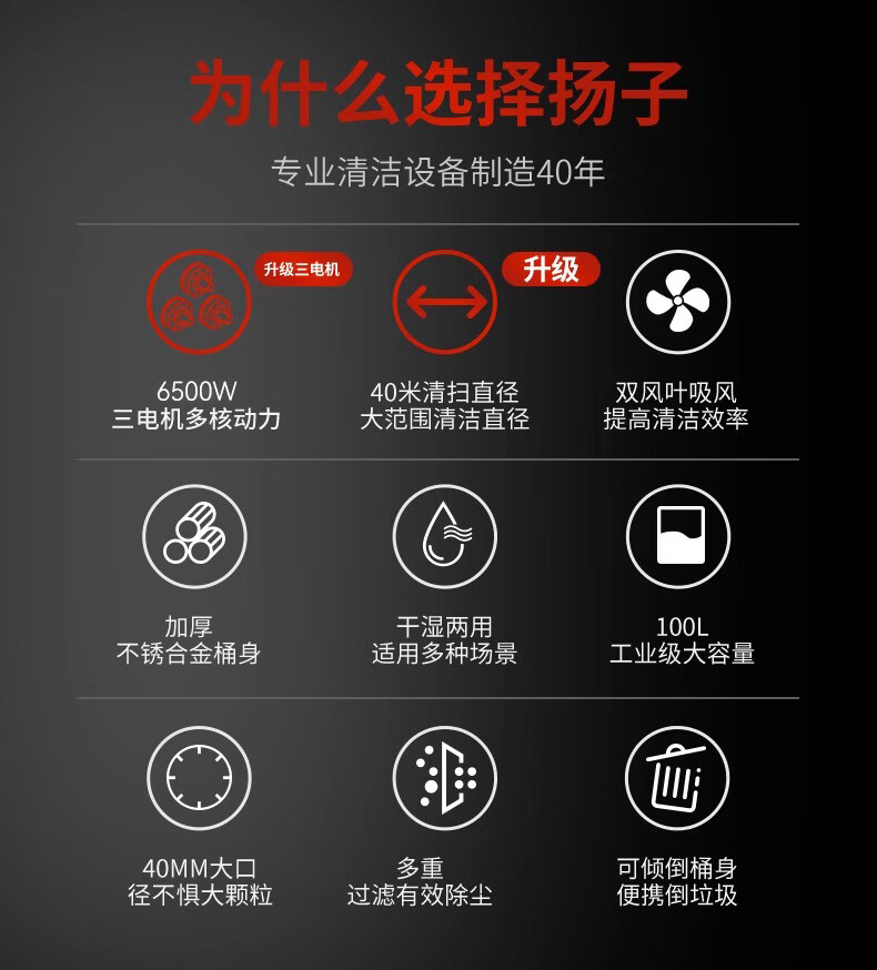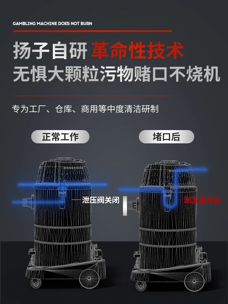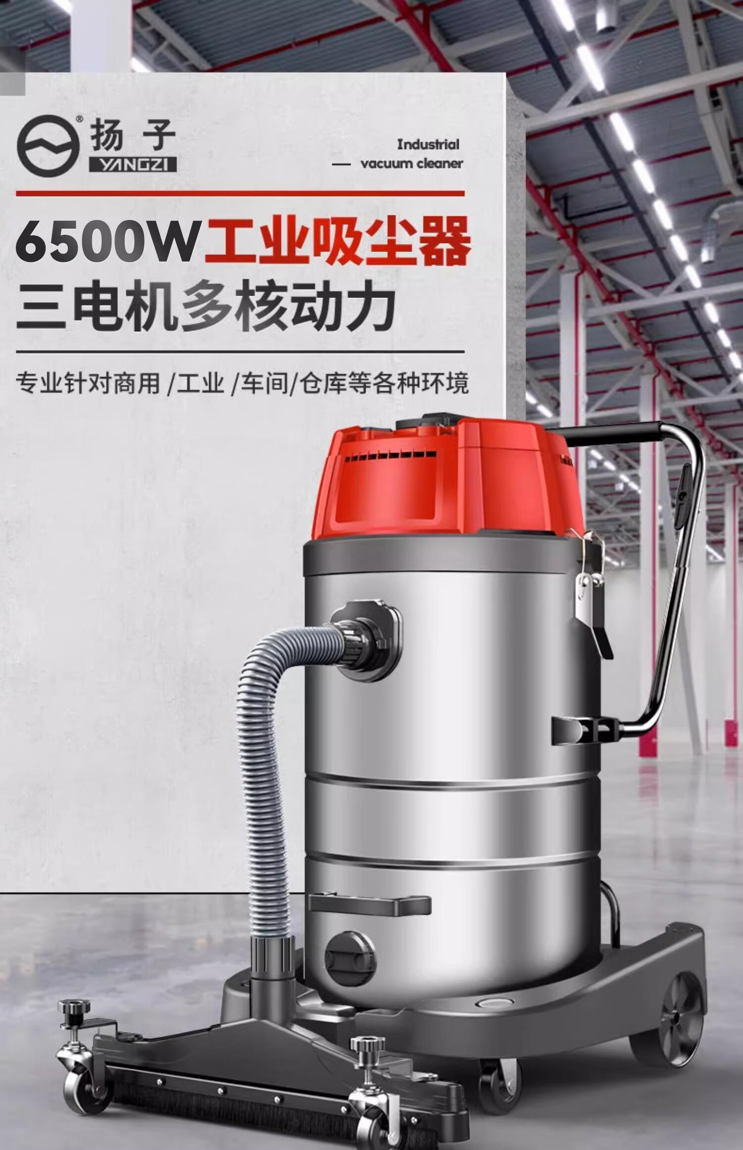 Yangzi 6500W industrial vacuum cleaner factory workshop dust large suction high power powerful commercial vacuum cleaner YZ-650A-6-100L upgraded push suction version
