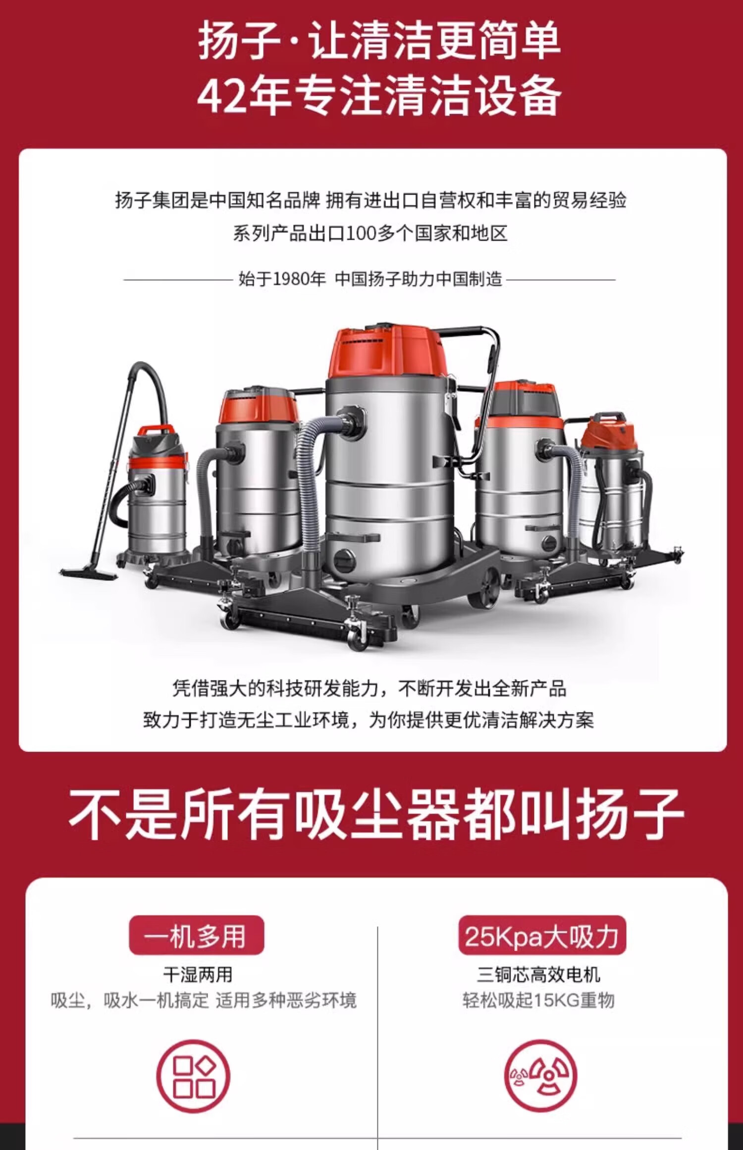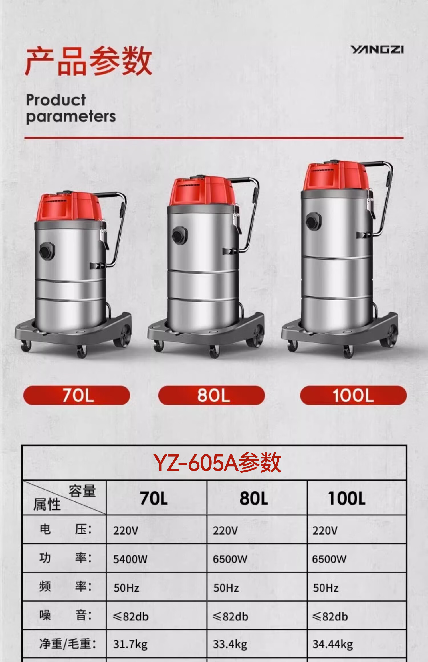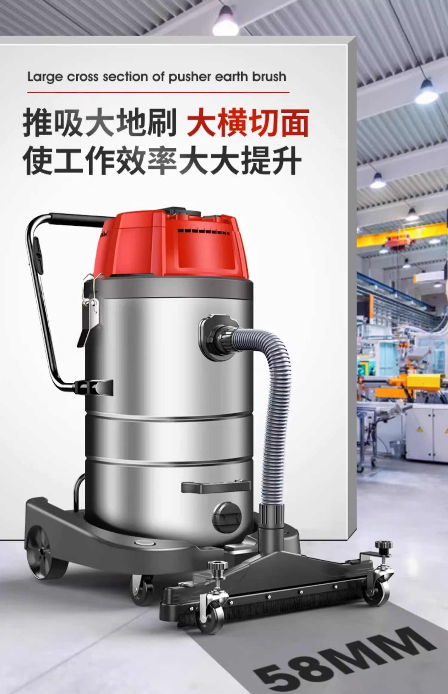 Yangzi 6500W industrial vacuum cleaner factory workshop dust large suction high power powerful commercial vacuum cleaner YZ-650A-6-100L upgraded push suction version