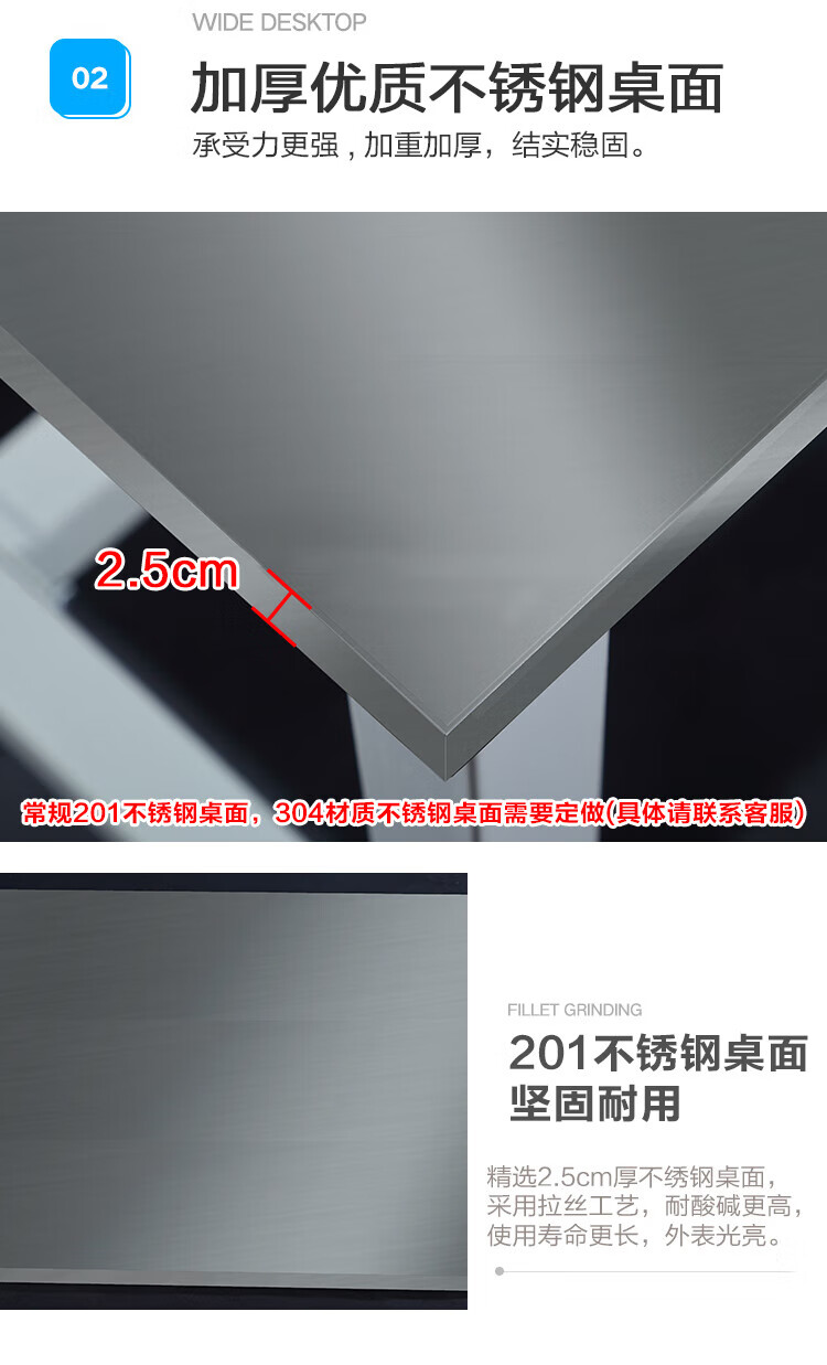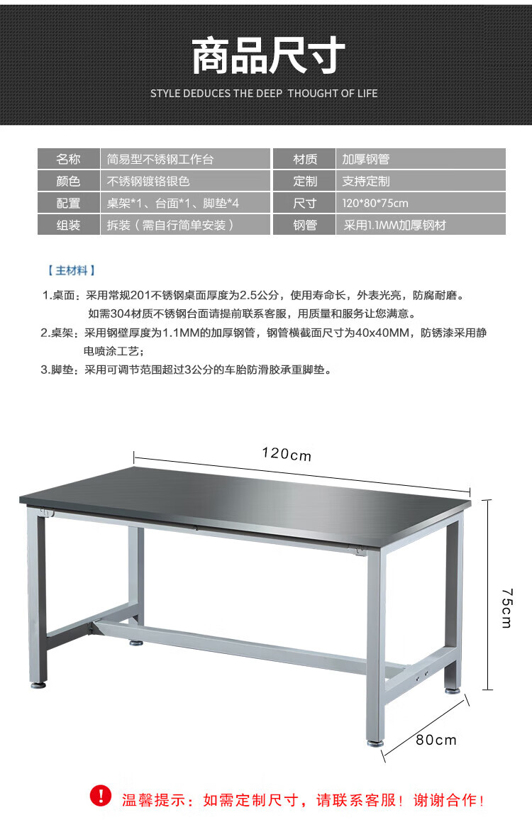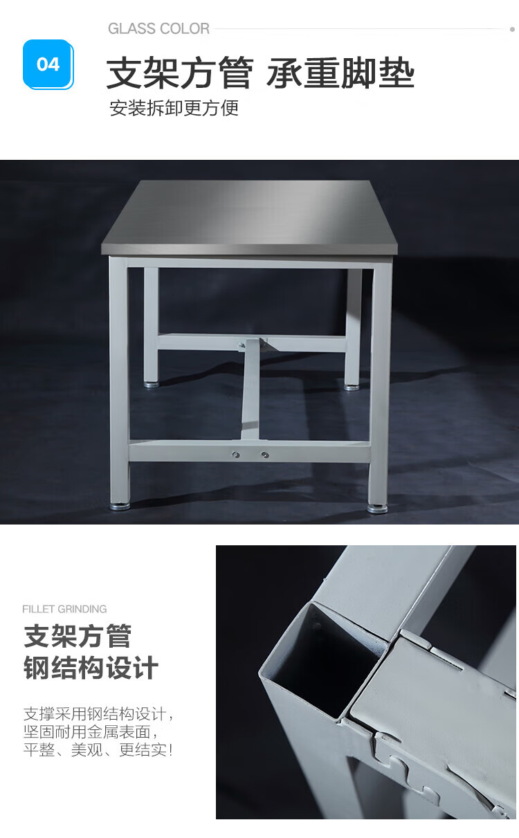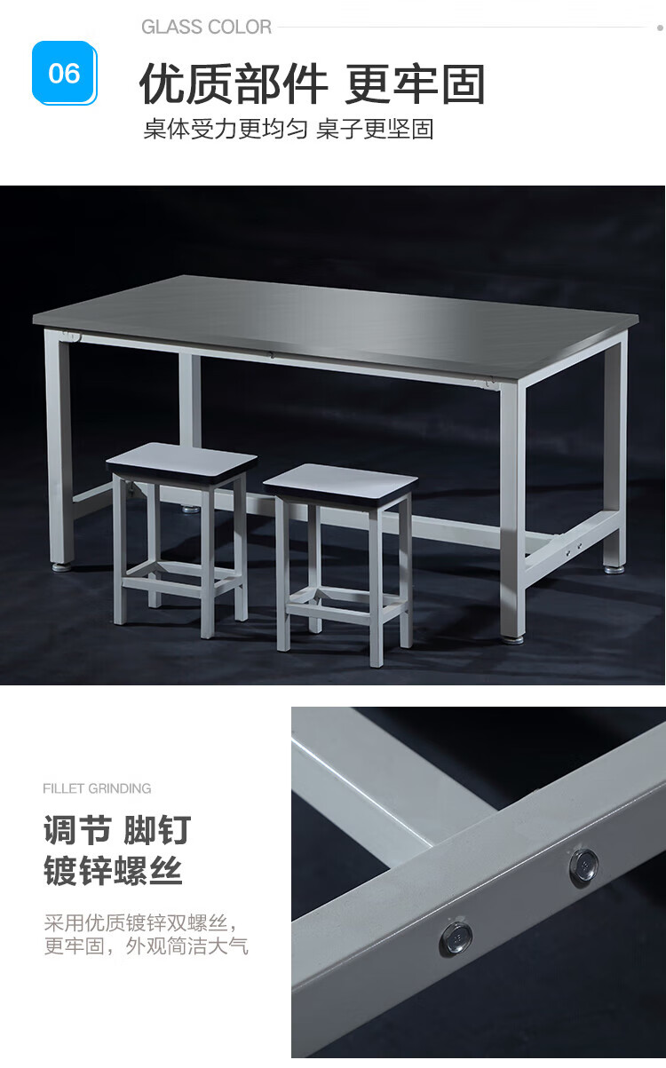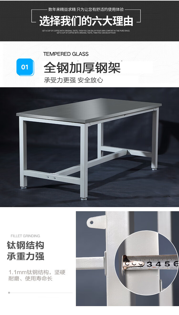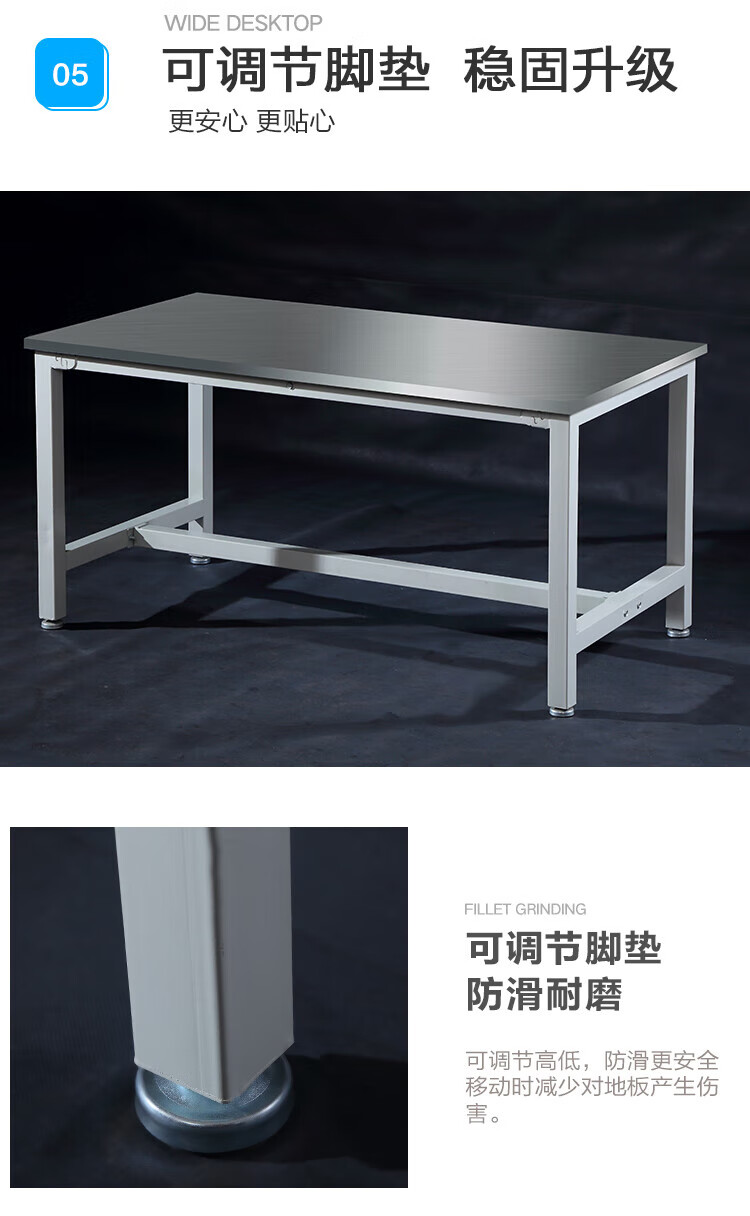 Baigang 201 stainless steel workbench laboratory instrument table assembly line operating table stainless steel operating table packaging 240*115*75cm 6 legs stainless steel surface