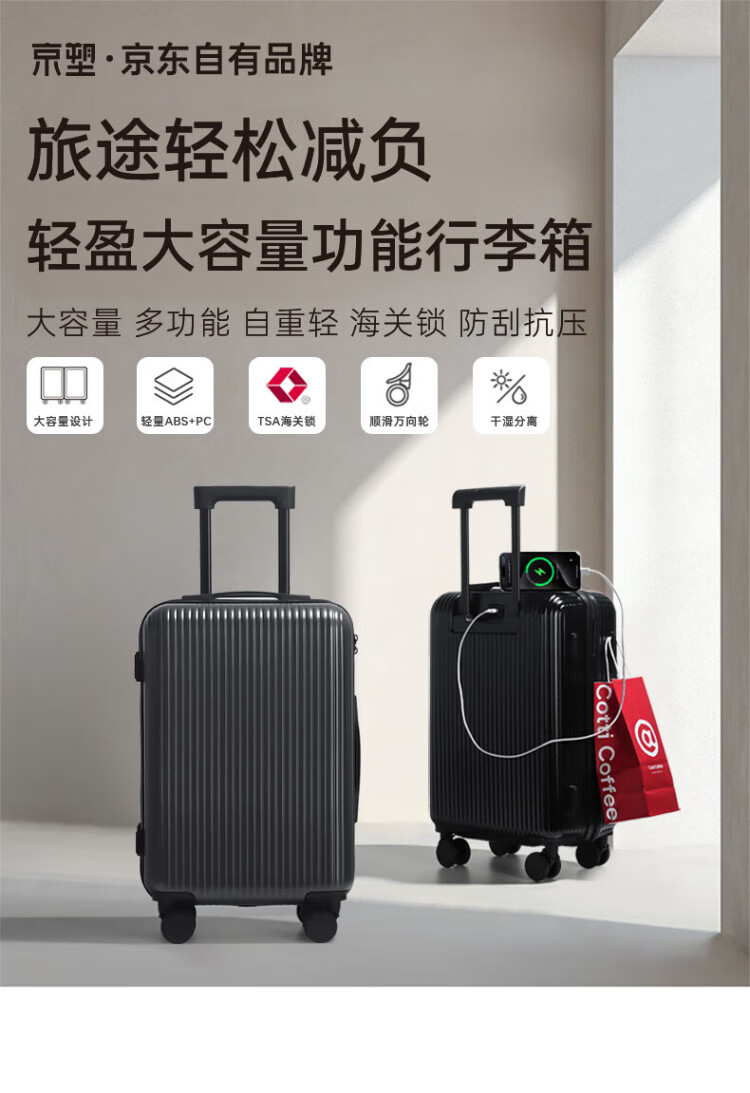 Jingsu suitcase women's boarding case trolley case men's suitcase lightweight student password suitcase 20 inches black