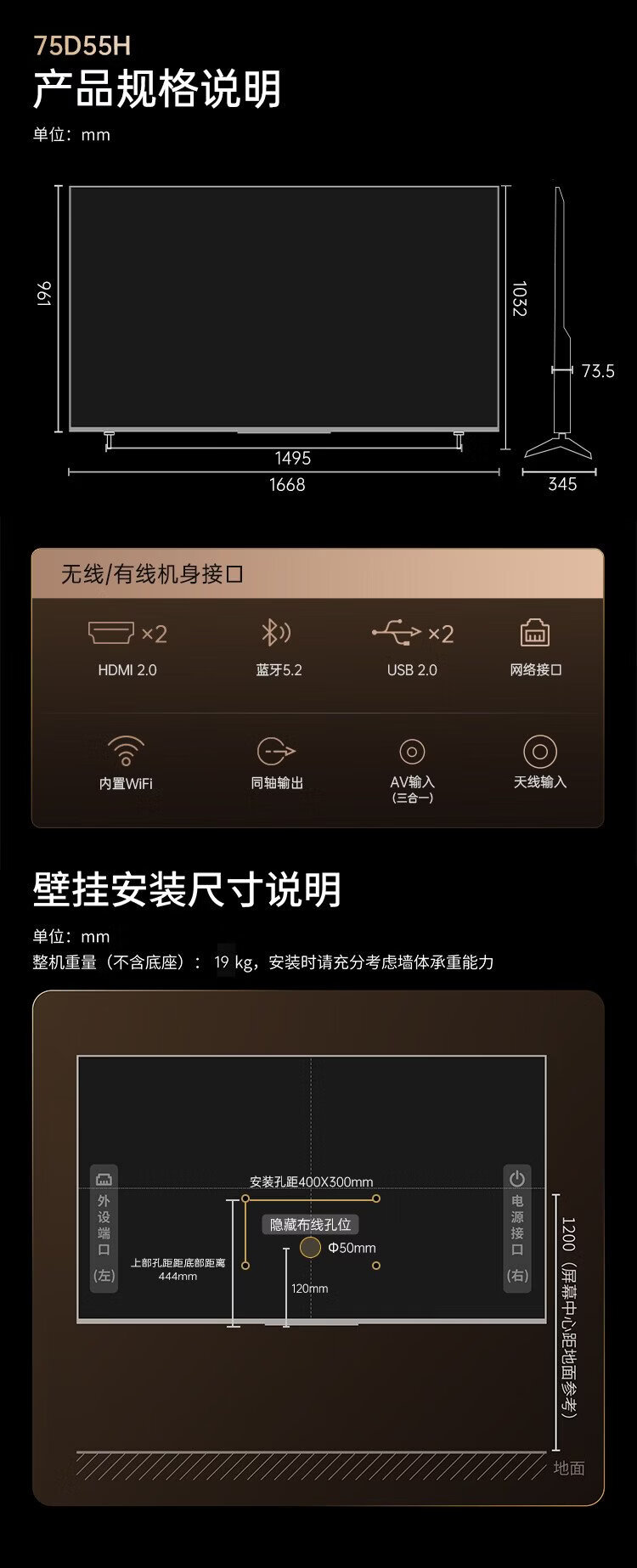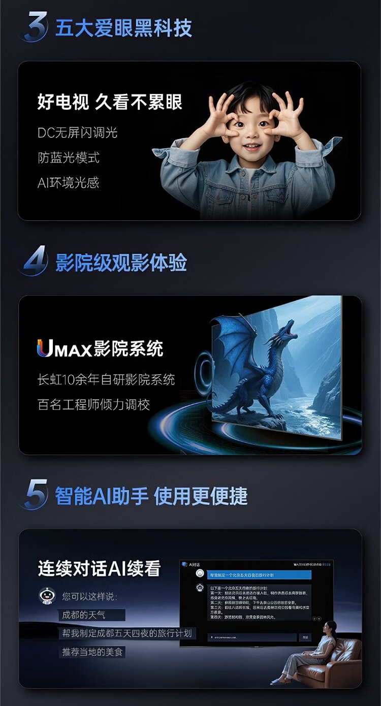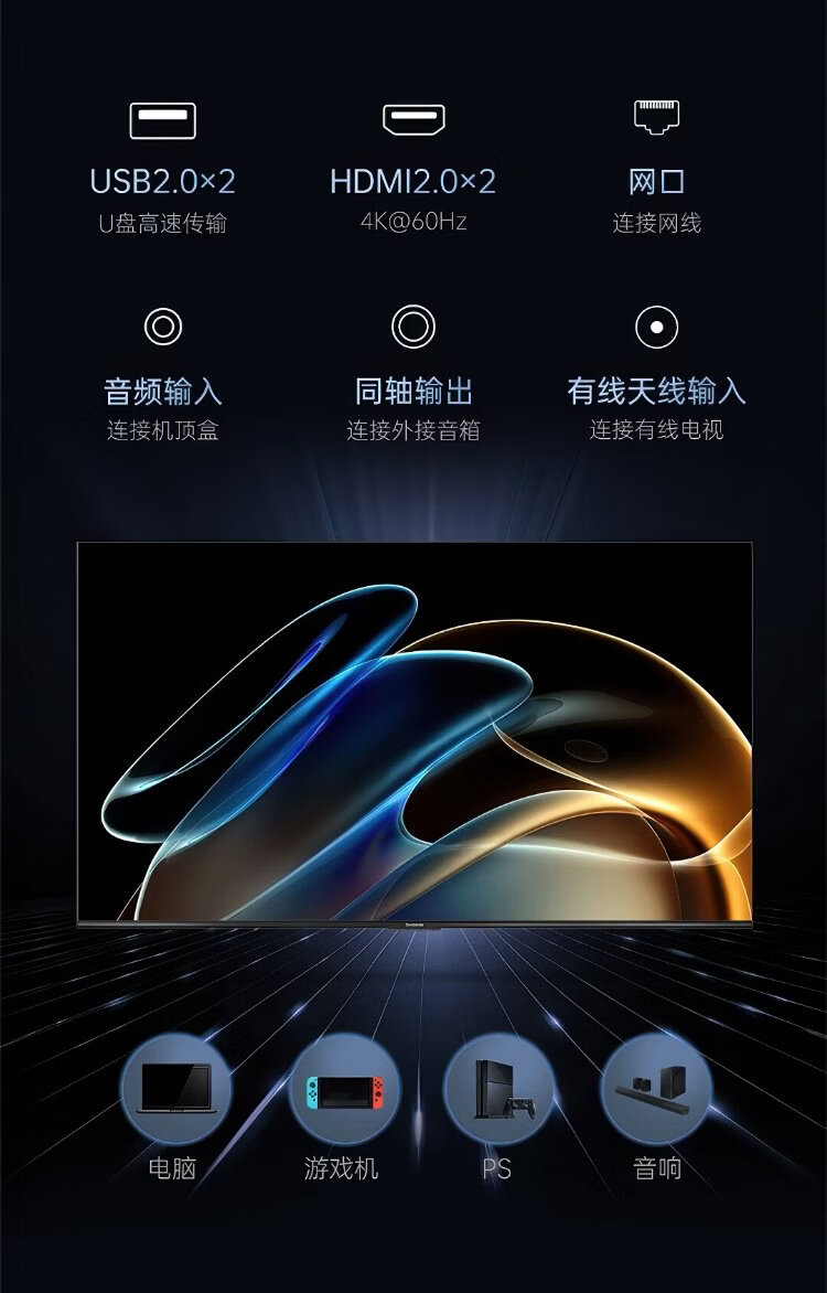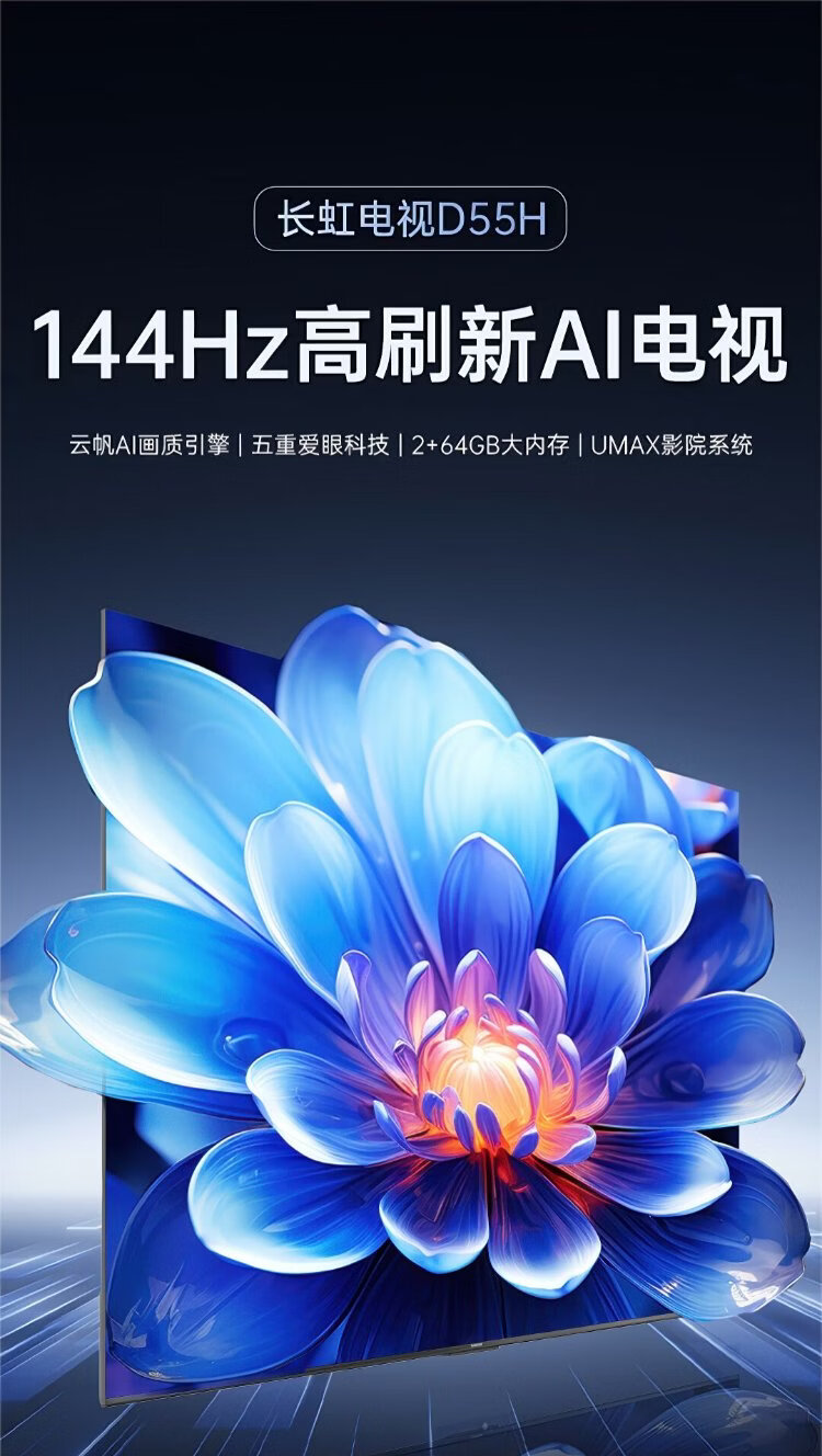 Changhong TV 75D55H 75-inch 4K ultra-high definition 144Hz high refresh rate 2+64GB large memory LED LCD flat-panel TV 15% national subsidy