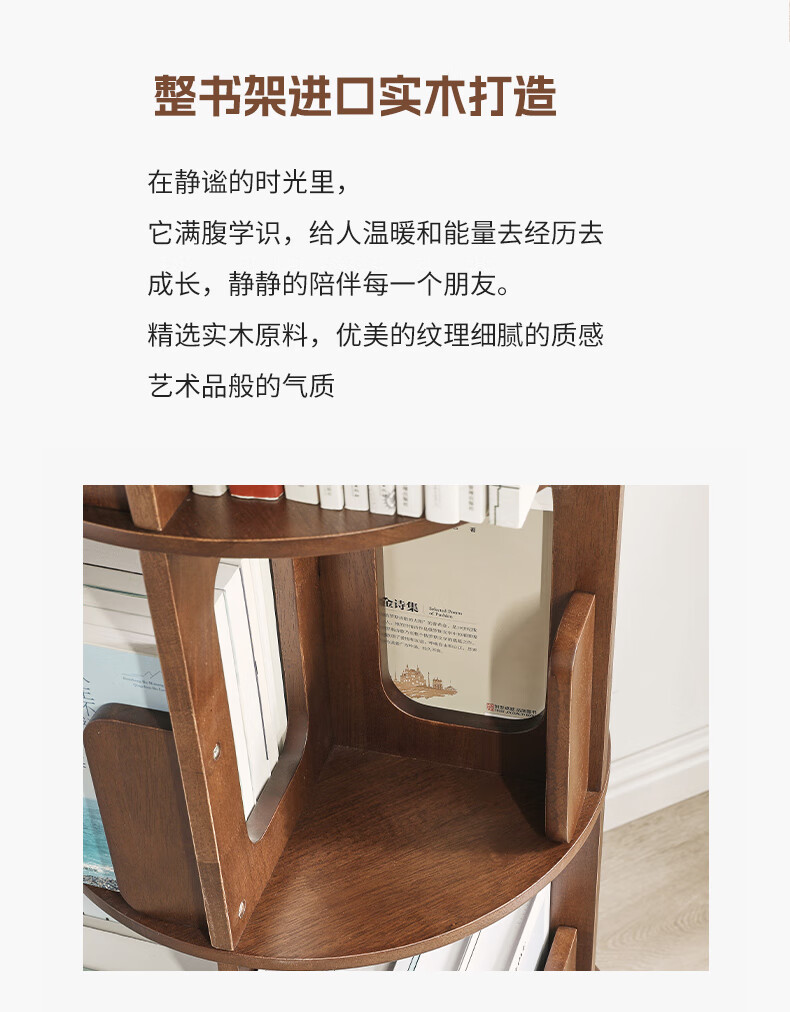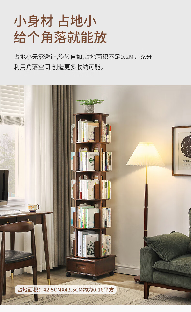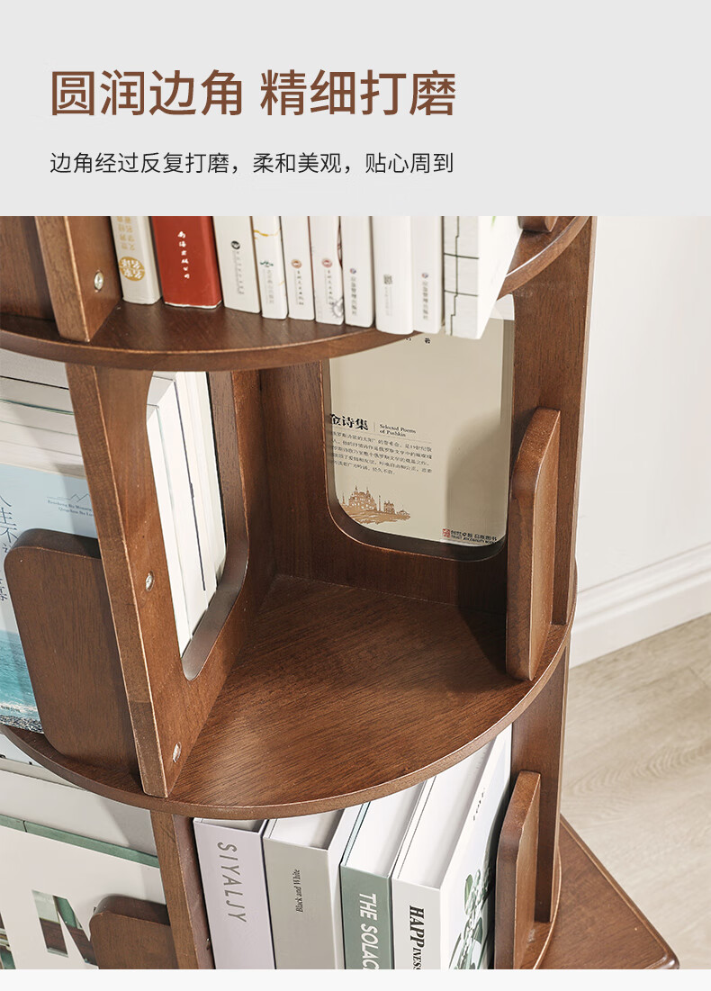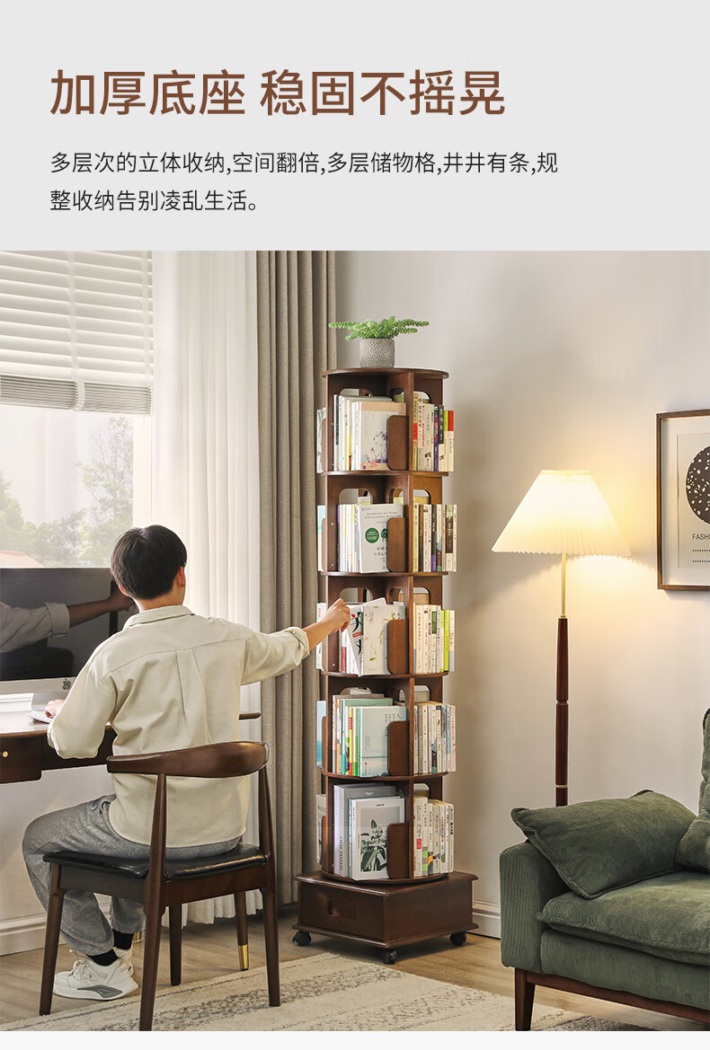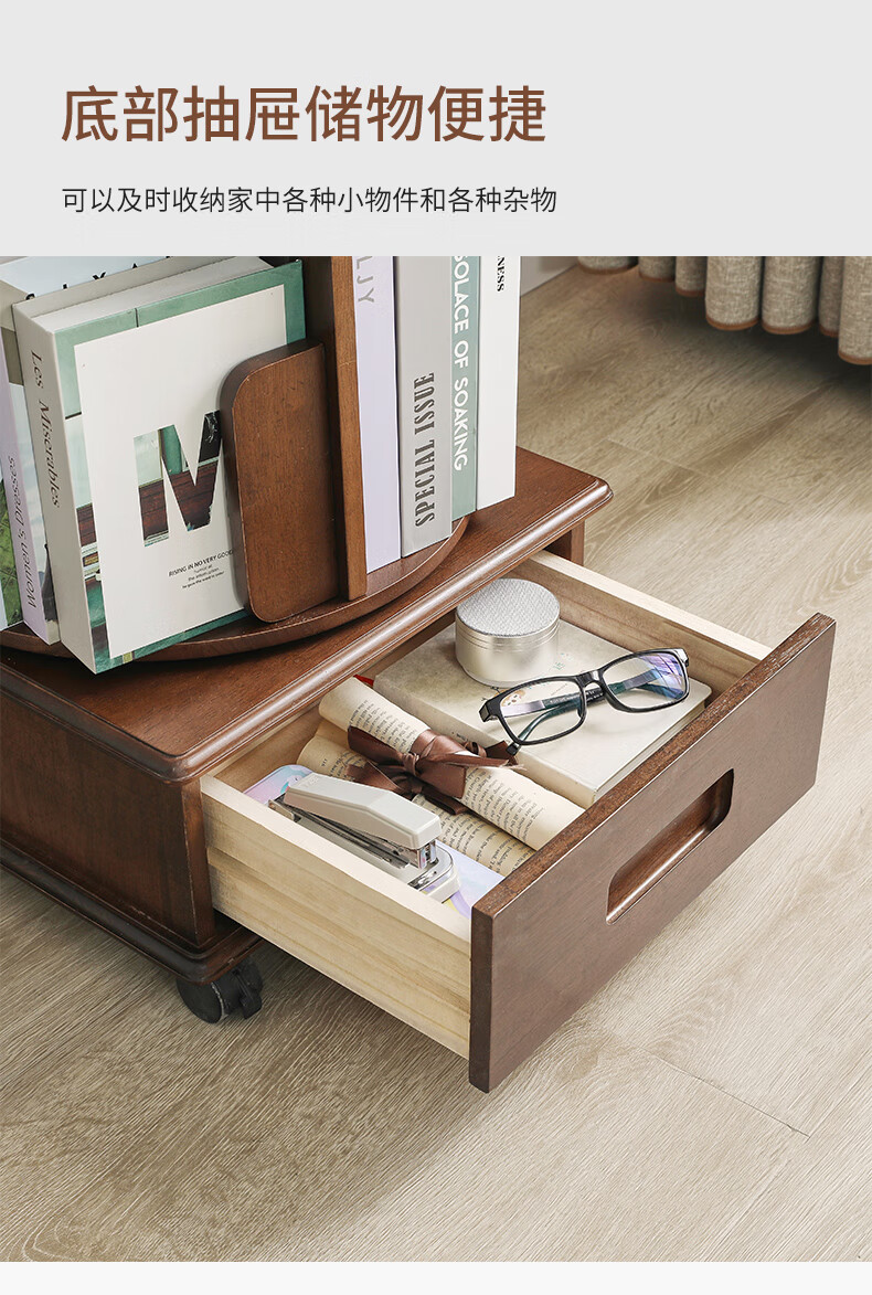 Jiayi rotating bookshelf floor-standing storage rack solid wood bookcase with wheels removable shelf floor-standing drawer storage rack