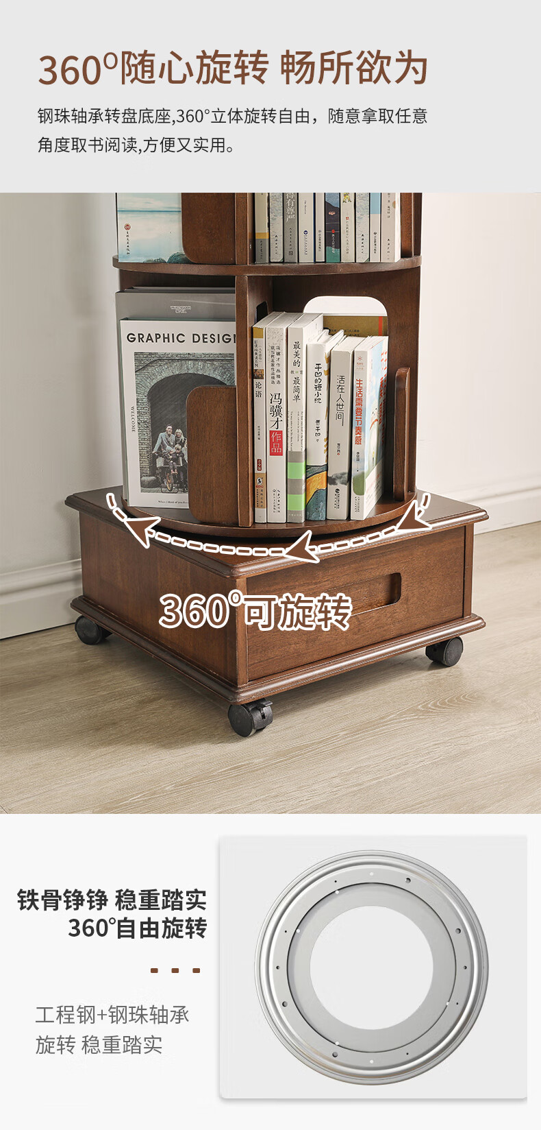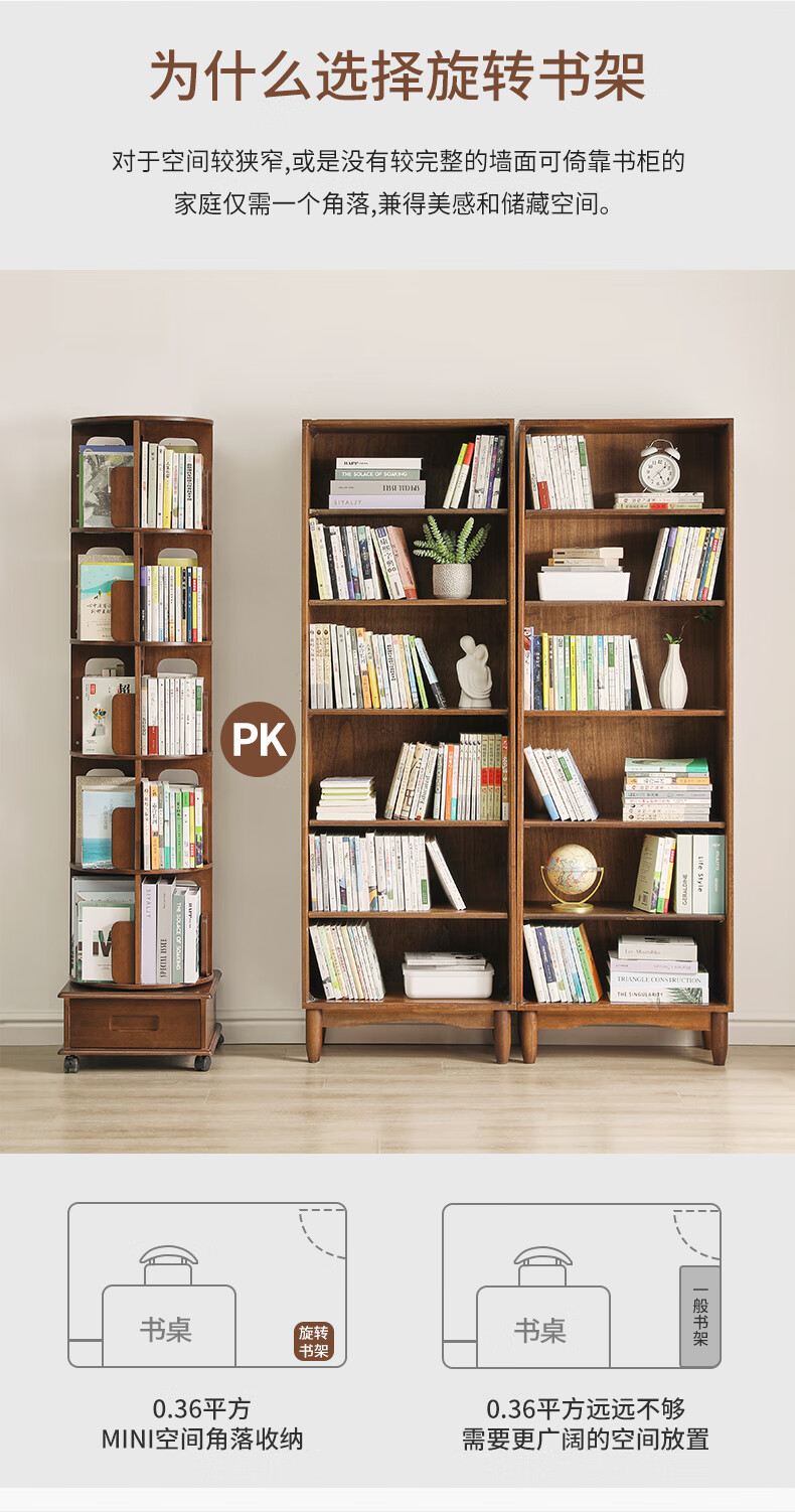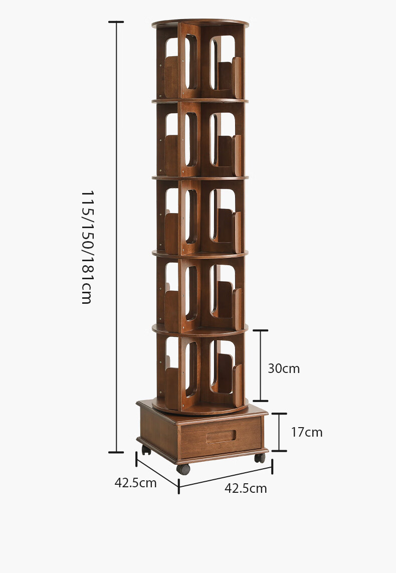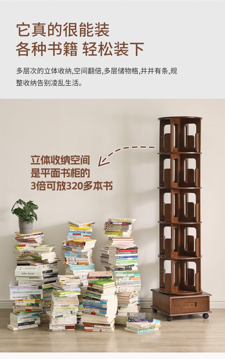 Jiayi rotating bookshelf floor-standing storage rack solid wood bookcase with wheels removable shelf floor-standing drawer storage rack