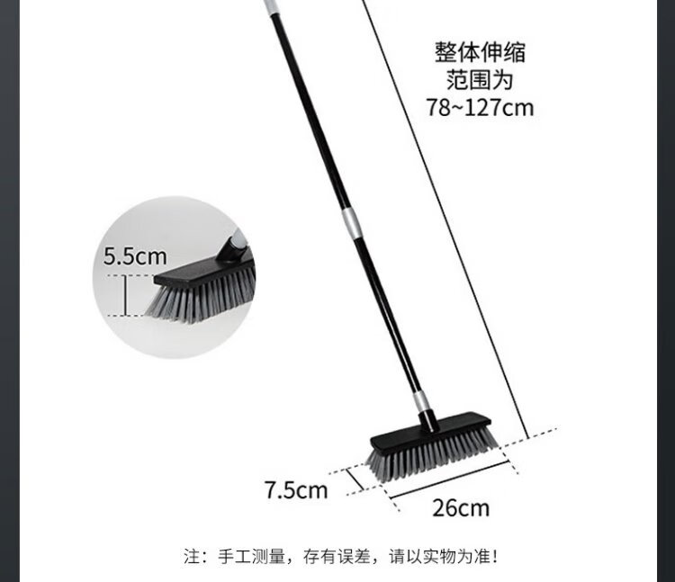 Deqi hard bristle floor brush, tile scrubbing brush, bathroom brush, long handle retractable floor brush cleaning tool, 26cm floor scrubbing brush