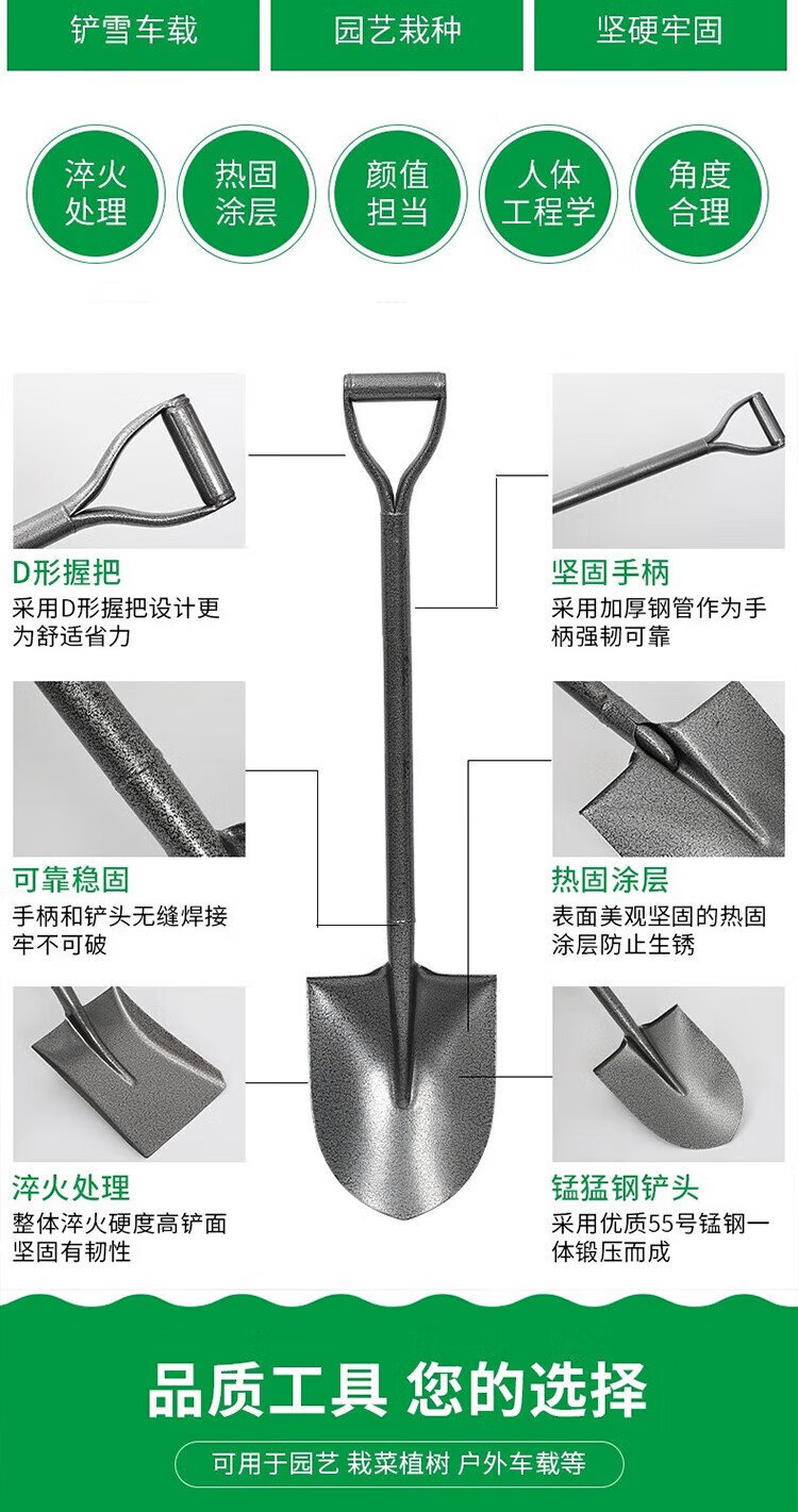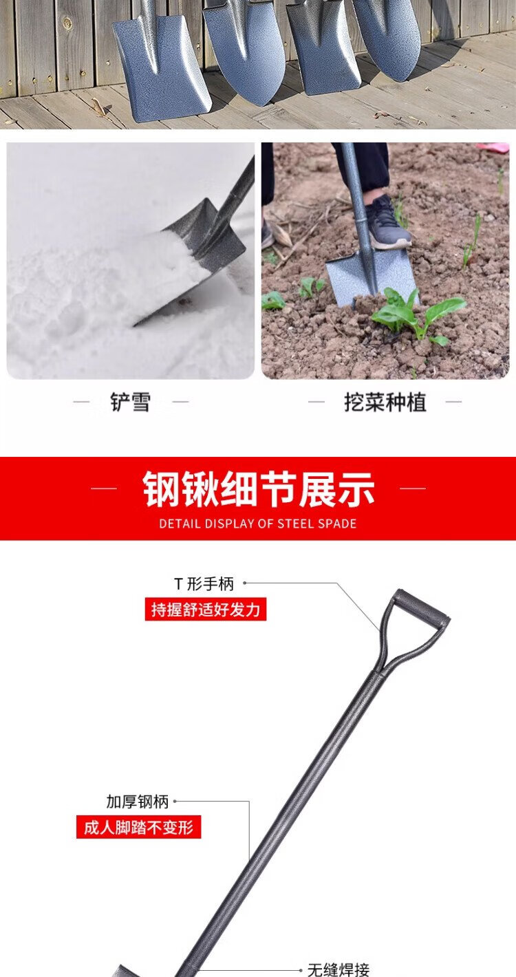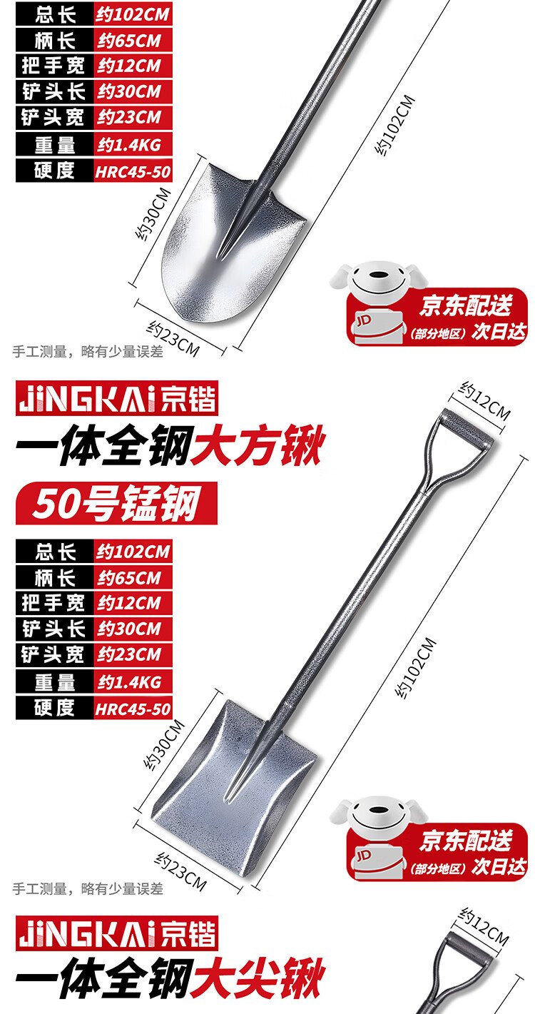 Jingkai shovel shovel shovel digging tip shovel flat head vehicle-mounted manganese steel snow removal fire shovel snow agricultural use 1.2m tip