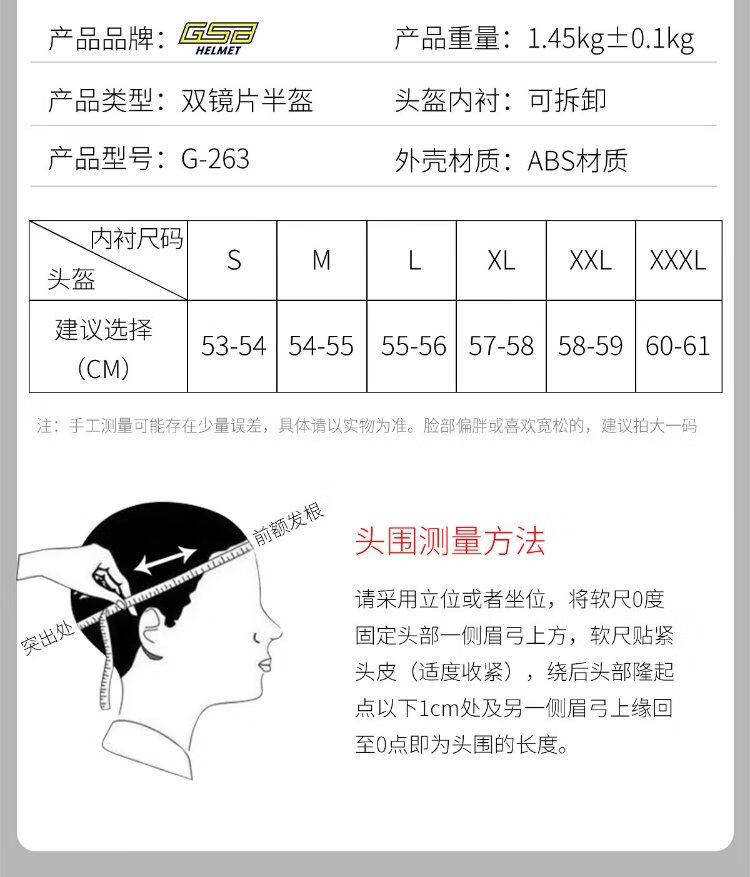 GSBgsb helmet G-263 motorcycle helmet Bluetooth headset dual lens 3C certified winter warm 3/4 helmet