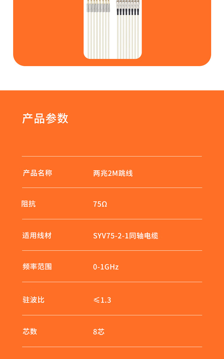 Rentian DDF rack computer room 2M Gigabit E1 finished jumper SYV75-2-1 coaxial cable 8-core BNC male-CC4 male 8 meters 1 piece E8/BNC/CC4-JJ80