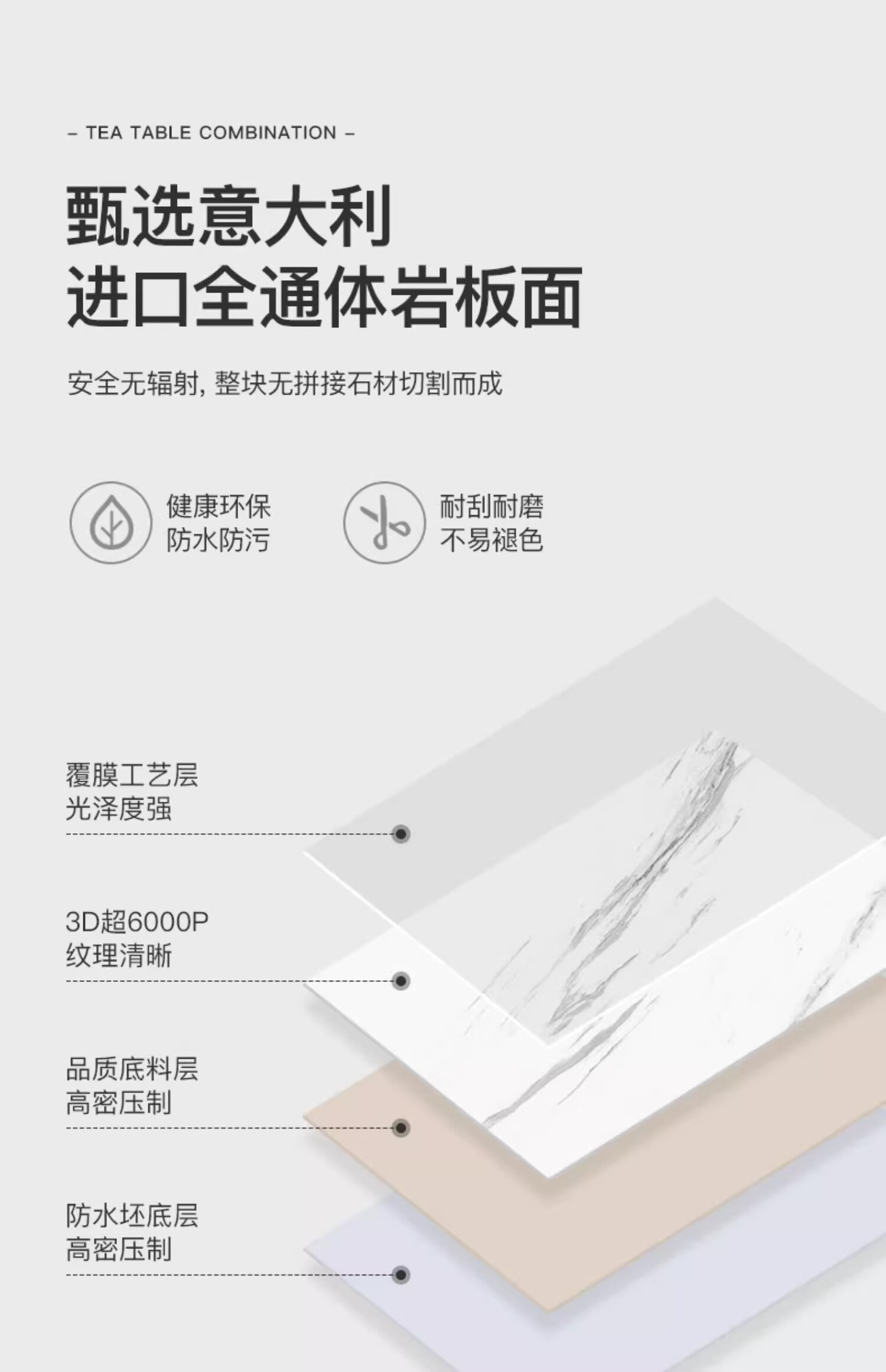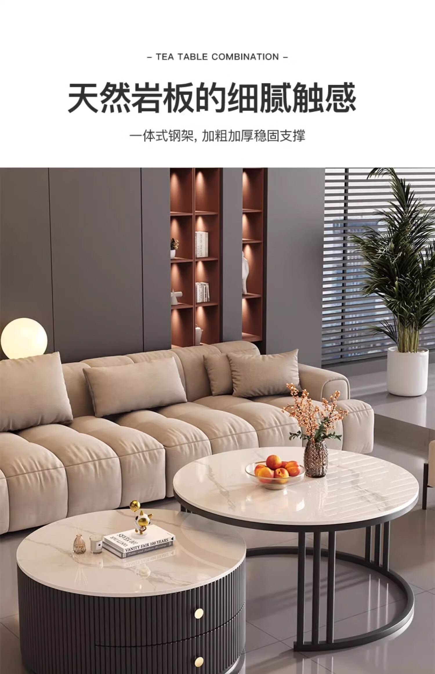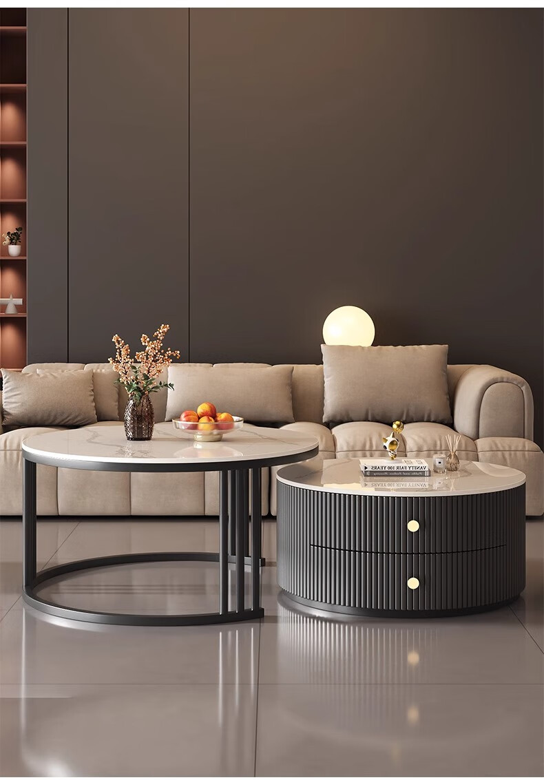 Small craftsman material slate coffee table living room home small apartment light luxury high-end 2025 new modern simple coffee table gray and white 80