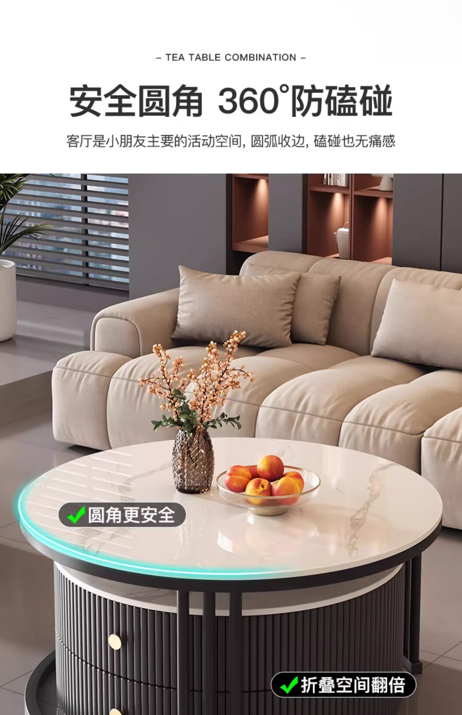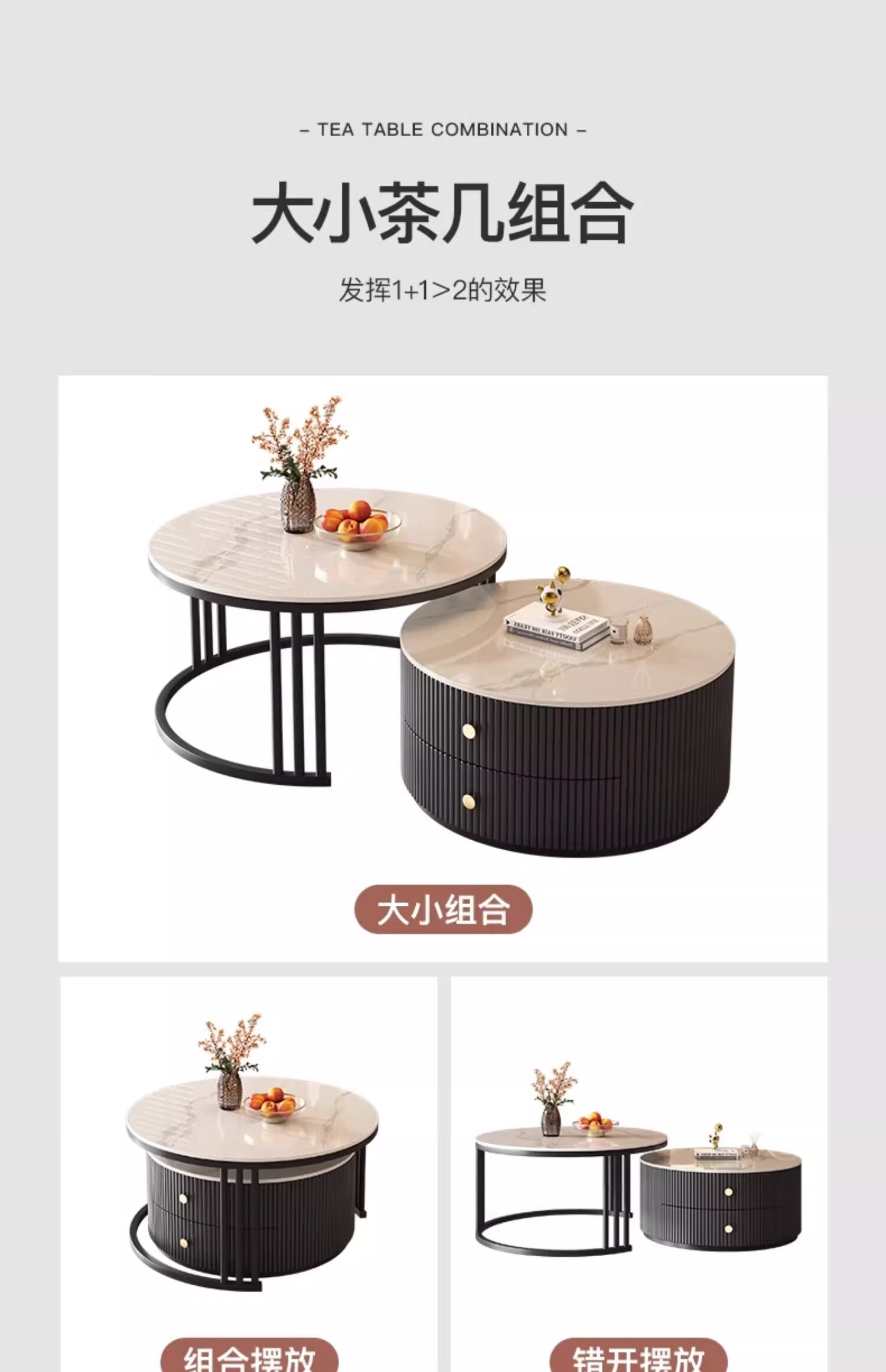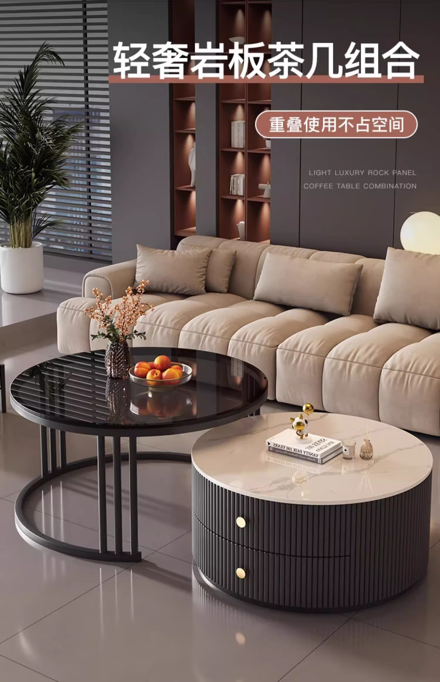 Small craftsman material slate coffee table living room home small apartment light luxury high-end 2025 new modern simple coffee table gray and white 80