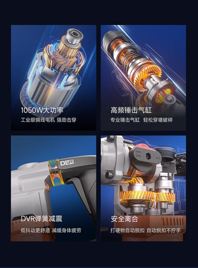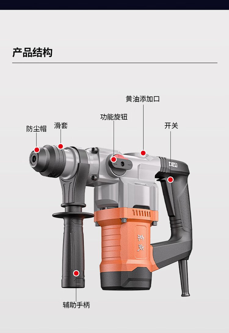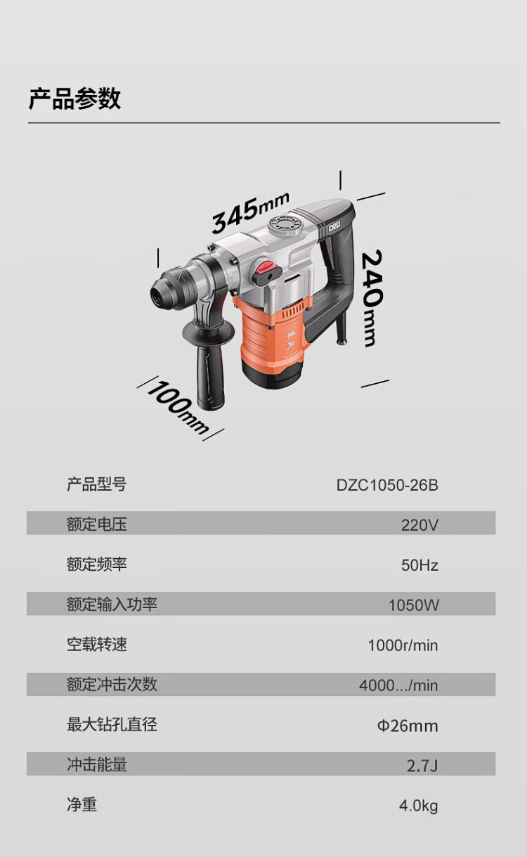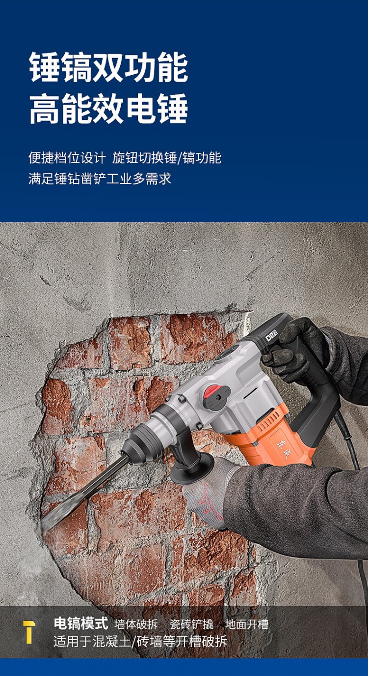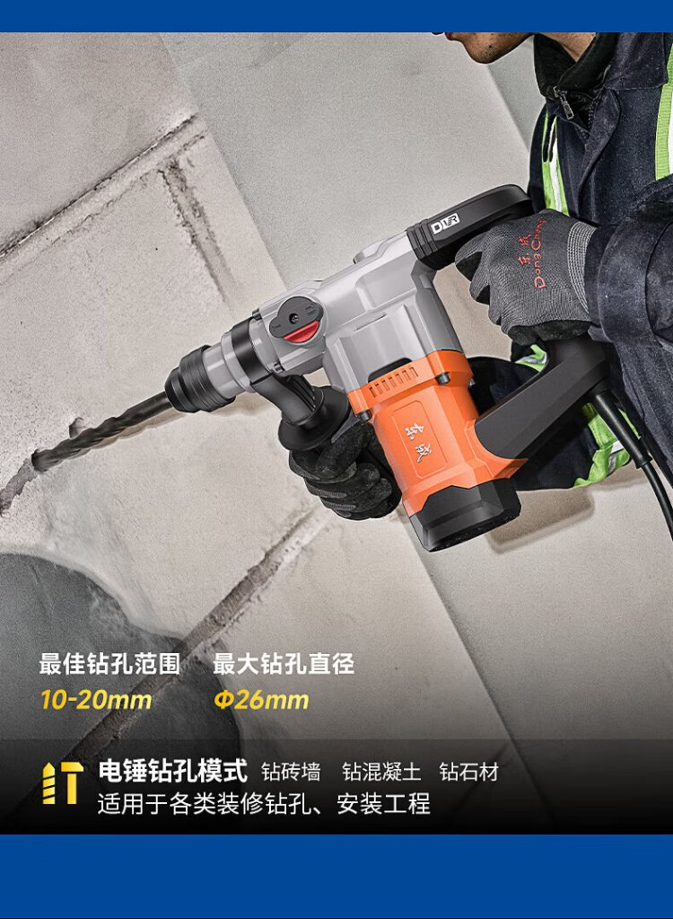 Dongcheng 1050W electric hammer and electric pick dual-purpose DZC1050-26BT impact drill concrete electric drill comes with a safety clutch