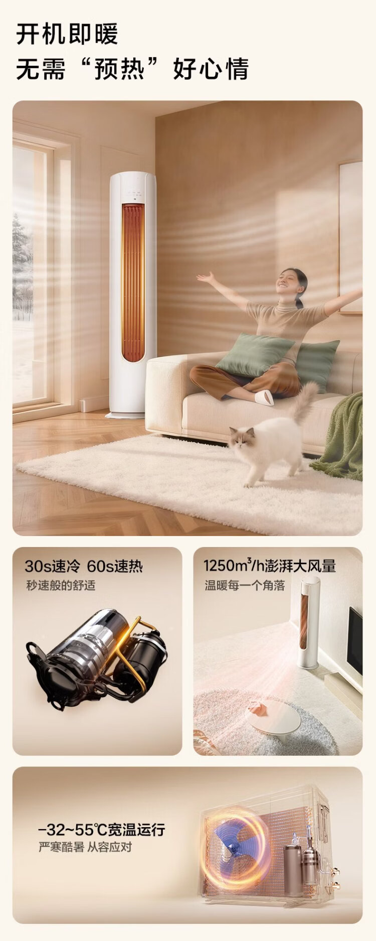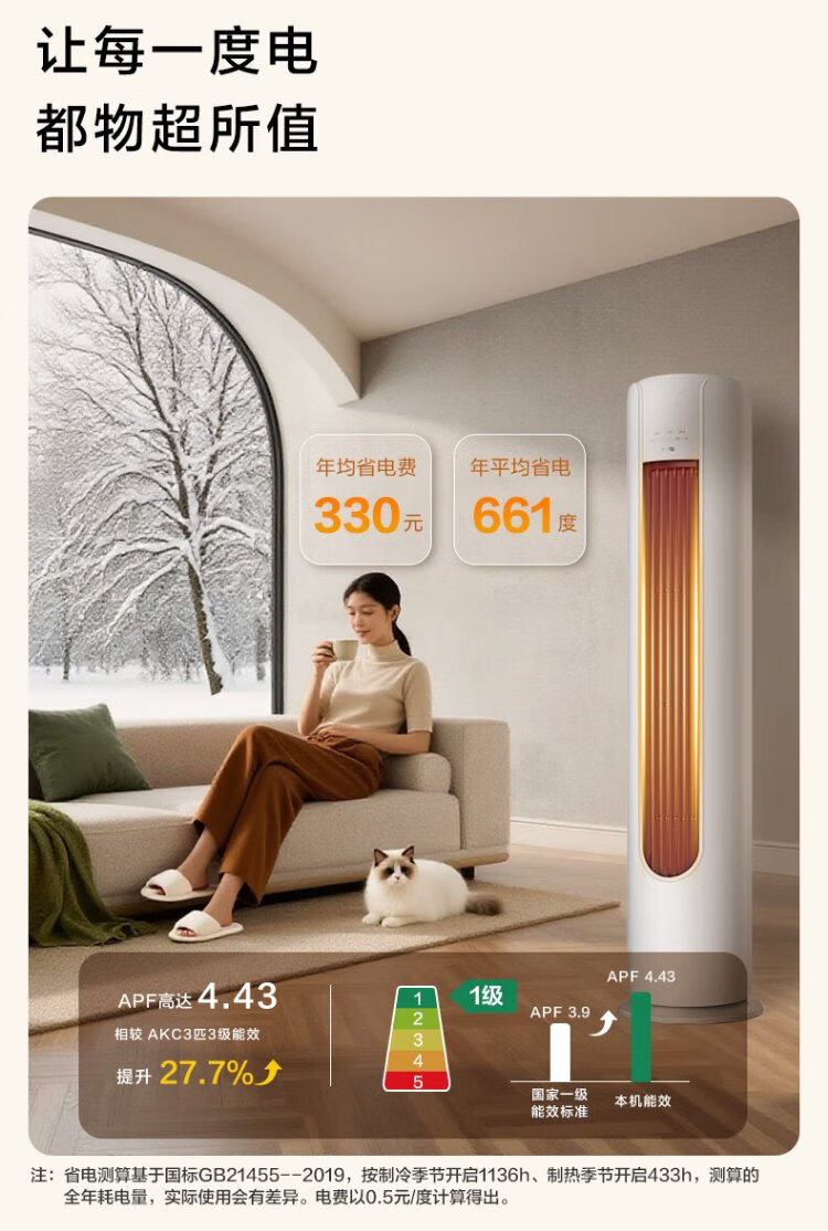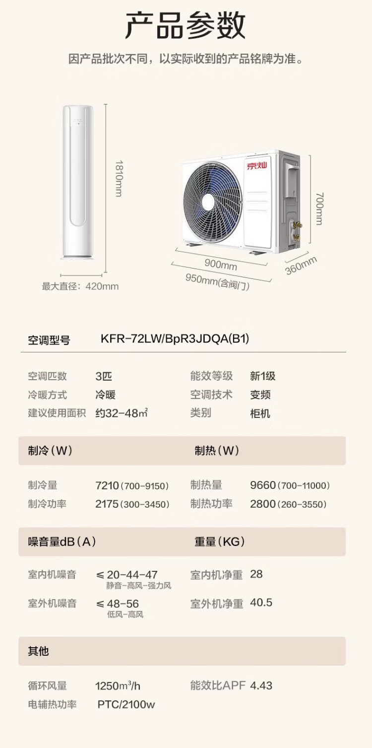 Jingcan Oaks Air Conditioner Large 3 HP New Level Energy Efficiency Inverter Copper Tube Air Conditioner Inverter Heating and Cooling Living Room Cabinet Machine KFR-72LW/BpR3JDQA(B1)