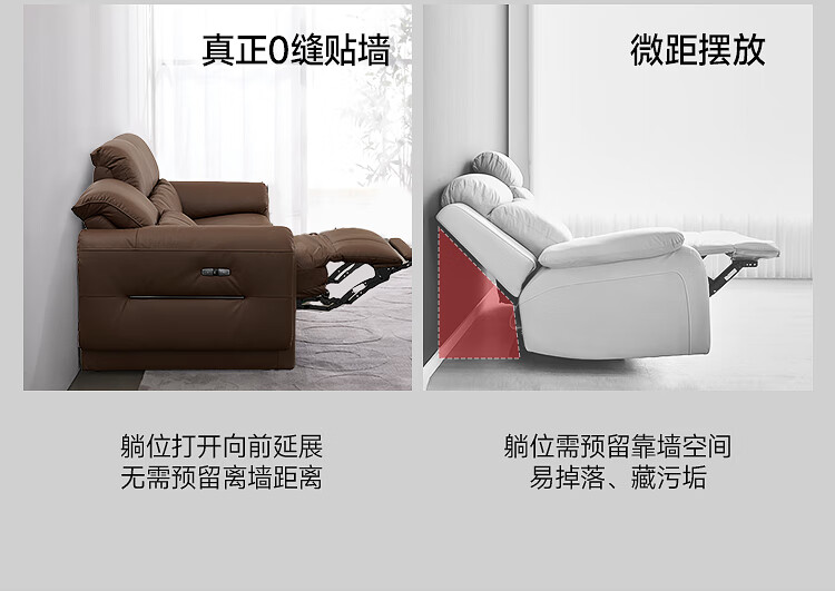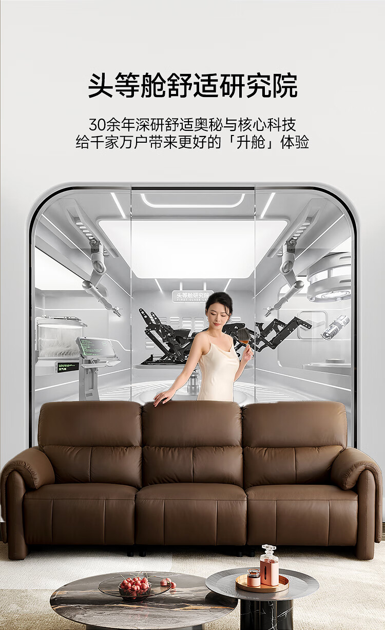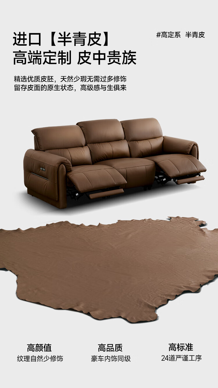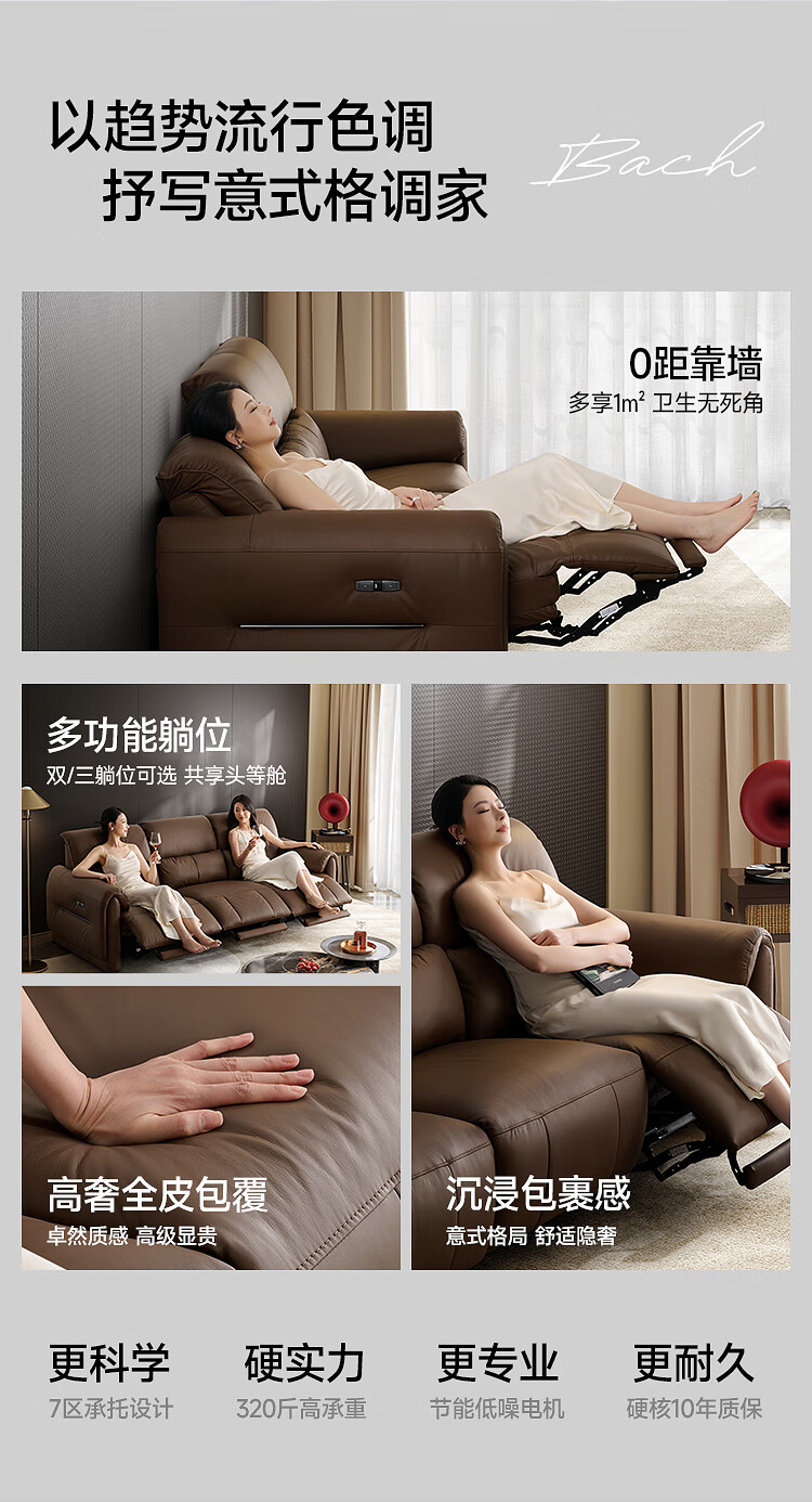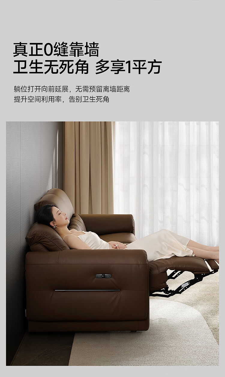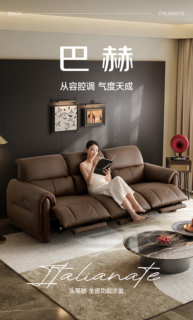 Chivas first class Bach 30735 semi-green leather zero wall electric sofa brown 2.76m modern simple living room sofa