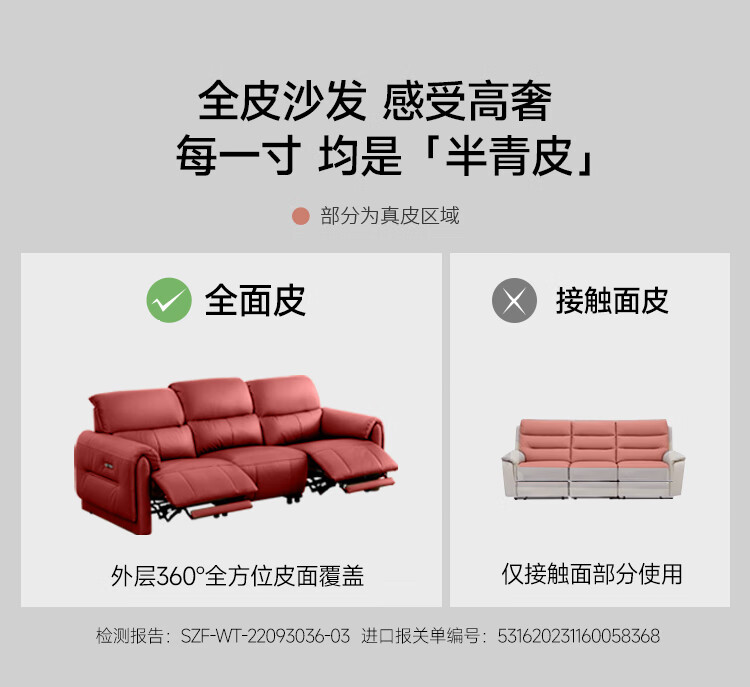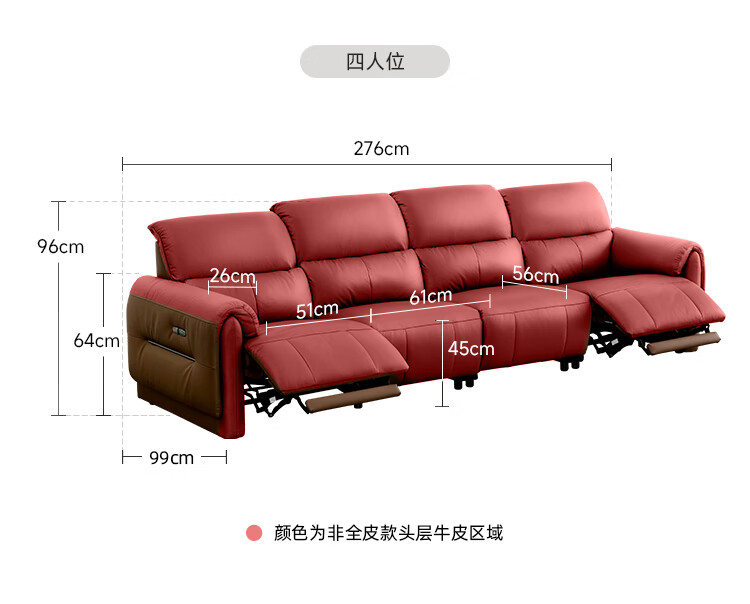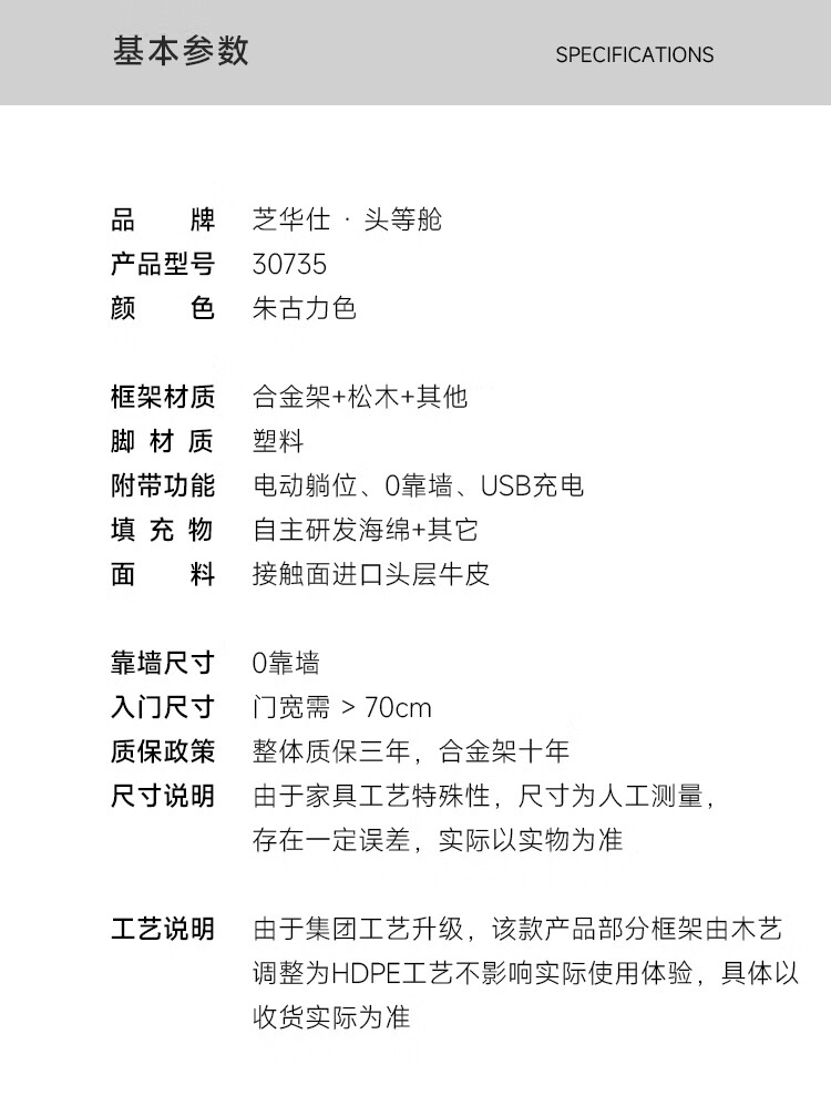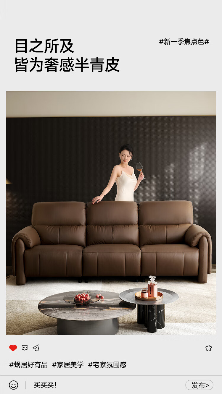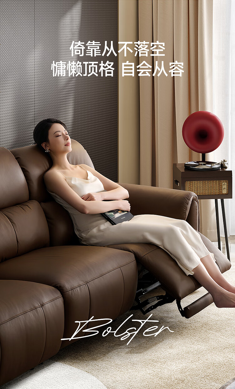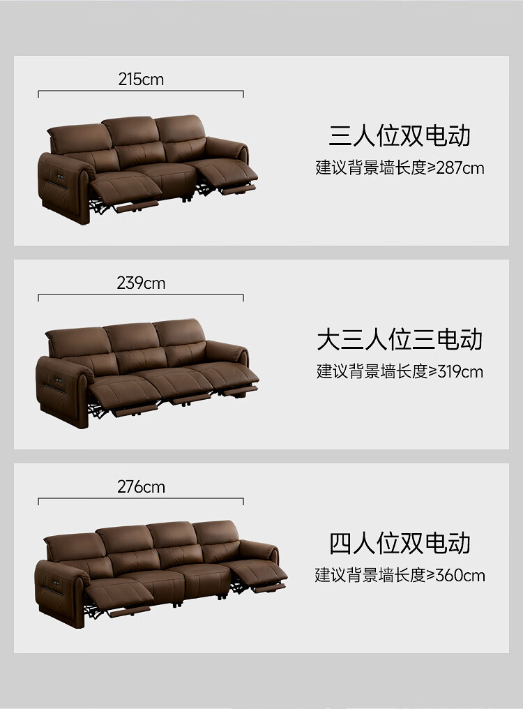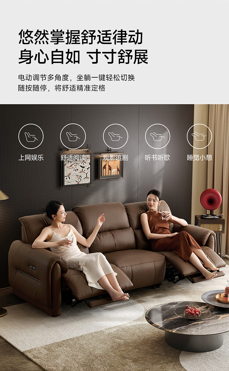 Chivas first class Bach 30735 semi-green leather zero wall electric sofa brown 2.76m modern simple living room sofa