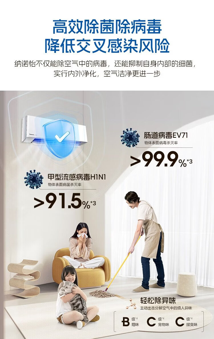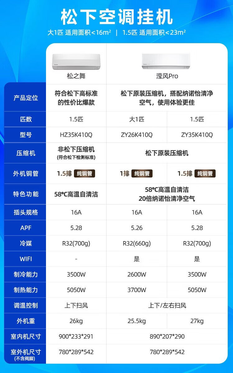 Panasonic air conditioner Yingfeng third generation 1.5 HP new first-level energy efficiency power-saving on-hook variable frequency heating and cooling original compressor copper tube sterilization healthy air CS-ZY35K410Q