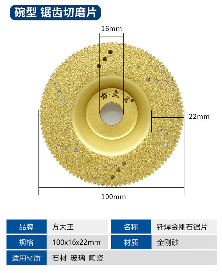 Fang Dawang brazed diamond cutting disc 100 discs 3 pieces efficient cutting stone ceramic tile glass angle grinder cutting machine