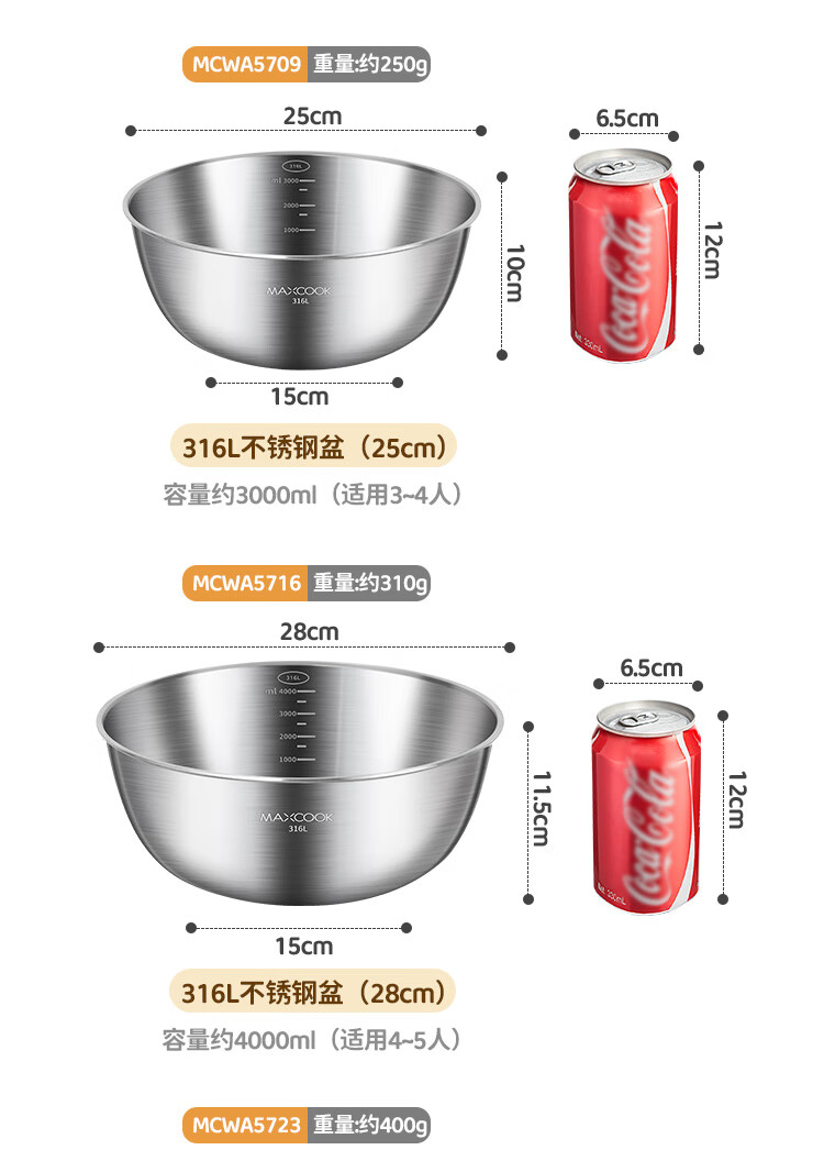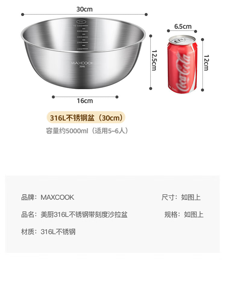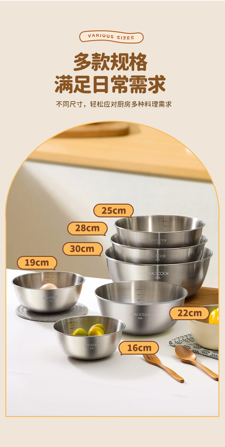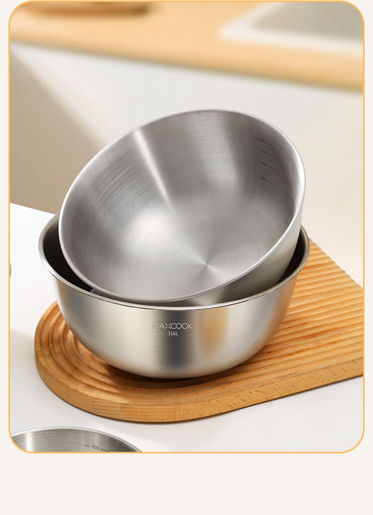 MAXCOOK 316L stainless steel basin, seasoning basin, thickened saucepan 22cm, vegetable basin, salad basin and basin MCWA5693