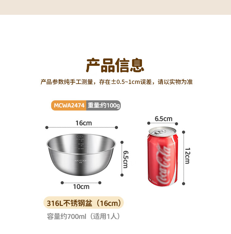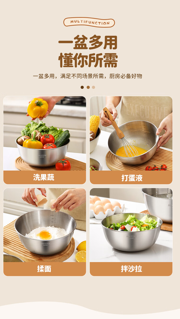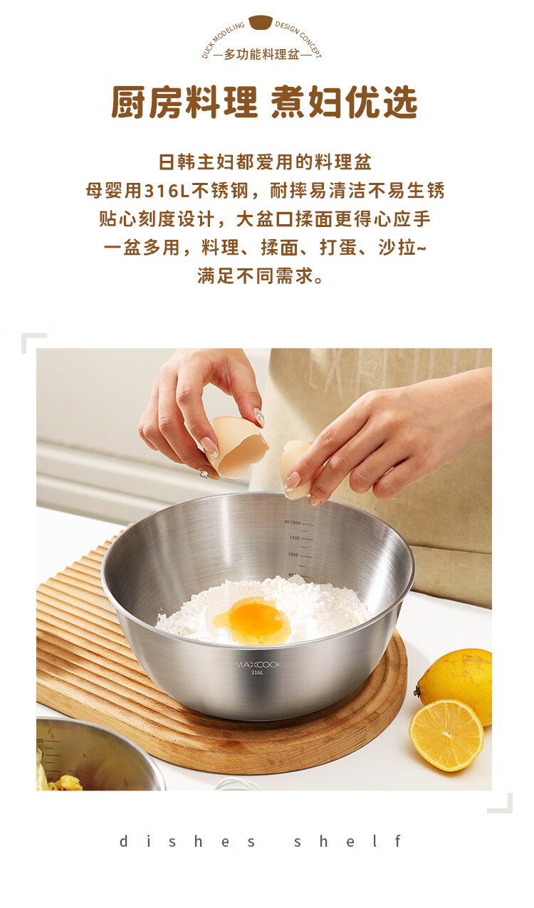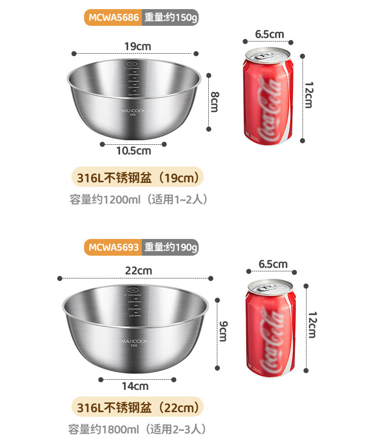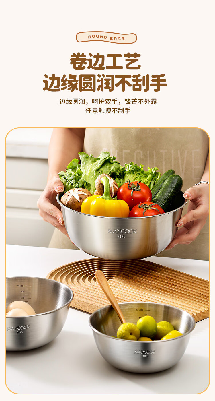 MAXCOOK 316L stainless steel basin, seasoning basin, thickened saucepan 22cm, vegetable basin, salad basin and basin MCWA5693