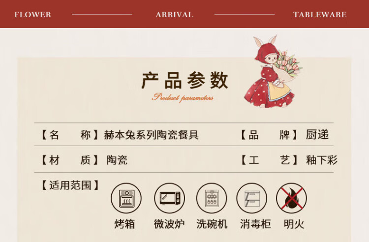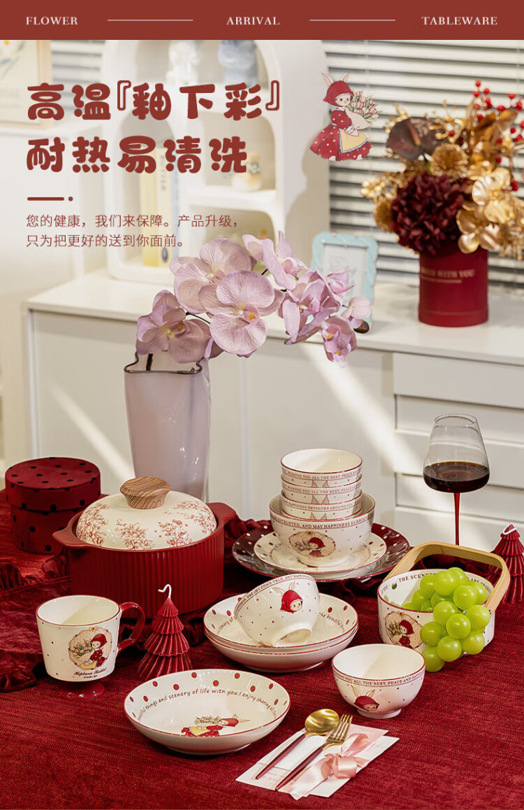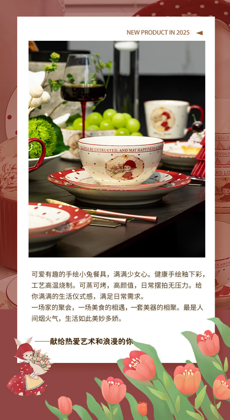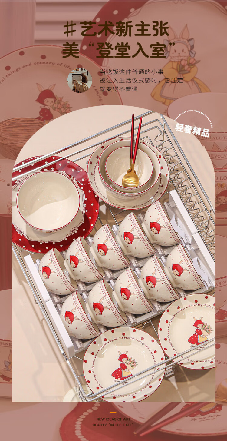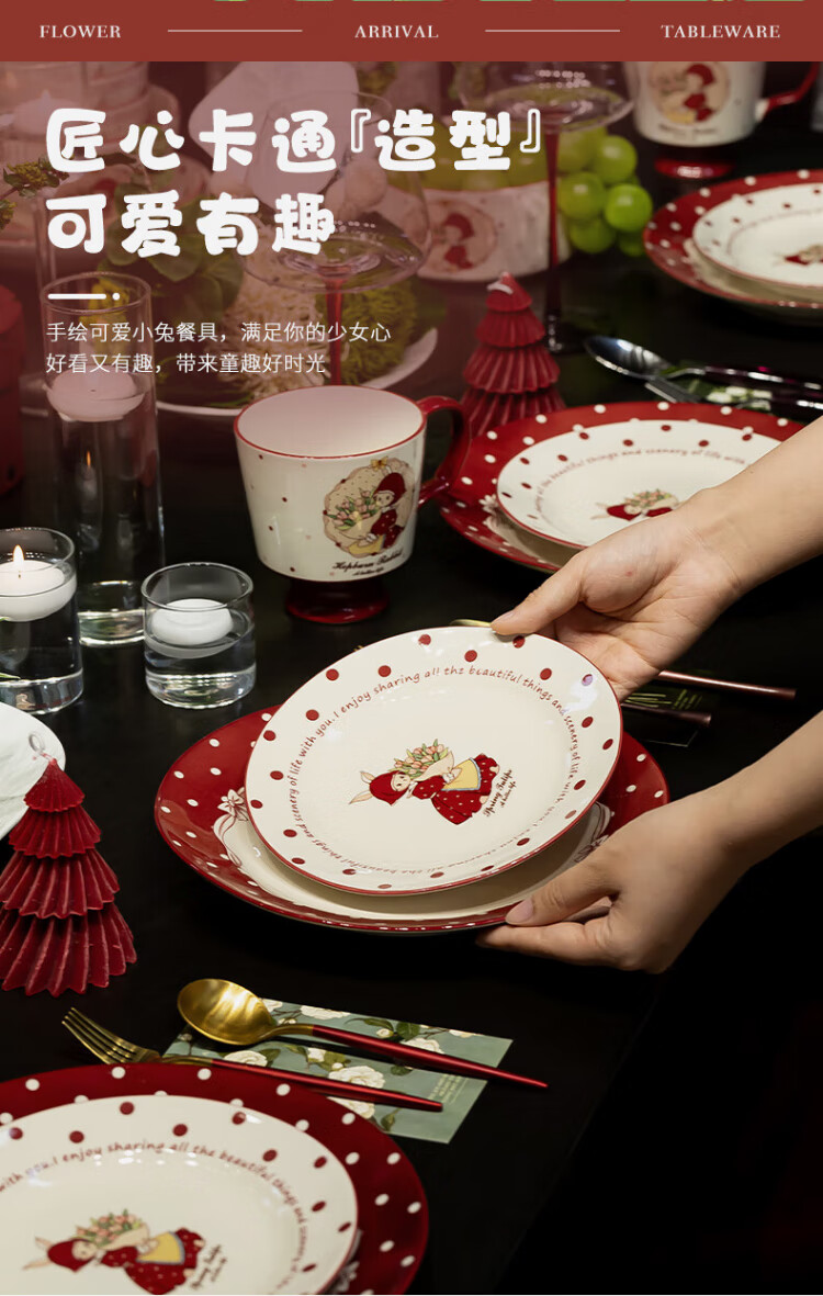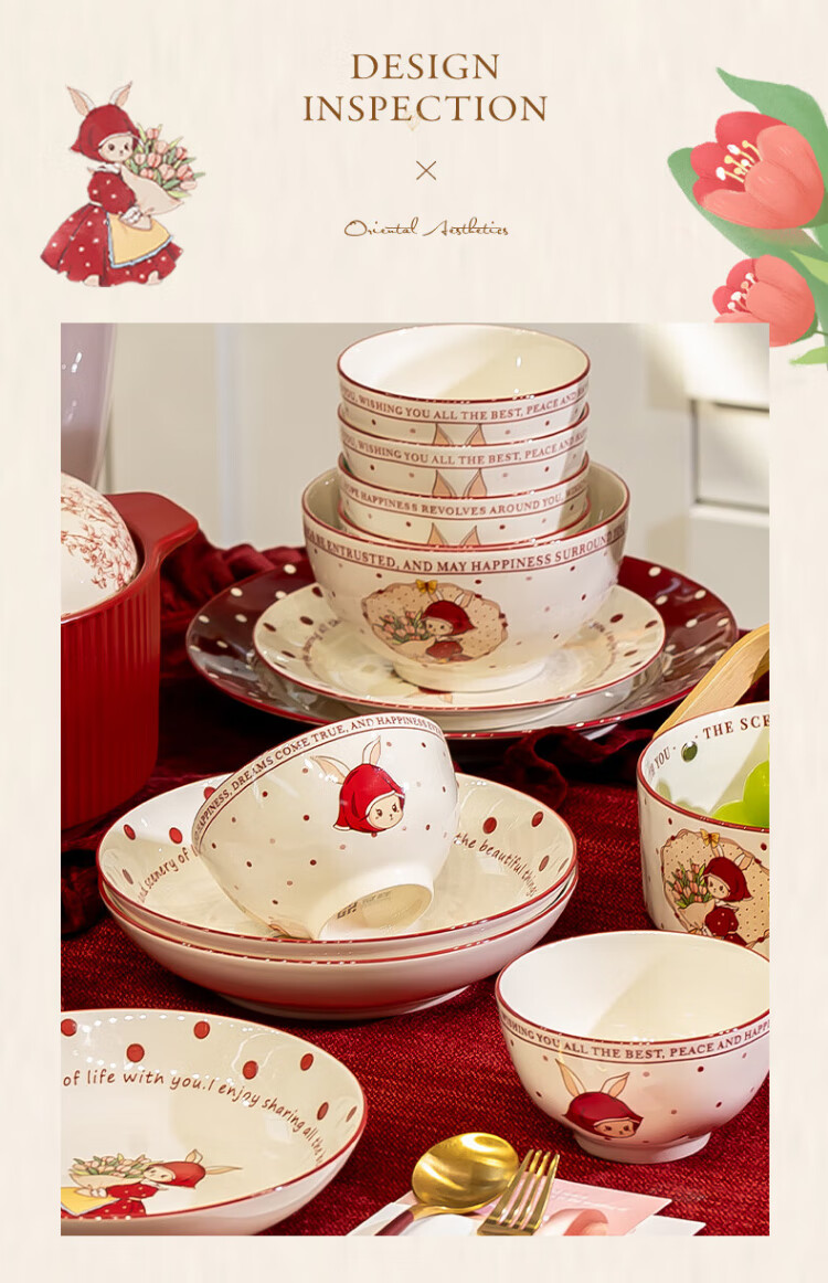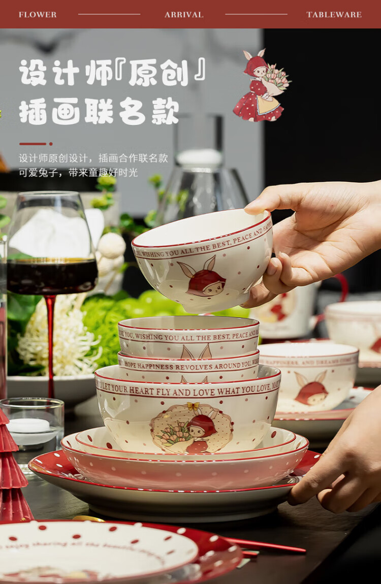 Kitchen tableware complete set of household cute eating dishes and bowls set wedding gift Hepburn rabbit 26 pieces gift box