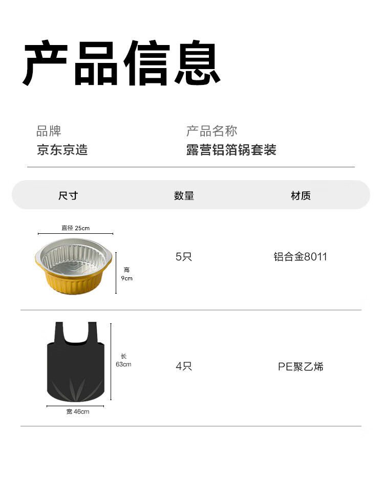 Made in Tokyo, tin foil pot, disposable hot pot, aluminum foil pot, camping barbecue 4000ml, 5 pieces without lid, 4 garbage bags included